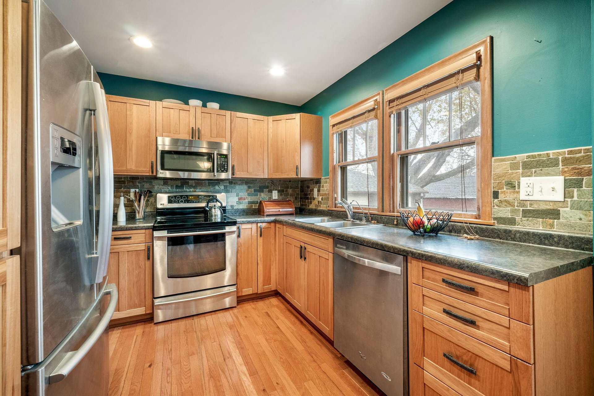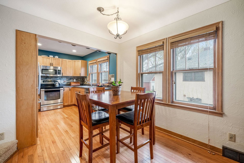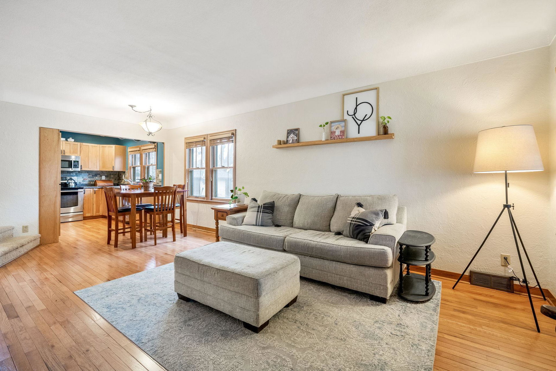 Adorable 1.5 Story Bungalow in Como! You will love the open floor plan with stunning oak hardwood floors, natural woodwork, dining room and beautiful kitchen with shaker cabinets and stainless steel appliances. This efficient floorpan features two bedrooms and bathroom with quality finishes on main level with upper level 3rd bedroom offering ample space. Unfinished lower level den lives very well! – Walk out of the back door to the yard with concrete patio, shed and two car garage. Only a 10 min walk to lake Como! Come check this one out today!