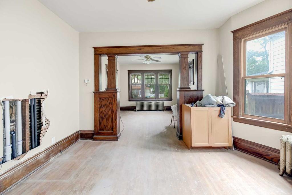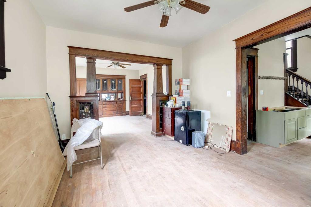 Vacant Home needs some TLC, CLASSIC, 1 1/2 STORY, beautiful original woodwork throughout, built-in hutch, butler pantry, mudroom, new kitchen cabinets. Lots of updates: New windows, plumbing, mechanical, concrete walk & steps. Footings for back deck in place, nice sized yard. Just needs someone to finish it off! Buyer responsible for Category 2 prior to closing. Parking Pad newer off alley ready for parking structure.