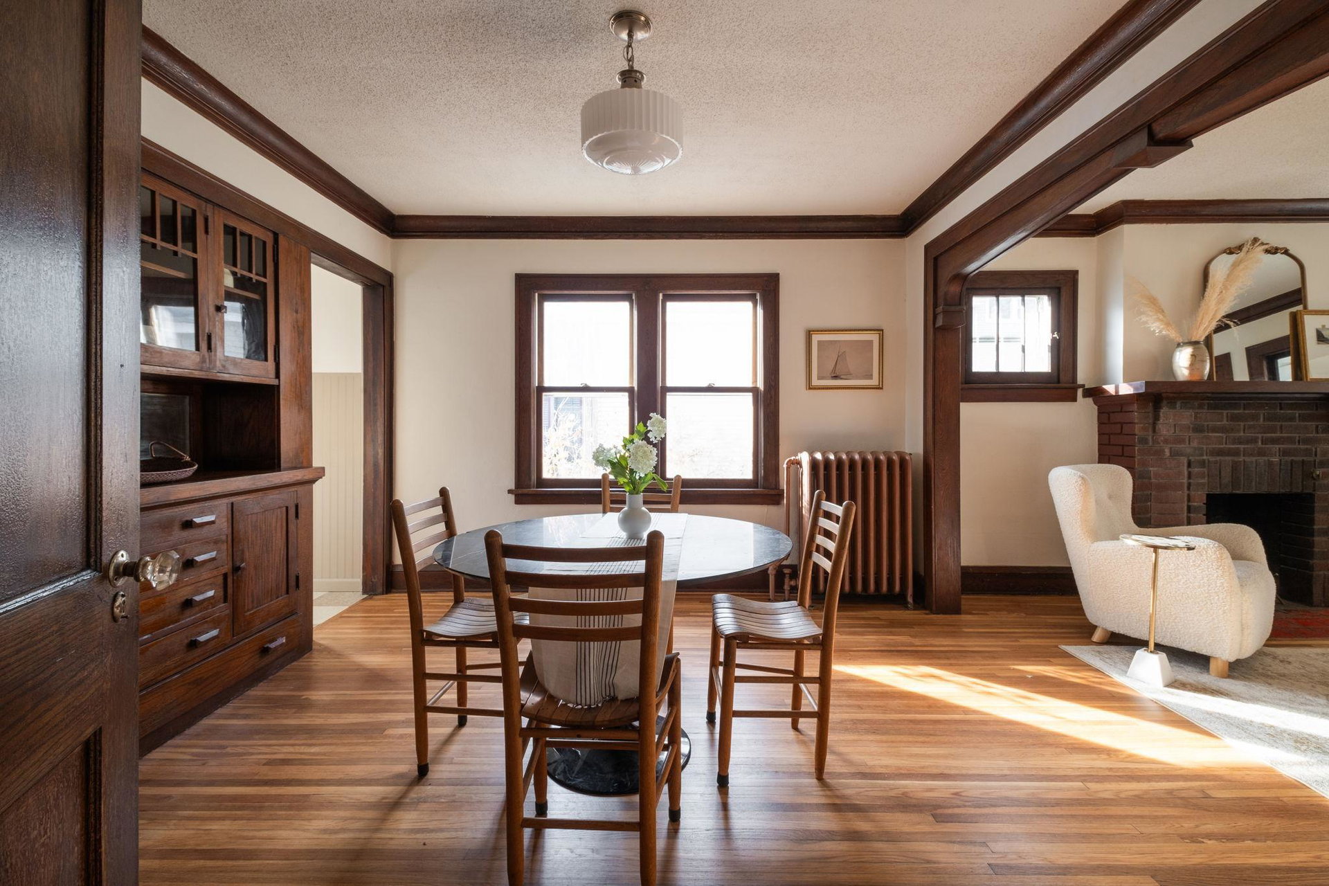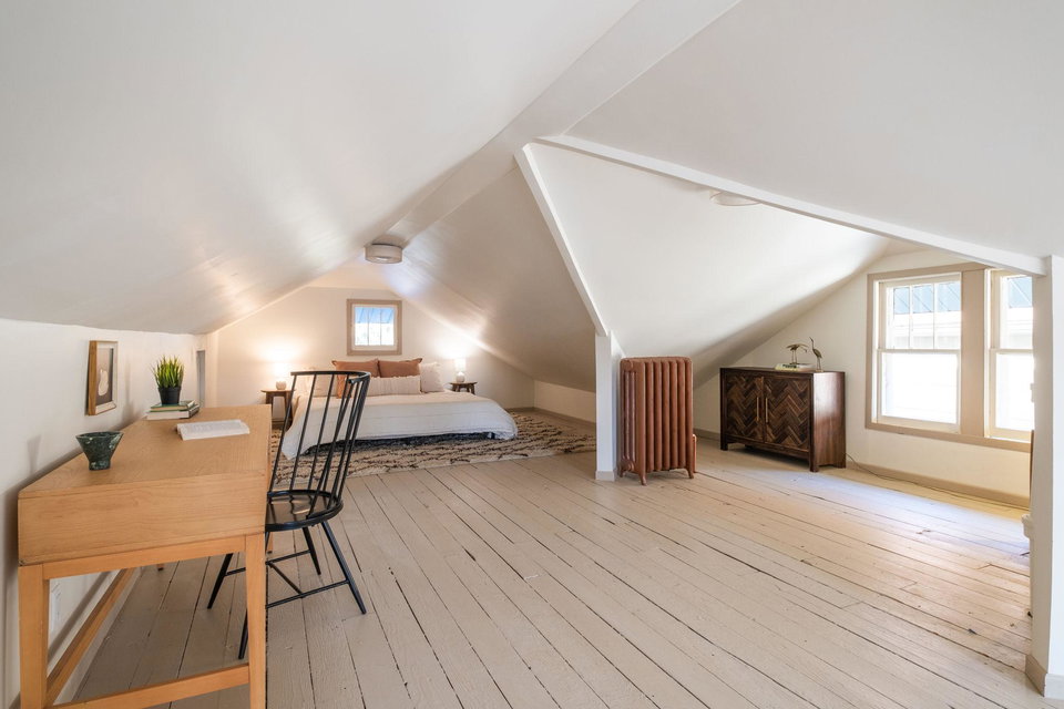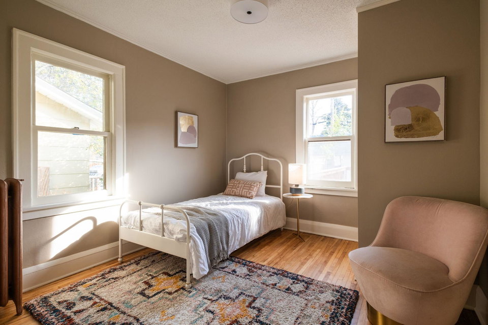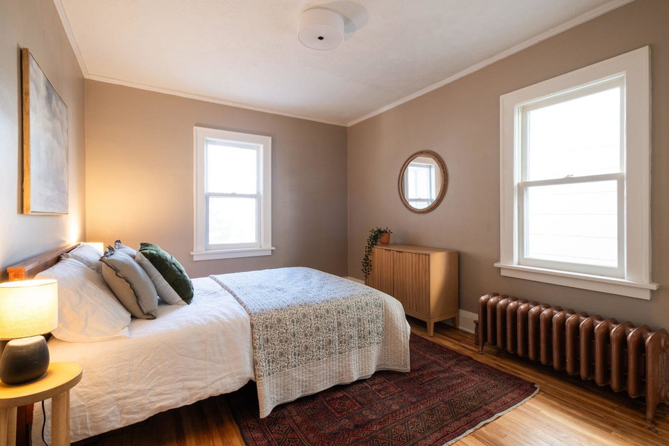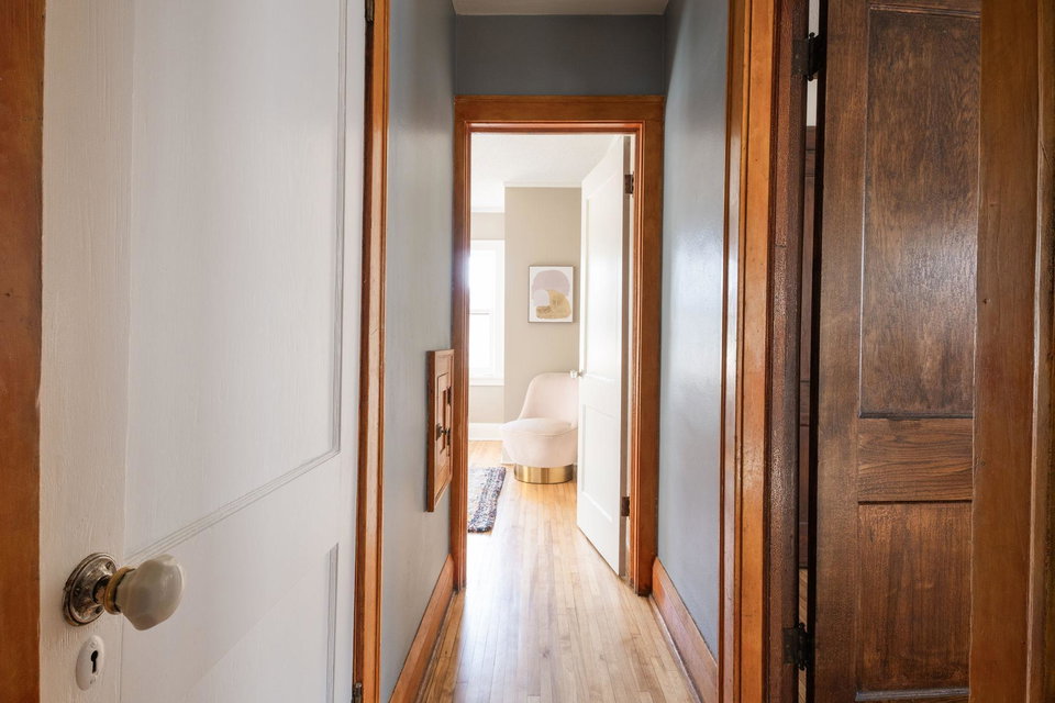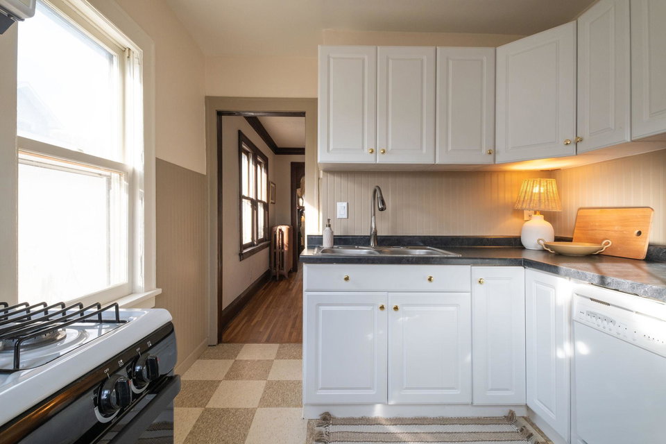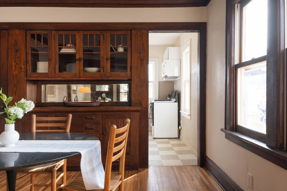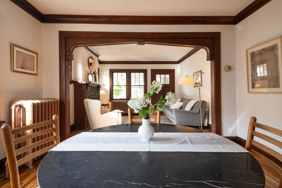 This beautifully maintained 1.5-story Craftsman home features original character elements from the 1920’s such as hardwood floors, a cozy brick fireplace anchoring the living room, and gorgeous woodwork including a built-in buffet in the formal dining room. With three bedrooms and a non-conforming bonus bedroom (yes, that’s four bedrooms!!), this home offers plentiful sleeping arrangements or dynamic spaces for office/den/play. The kitchen includes ample cabinet space, a dishwasher, a thoughtfully tucked out-of-your way fridge, and windows that shine an abundance of light. The main floor bath includes the original deep porcelain tub. The upper level half story is a comfortable primary bedroom with reading nook or office space. The lower level is partially finished with a family room and a bedroom. Fresh paint throughout invites warmth into each space. Enjoy lounging or entertaining on the large deck in the private backyard. New roof and exterior painted this year!!!