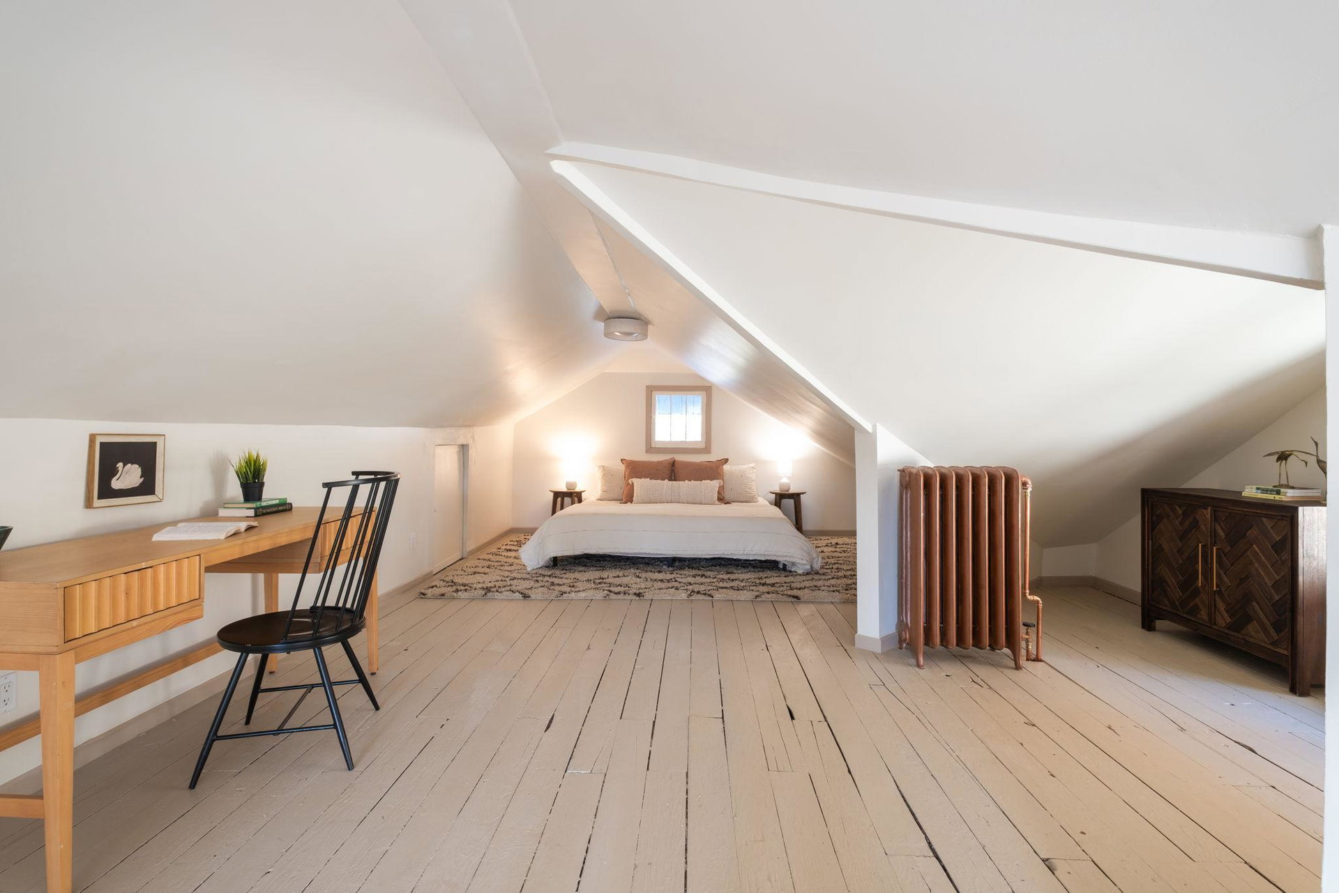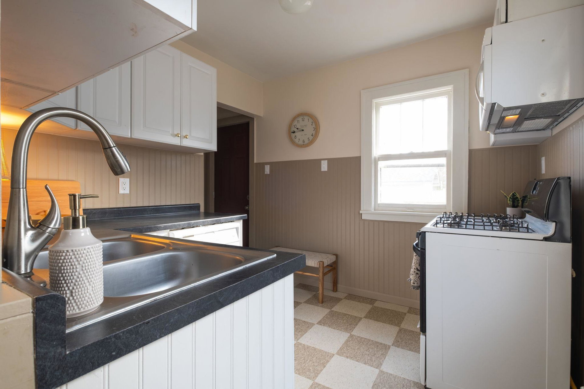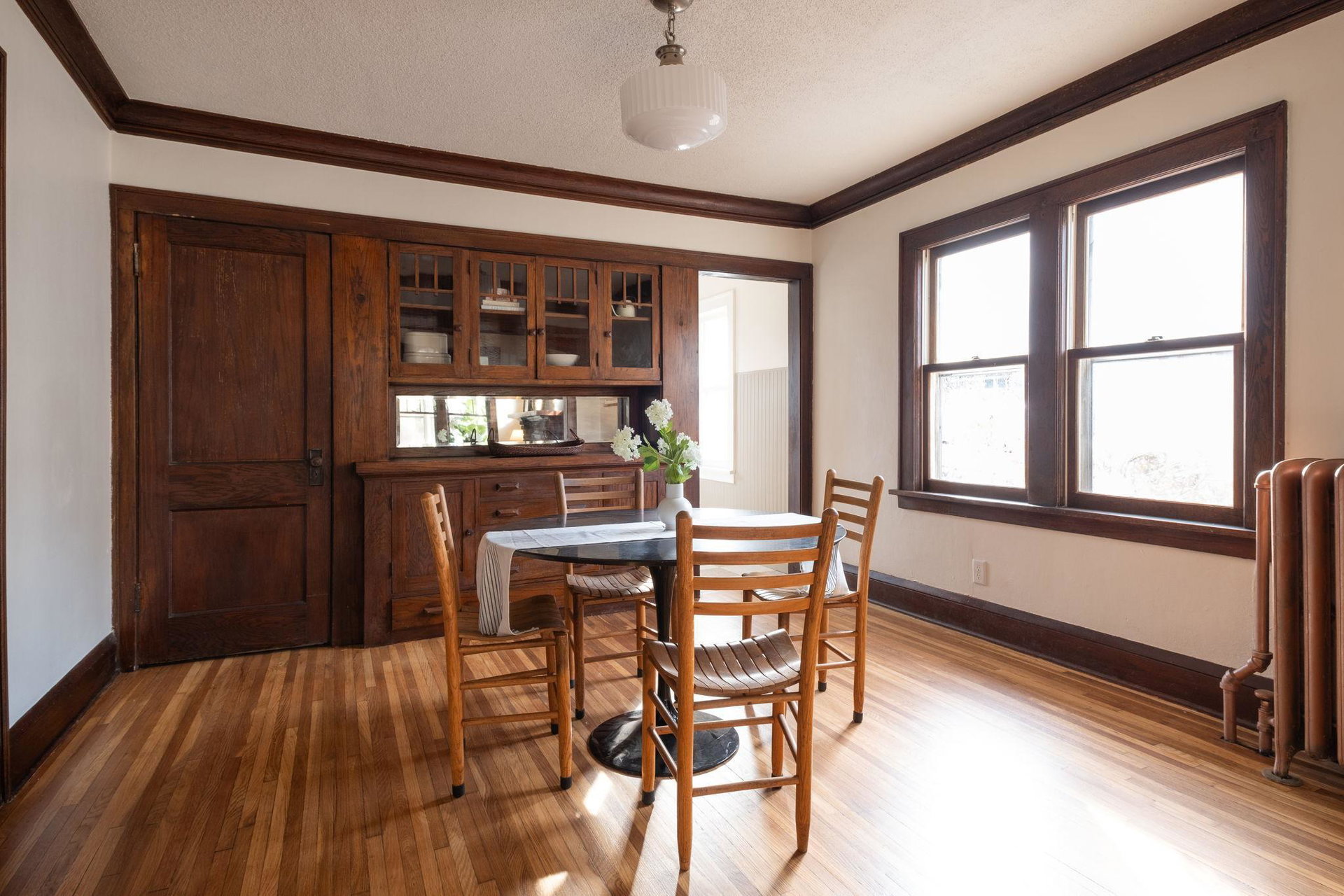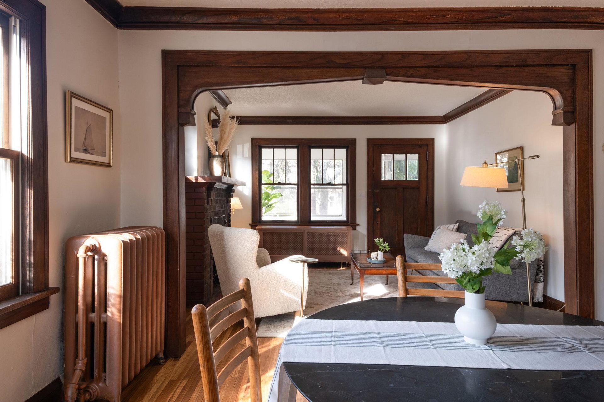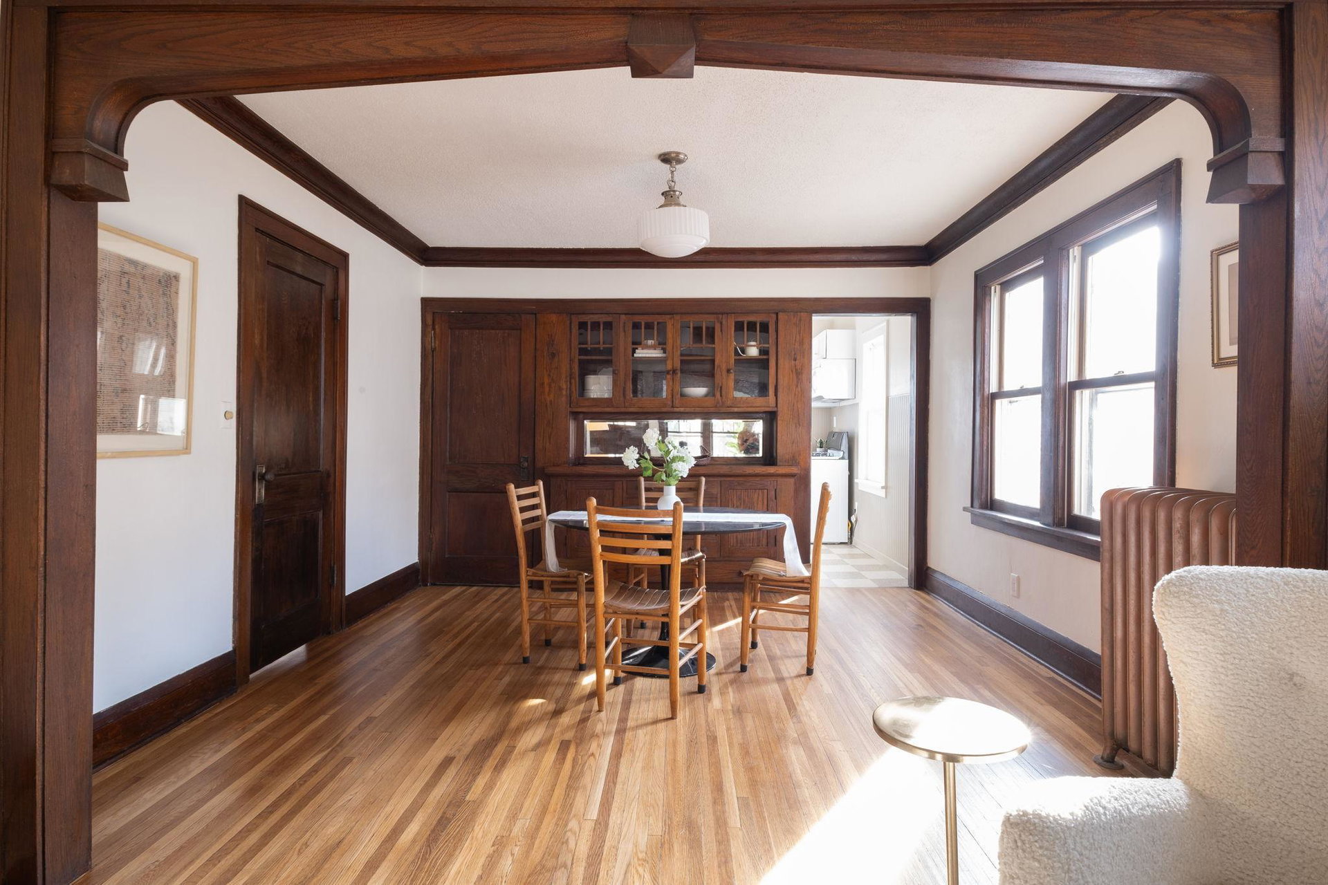 This beautifully maintained 1.5-story Craftsman home features original character elements from the 1920’s such as hardwood floors, a cozy brick fireplace anchoring the living room, and gorgeous woodwork including a built-in buffet in the formal dining room. With three bedrooms and a non-conforming bonus bedroom (yes, that’s four bedrooms!!), this home offers plentiful sleeping arrangements or dynamic spaces for office/den/play. The kitchen includes ample cabinet space, a dishwasher, a thoughtfully tucked out-of-your way fridge, and windows that shine an abundance of light. The main floor bath includes the original deep porcelain tub. The upper level half story is a comfortable primary bedroom with reading nook or office space. The lower level is partially finished with a family room and a bedroom. Fresh paint throughout invites warmth into each space. Enjoy lounging or entertaining on the large deck in the private backyard. New roof and exterior painted this year!!!
