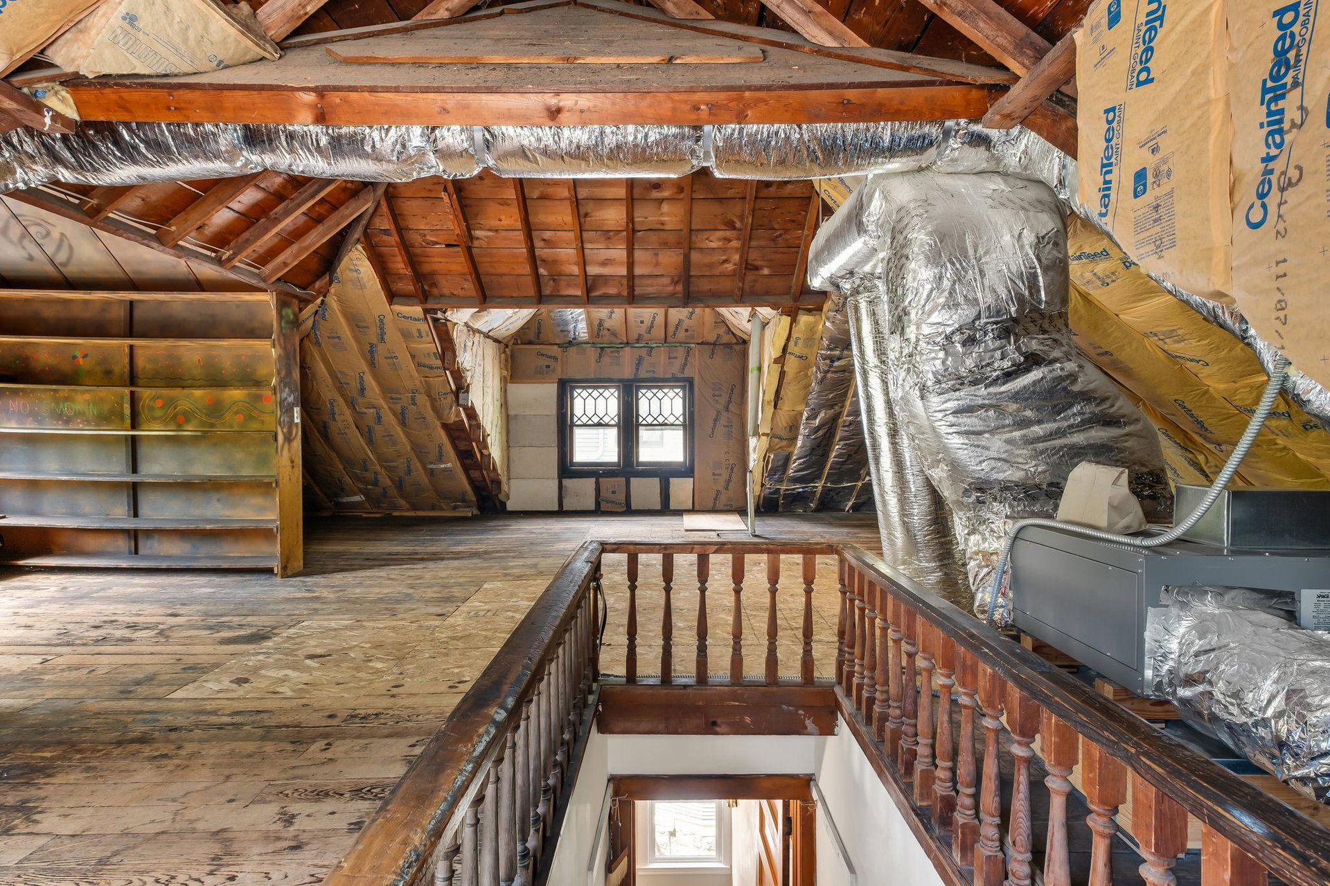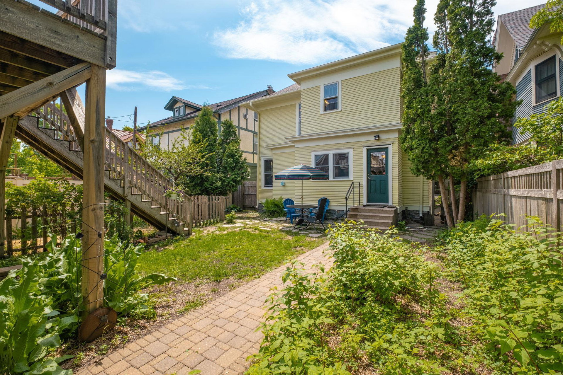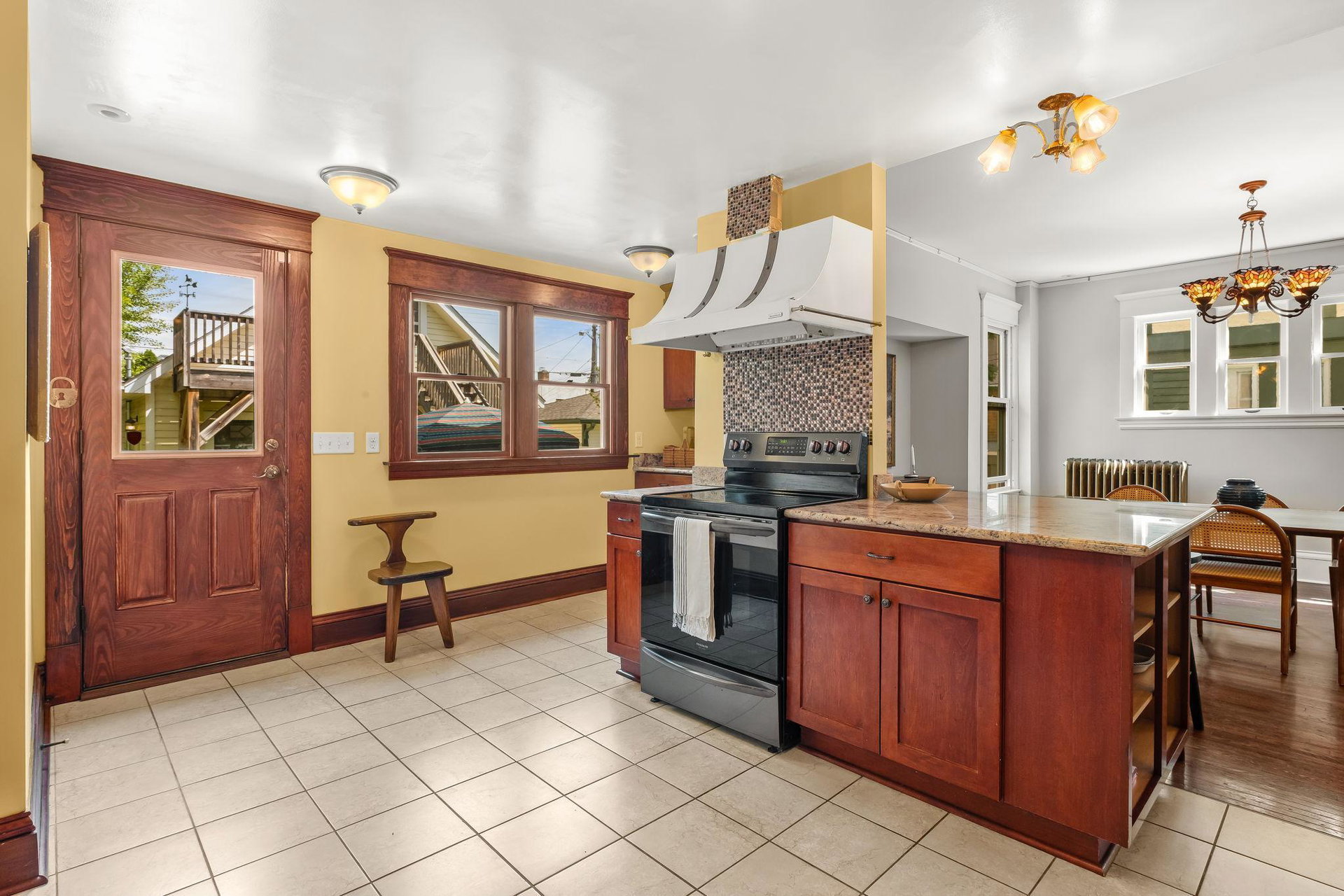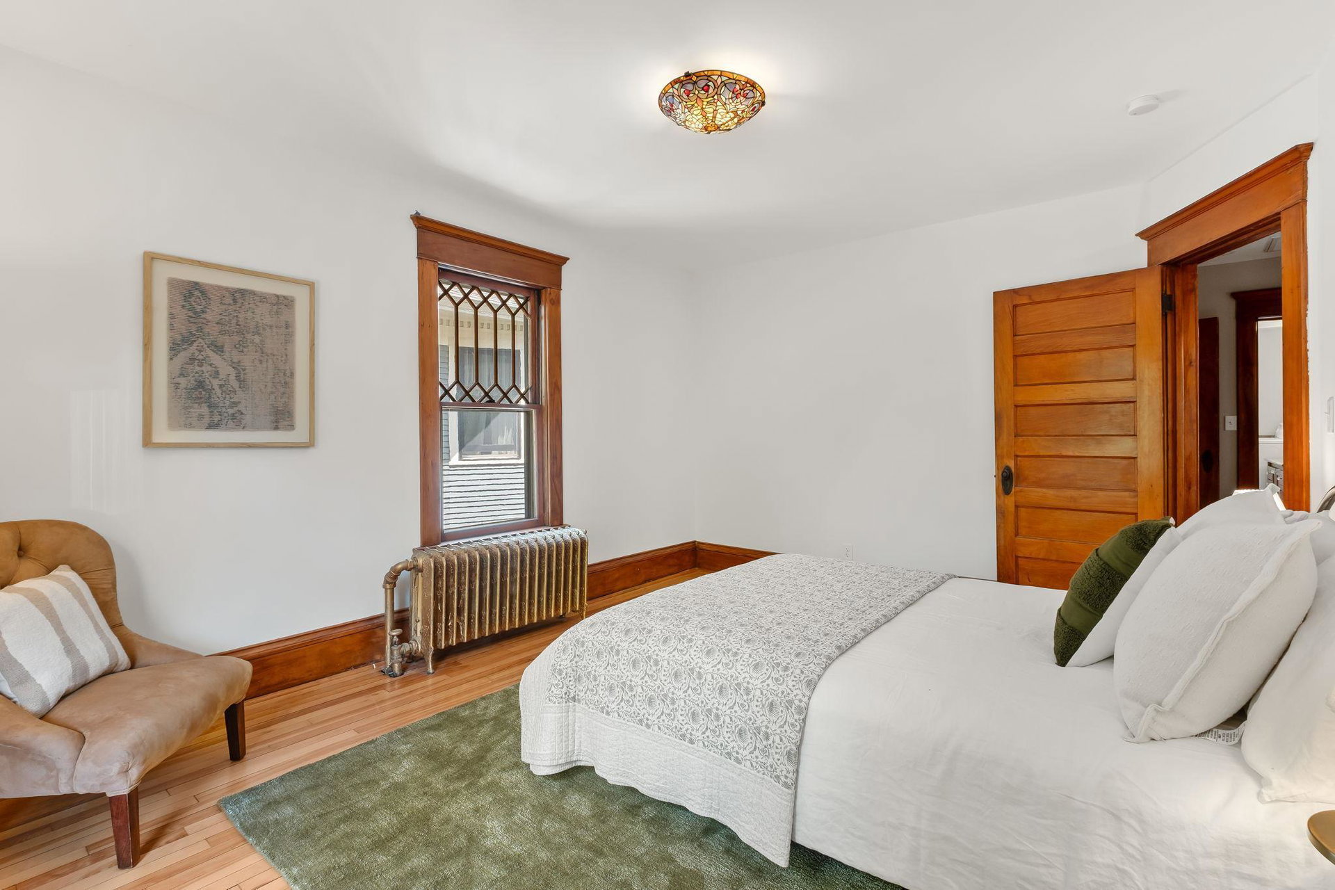 As you approach the property, you’ll be greeted by an inviting front porch, perfect for relaxing and enjoying the neighborhood. Stepping inside, an entryway leads you into the living room. This generous size room is anchored by a handsome fireplace. From the living room, you’ll find the dining room filled with natural light, ideal for both everyday meals and entertaining. Situated at the rear of the home, the thoughtfully remodeled kitchen boasts a layout that can handle multiple cooks in the kitchen. The home’s four bedrooms are all conveniently situated on the upper level. The third floor is unfinished and awaits your vision. The home also offers the convenience of three bathrooms. For parking and additional storage, there is a two-stall detached garage with extra space located above it.