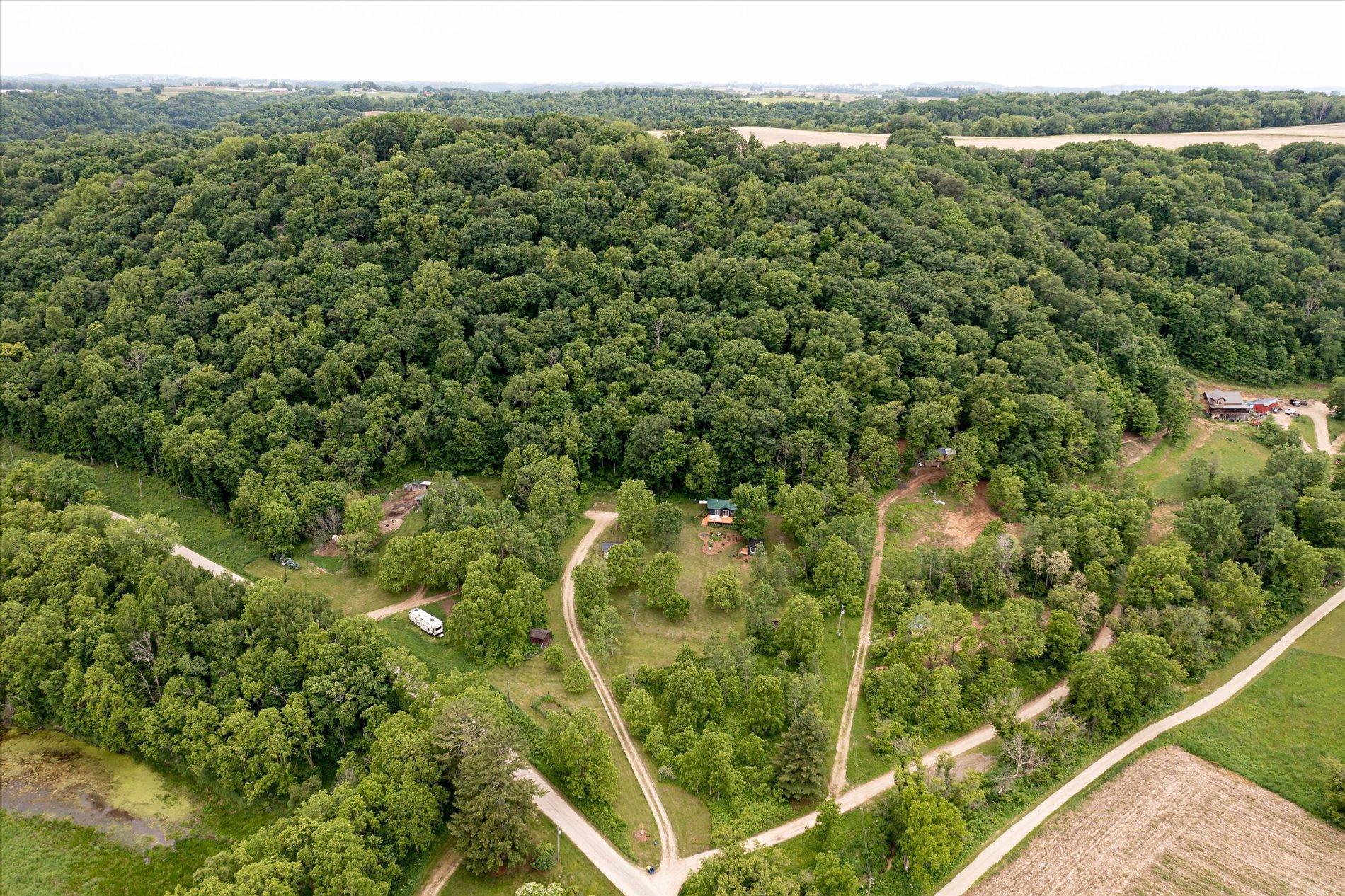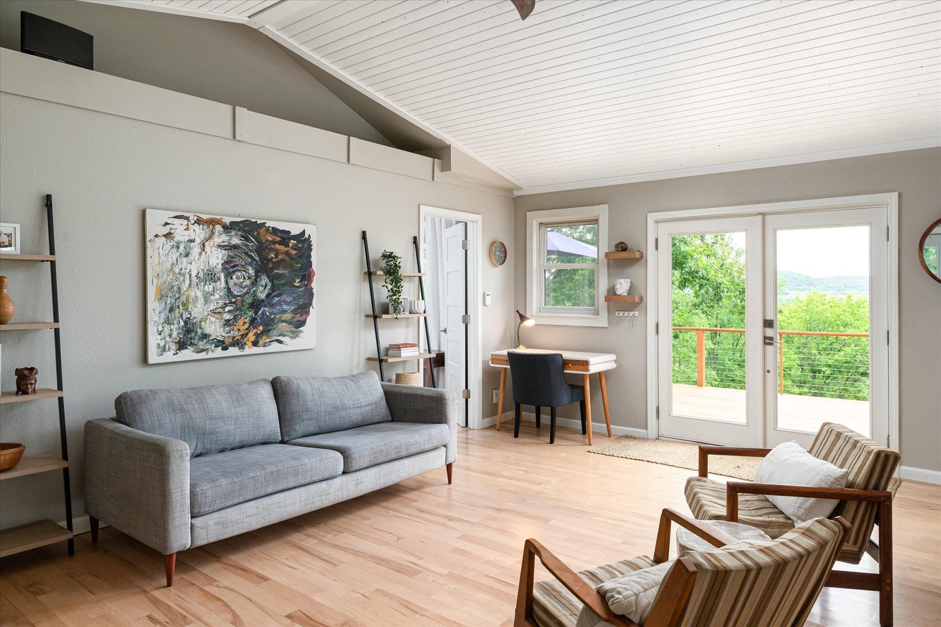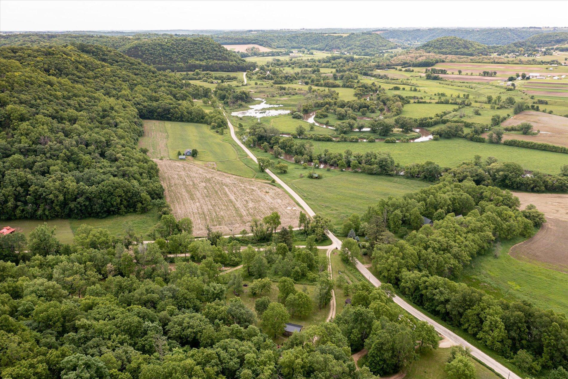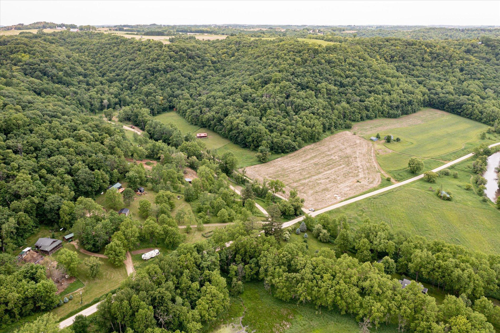 The curious and stunning driftless region will capture you in awe, taking your breath away with its vivid yet calming landscapes. Around the bend on River Rd, overlooking the Kickapoo River, you will find this dreamy escape of 7 acres. With a panoramic view off the deck – the main home includes two bedrooms, full bathroom, gas fireplace, eat-in kitchen, and a washer/dryer. The tiny home is your bonus bedroom space with a loft and room for another bed and/or pull out sofa – perhaps your writers retreat or musicians oasis! One car garage door opens into spacious garage with plenty of storage for all of your year round toys (480 square feet). Access to 20 miles of recreational trails (groomed in the winter for cross country skiing). A land covenant protects shared access to an additional ~4 acres of Kickapoo riverfront. 20 min from Viroqua, 1 hr from LaCrosse, under 4 hrs from Minneapolis. Cast a line, this is YOUR spot! OPEN HOUSES June 17 4-6PM and June 18th 10-12PM
