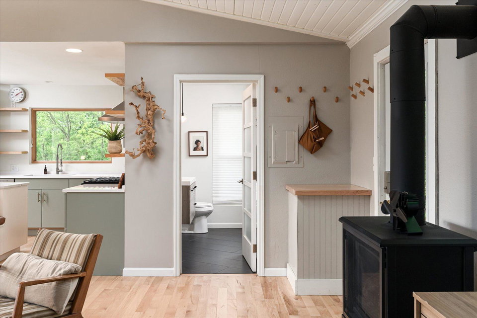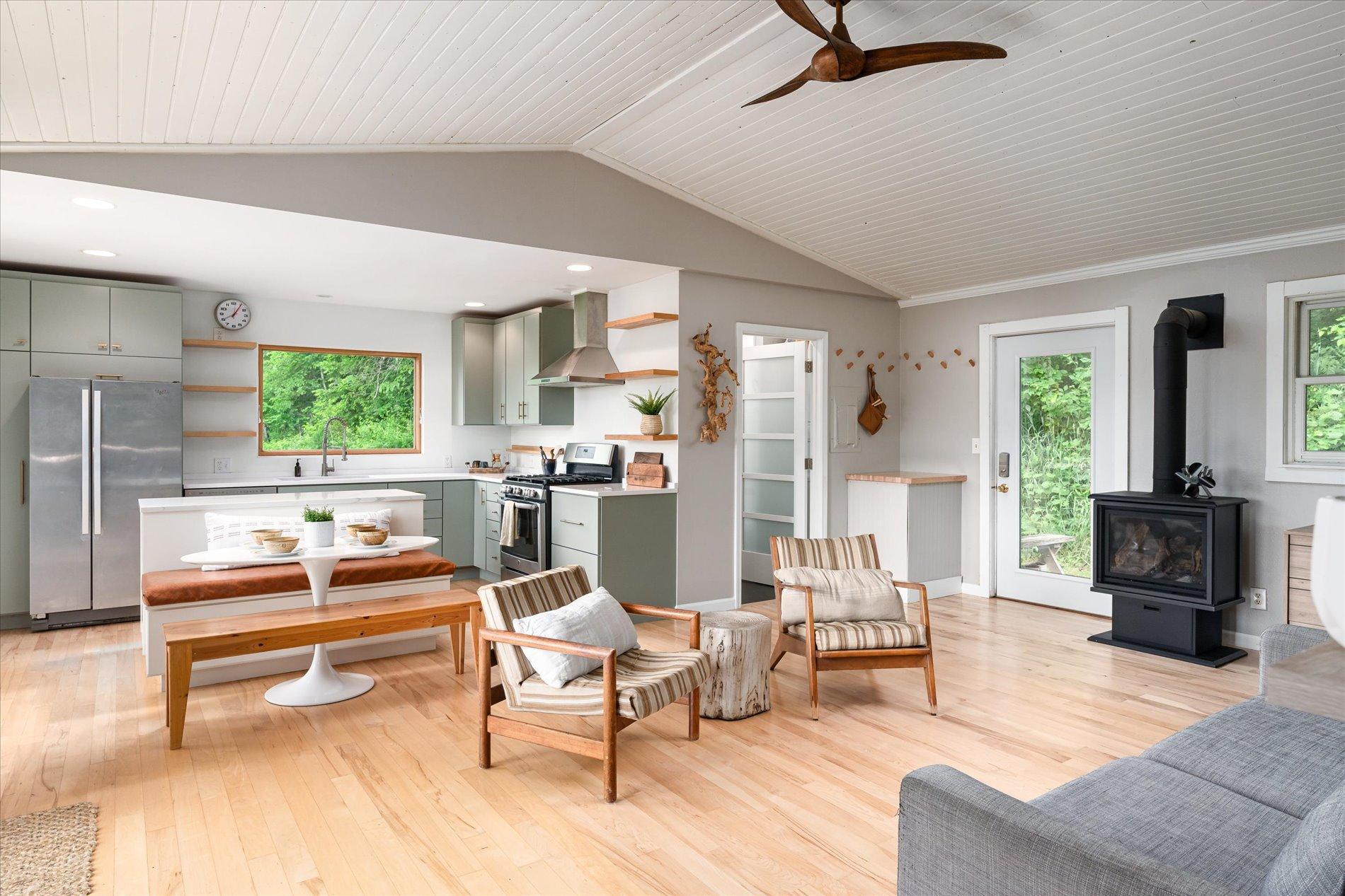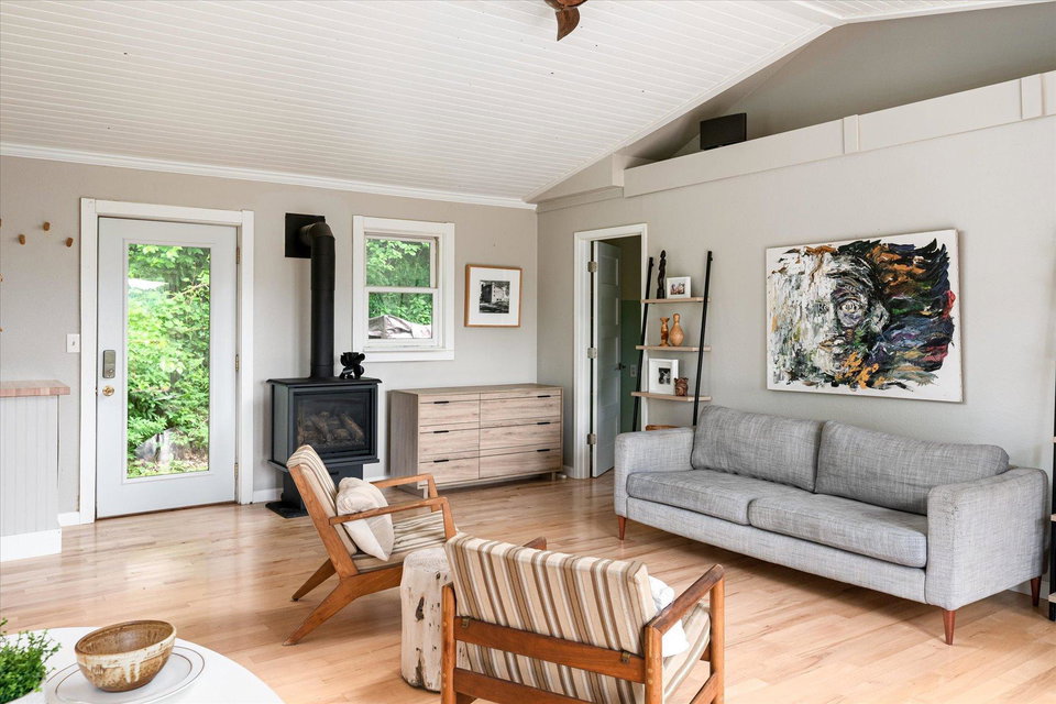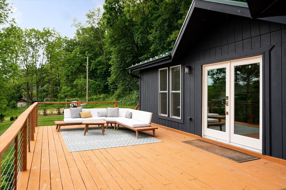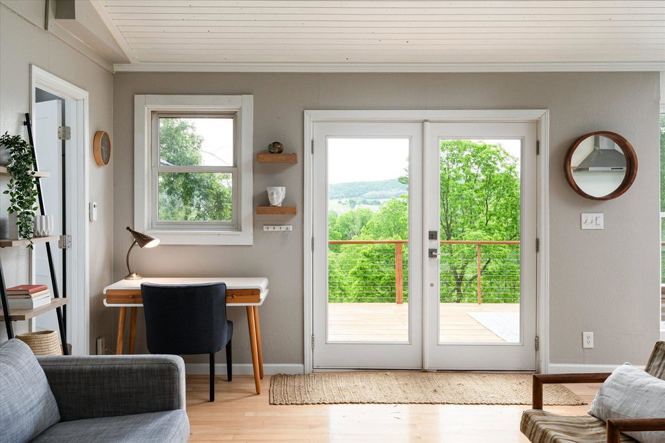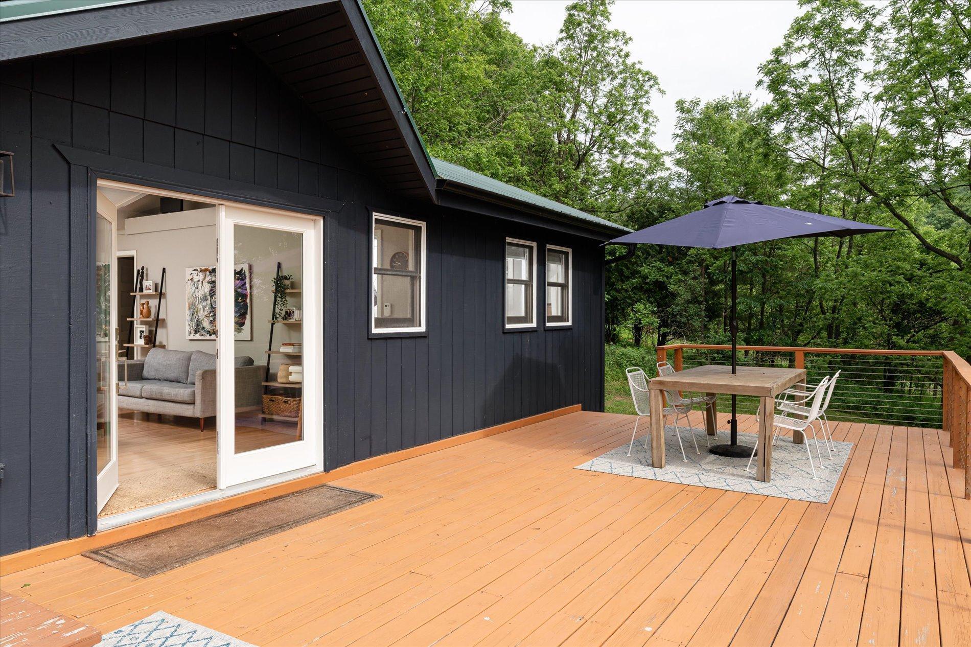 The curious and stunning driftless region will capture you in awe, taking your breath away with its vivid yet calming landscapes. Around the bend on River Rd, overlooking the Kickapoo River, you will find this dreamy escape of 7 acres. With a panoramic view off the deck – the main home includes two bedrooms, full bathroom, gas fireplace, eat-in kitchen, and a washer/dryer. The tiny home is your bonus bedroom space with a loft and room for another bed and/or pull out sofa – perhaps your writers retreat or musicians oasis! One car garage door opens into spacious garage with plenty of storage for all of your year round toys (480 square feet). Access to 20 miles of recreational trails (groomed in the winter for cross country skiing). A land covenant protects shared access to an additional ~4 acres of Kickapoo riverfront. 20 min from Viroqua, 1 hr from LaCrosse, under 4 hrs from Minneapolis. Cast a line, this is YOUR spot! OPEN HOUSES June 17 4-6PM and June 18th 10-12PM