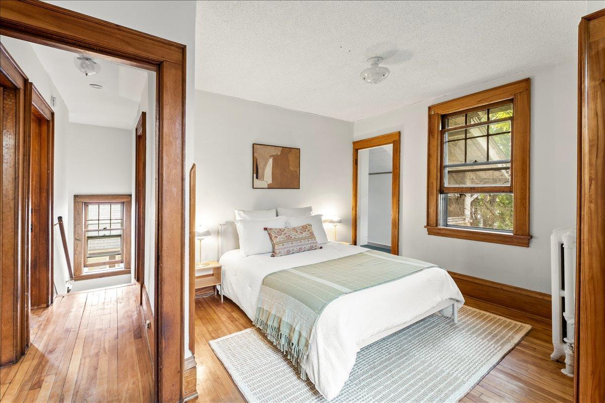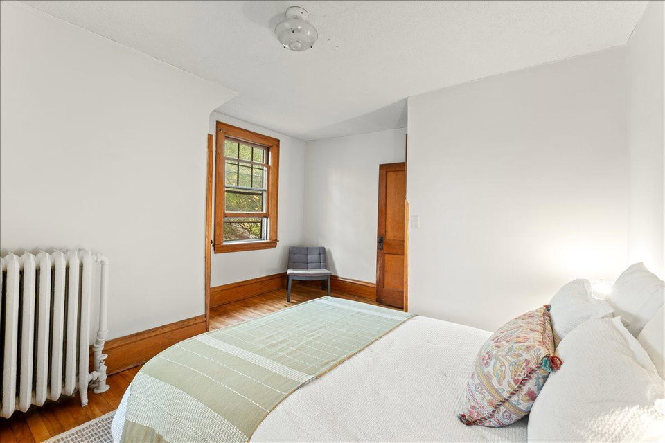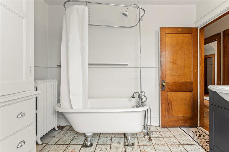 Upstairs, you’ll find three bedrooms on one level. The primary suite includes a converted porch turned into a generous walk-in closet—a rare find in older homes—with potential to restore it back to a porch. A large full bathroom with a classic clawfoot tub completes the second floor.