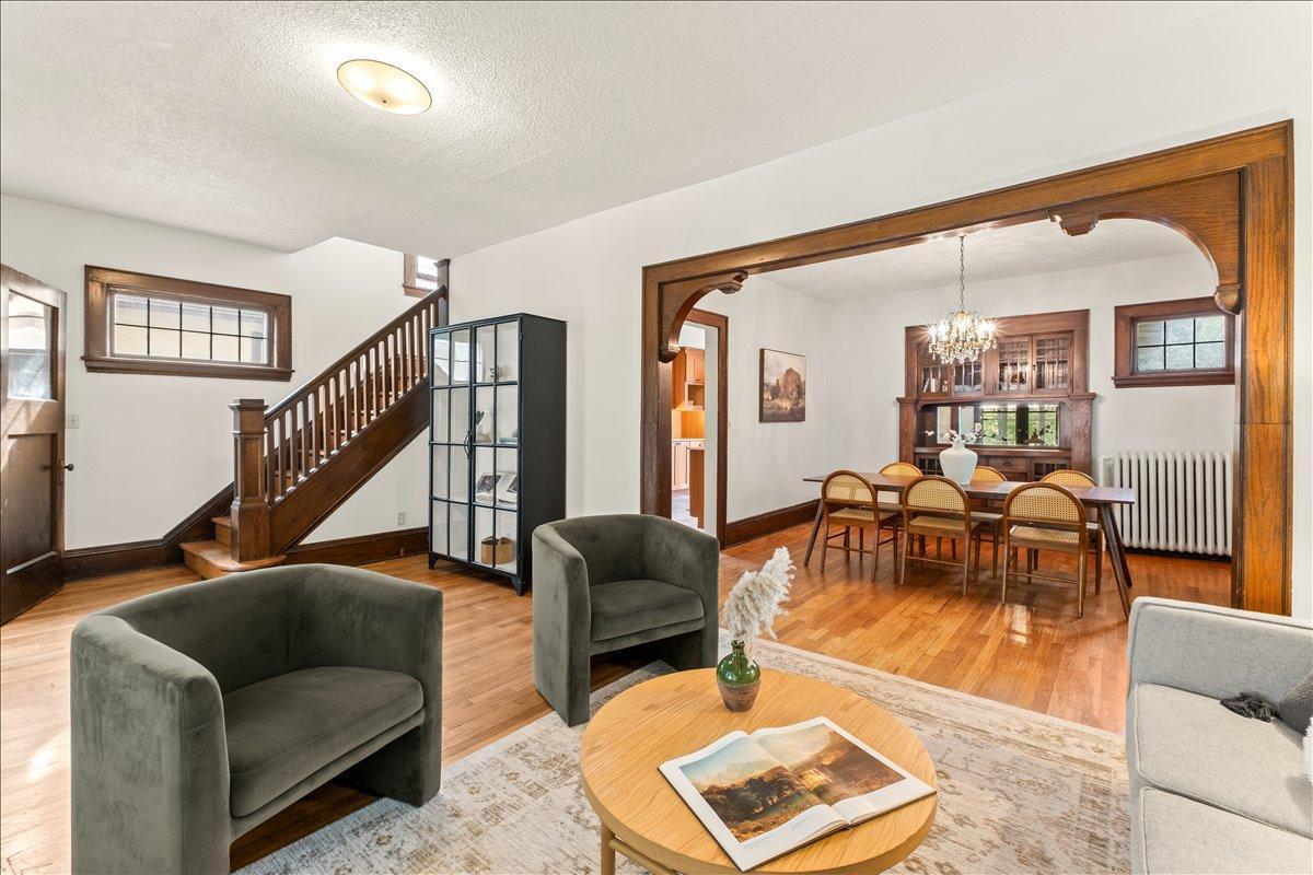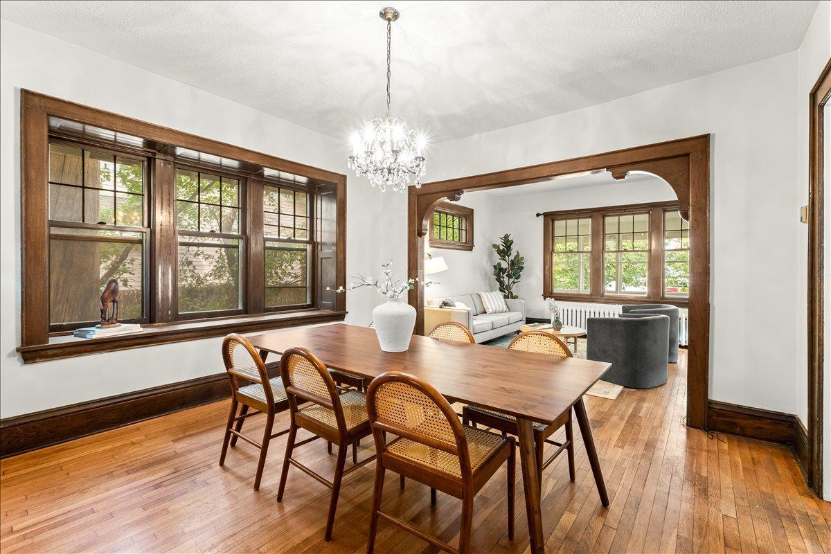 Lovingly maintained by the same owner for 38 years, this beautiful bungalow offers timeless character and modern updates. A breezy front porch welcomes you into a light-filled main level featuring exquisite woodwork and gleaming hardwood floors throughout.