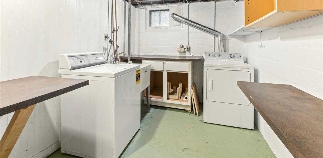 The unfinished basement offers excellent storage and future potential with tall ceilings and space for an egress window.