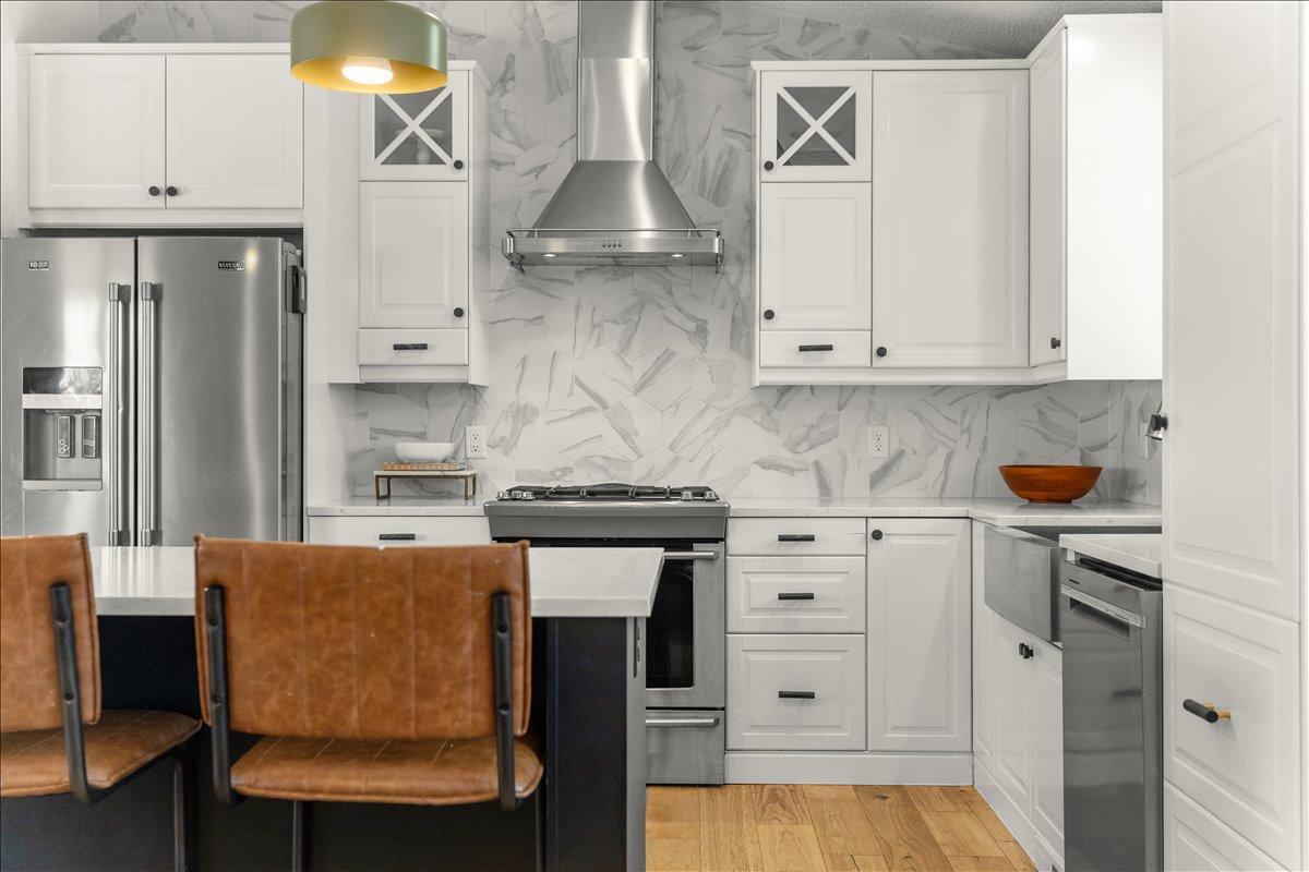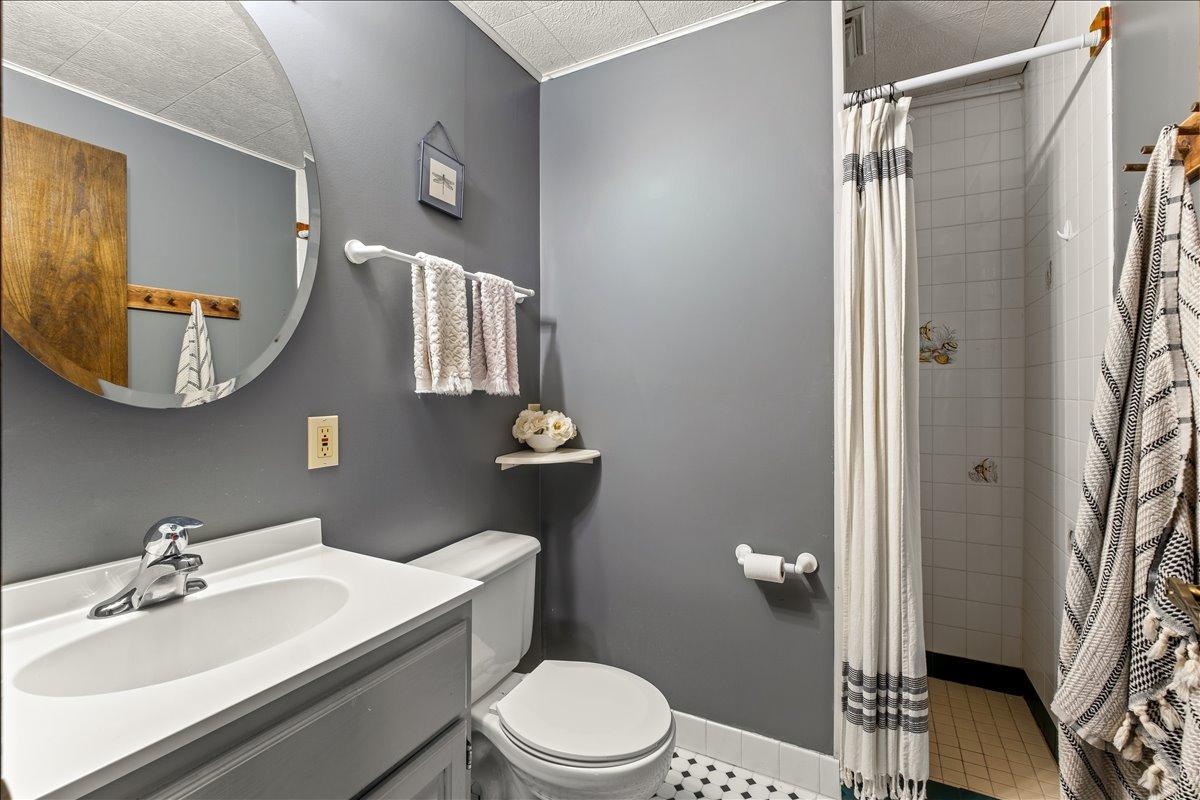 The main level bathroom has been thoughtfully renovated with marble tile and a double vanity, offering both beauty and function. The walkout lower level features a spacious family room with a second gas fireplace, two additional bedrooms, and another bathroom, providing excellent flexibility for guests, work-from-home, or multi-generational living.