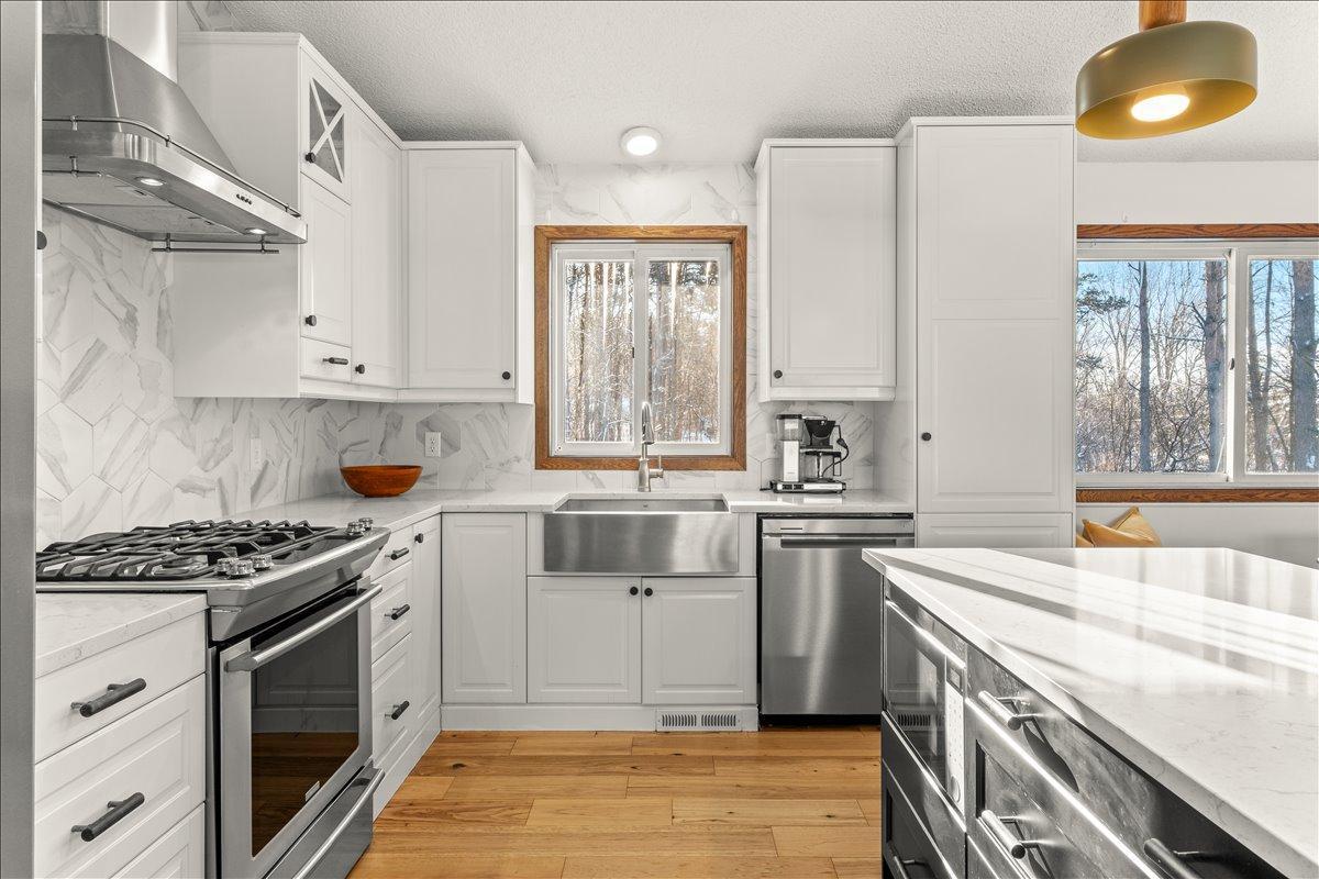 Set on a peaceful 1.7+ acre parcel that feels much larger, this beautifully updated home offers a rare sense of privacy with sweeping pond and forest views, lush greenery, and an expansive yard that wraps around the home. The outdoor space is ideal for gardening and outdoor enjoyment, featuring raised garden beds and six apple trees now in their third year. The setting is quiet, serene, and truly special.