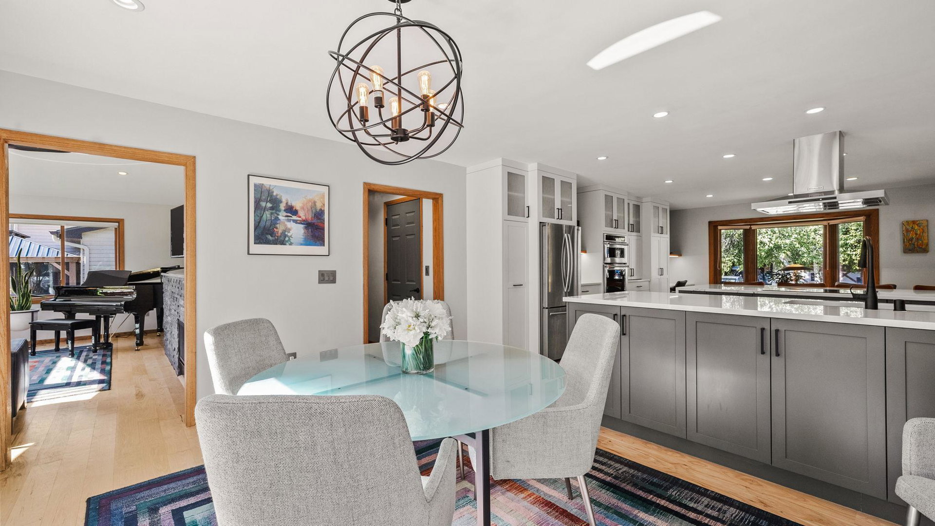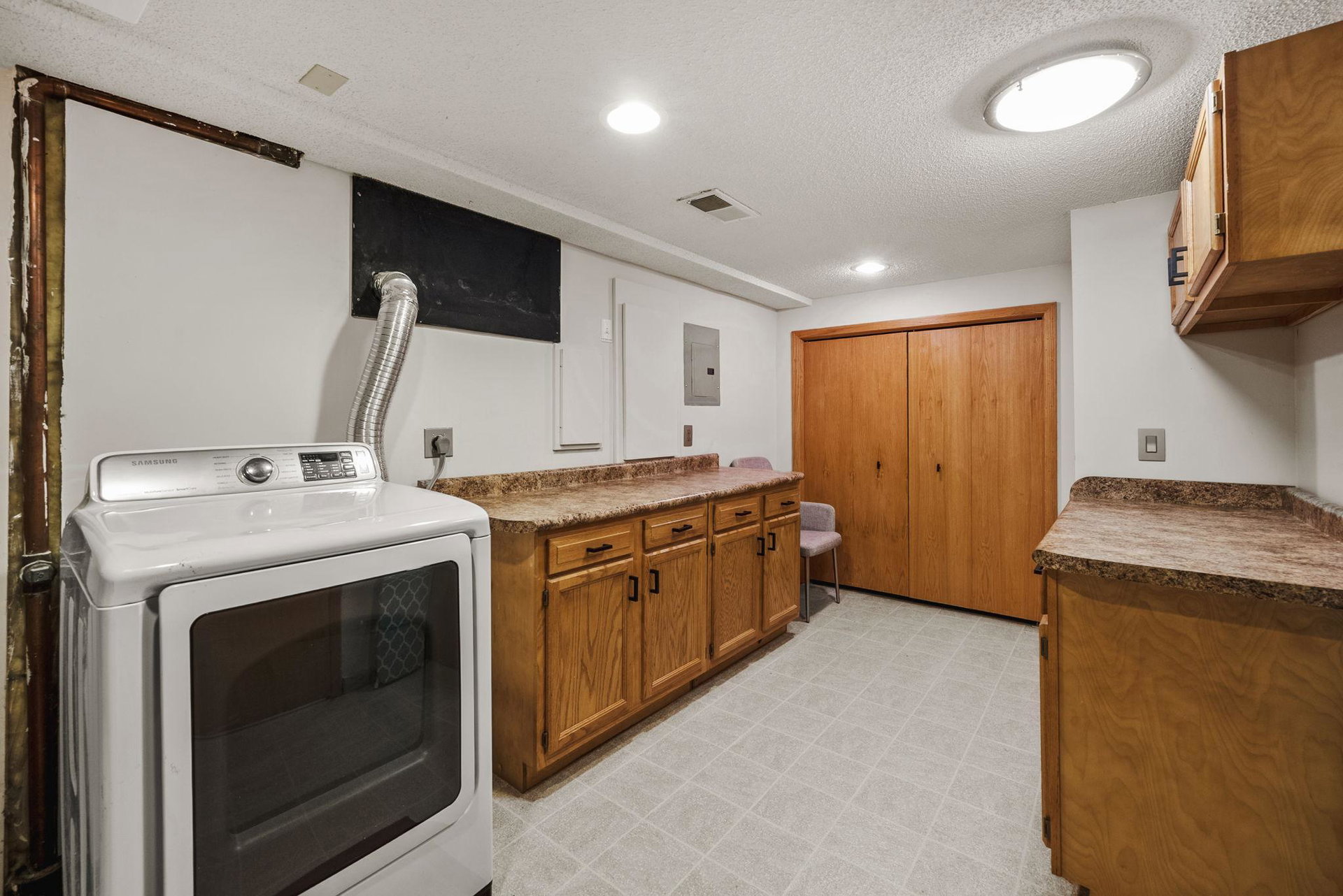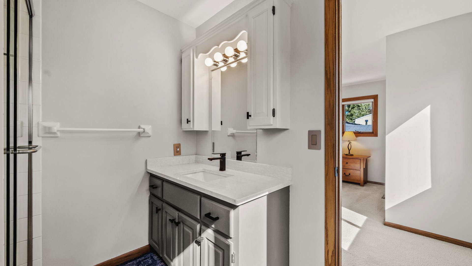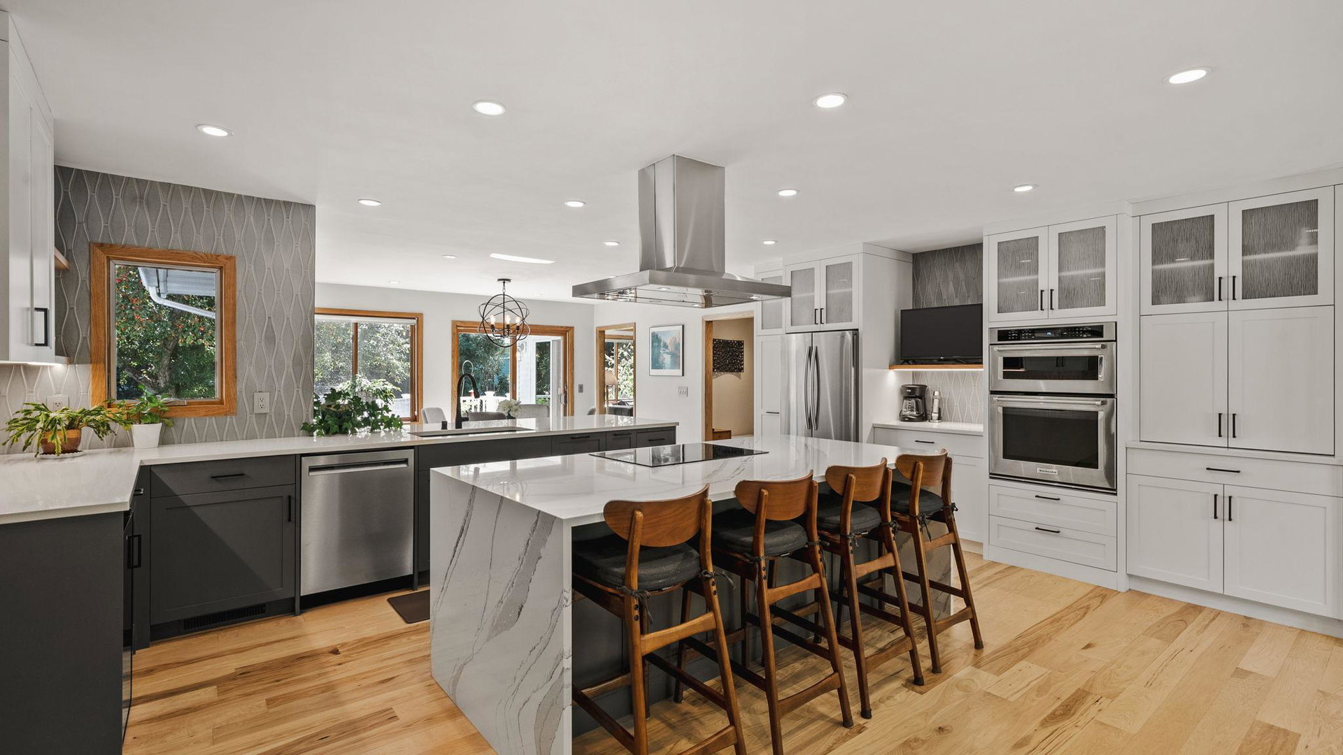 This beautifully reimagined four-level split home, transformed by renowned Shelter Architecture in 2019, blends thoughtful design with modern function in the heart of New Brighton. Offering 3 bedrooms, 3 bathrooms, and two distinct living rooms, this home hosts both function and style in a coveted neighborhood with deeded access to Long Lake and placement in the Mounds View School District. At the heart of the home is a large, open-concept kitchen, a showcase of the Shelter renovation. With rich hickory floors, sleek quartz countertops, and a generous center island, the kitchen creates a visual and functional anchor with sightlines extending throughout the main levels. The kitchen includes stainless steel appliances, wine fridge, and large custom cabinetry built in for a pantry, office, and coffee/appliance area. A bright dining room at the back of the home overlooks the backyard and deck. The main floor family room addition is filled with southern light and features a cozy gas fireplace. On the upper level are all three bedrooms, including a full bath and a private primary suite with its own updated ¾ bathroom. The garden-level family room provides a second gathering space with tall ceilings, a second gas fireplace, and walkout access to the lush backyard. The lowest level includes a finished laundry area, a flexible space for a workout room, and more storage. Enter through the attached two-car garage into a thoughtfully designed transition space, featuring a mudroom, a large closet, and a walk-in pantry, adding everyday convenience and ample storage right where you need it most. Step outside to your private backyard oasis, surrounded by tall arborvitae trees for privacy. Enjoy the shade of a joyful crabapple tree and the vibrant colors of sunflowers and zinnias among established perennials. Spend evenings on your deck or head across the street to Long Lake to take advantage of the shared dock, beach, and recreational waters. Meticulously maintained by the sellers since 1984. This is an opportunity to live with architectural intention and natural connection!