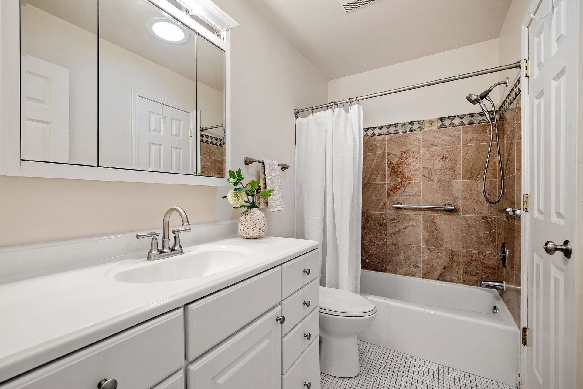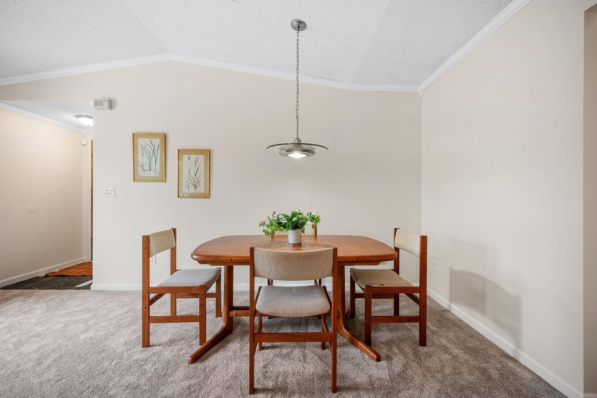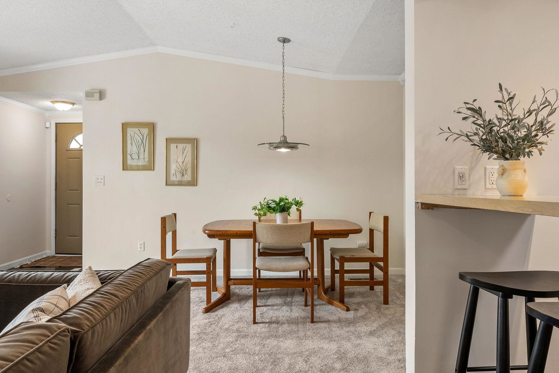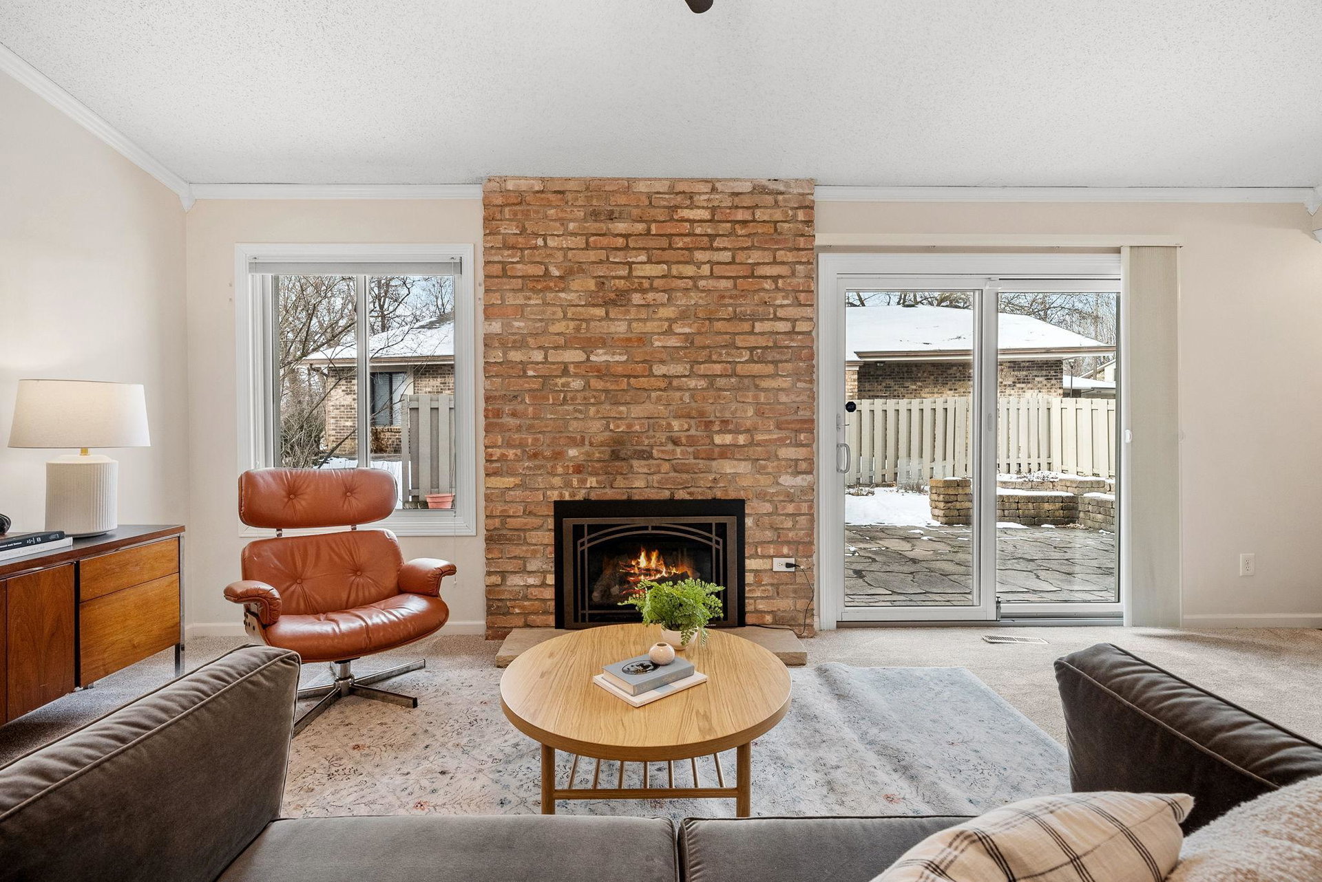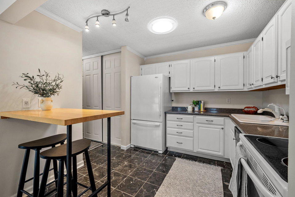 This charming townhome offers a relaxed, open-concept layout with vaulted ceilings, creating a spacious and airy feel throughout. The inviting living room is centered around a cozy gas fireplace with a handsome brick hearth, providing the perfect spot to unwind. The bright, eat-in kitchen is well-appointed with plenty of cabinet and countertop space, and there’s a dedicated area for formal dining. For added convenience, the laundry is tucked away just off the main living area.