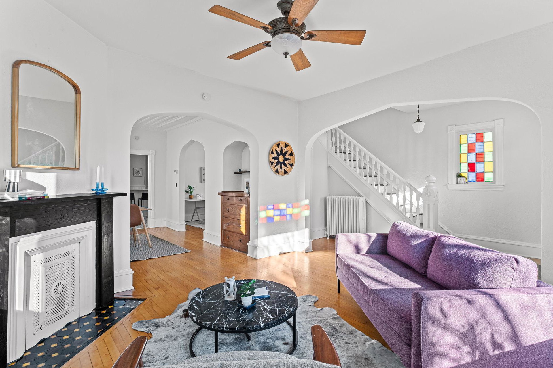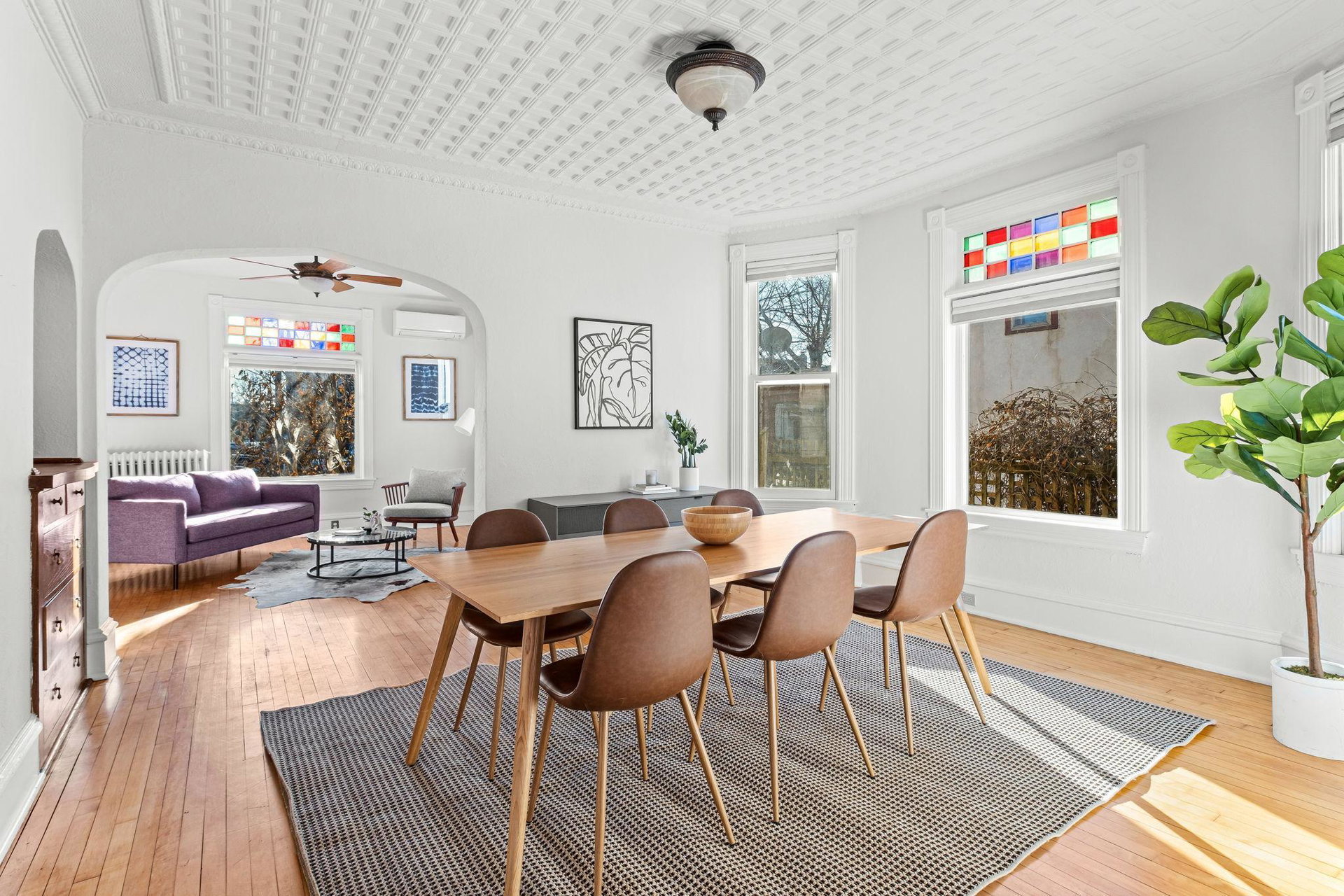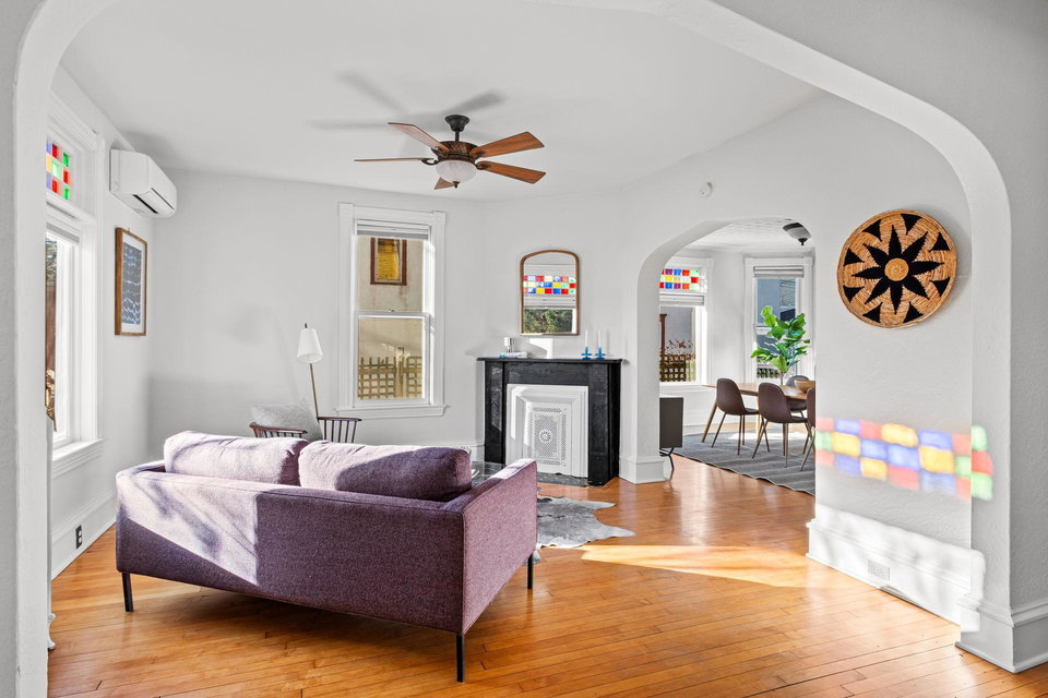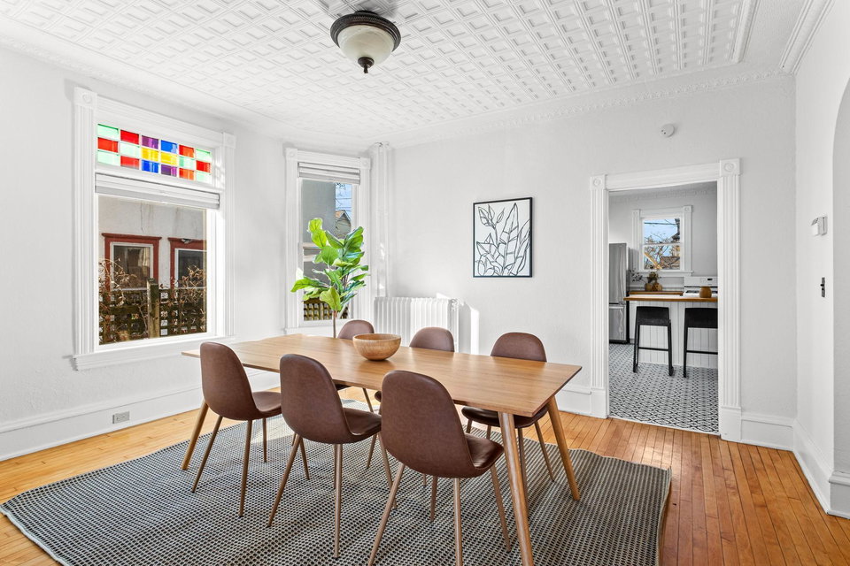 Wow! Check out this beautifully preserved Folk Victorian home! Rich with intricate Eastlake ornamentation and breathtaking vintage stained glass, this well loved home offers a seamless blend of history and warmth. Original maple floors flow throughout the spacious, freshly painted interiors, offering a timeless feel and incredible natural light in every room.
