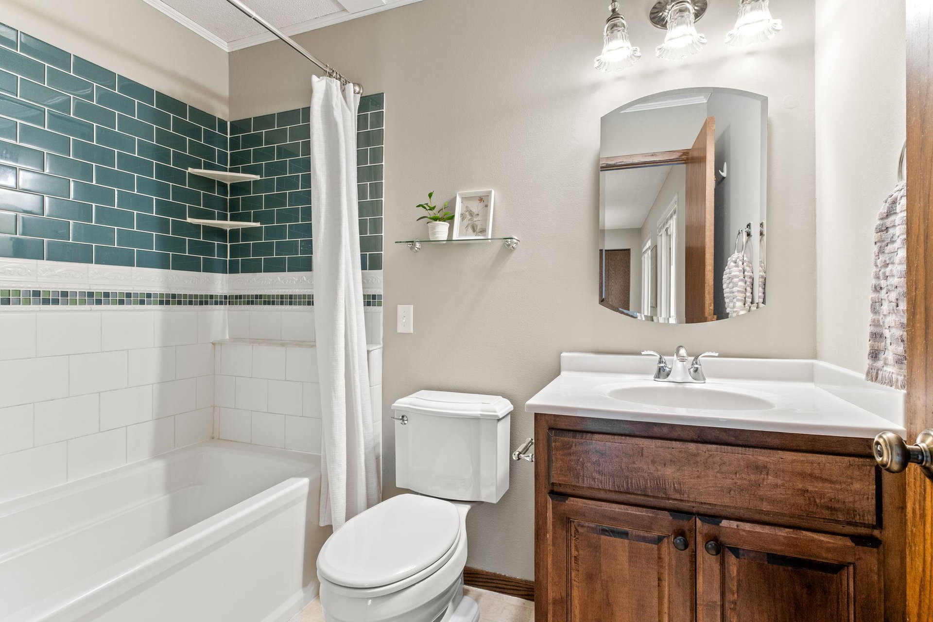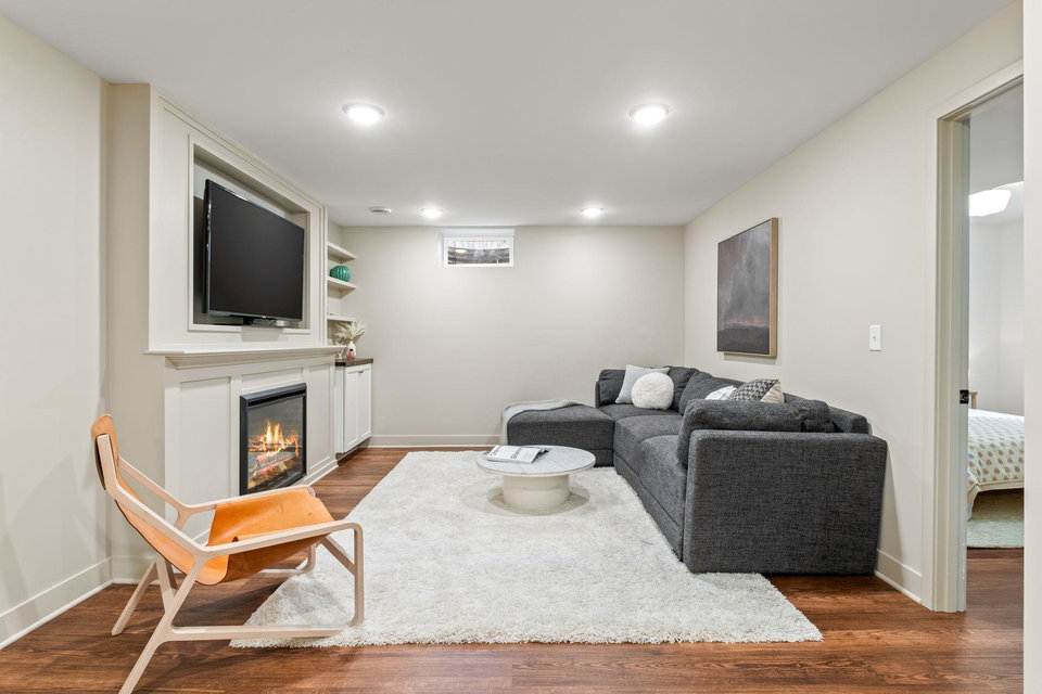 The fully finished lower level extends the home’s versatility, offering a cozy family room with a fireplace and built-in media cabinetry. An additional bedroom suite with a ¾ bath and walk-in closet is perfect for guests, a home office, or private getaway.