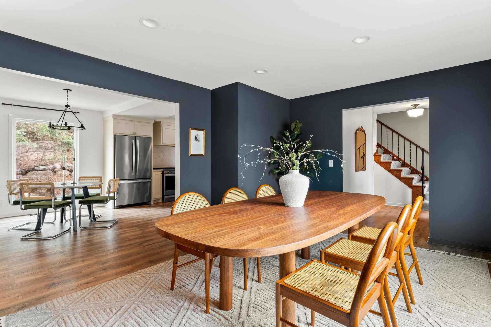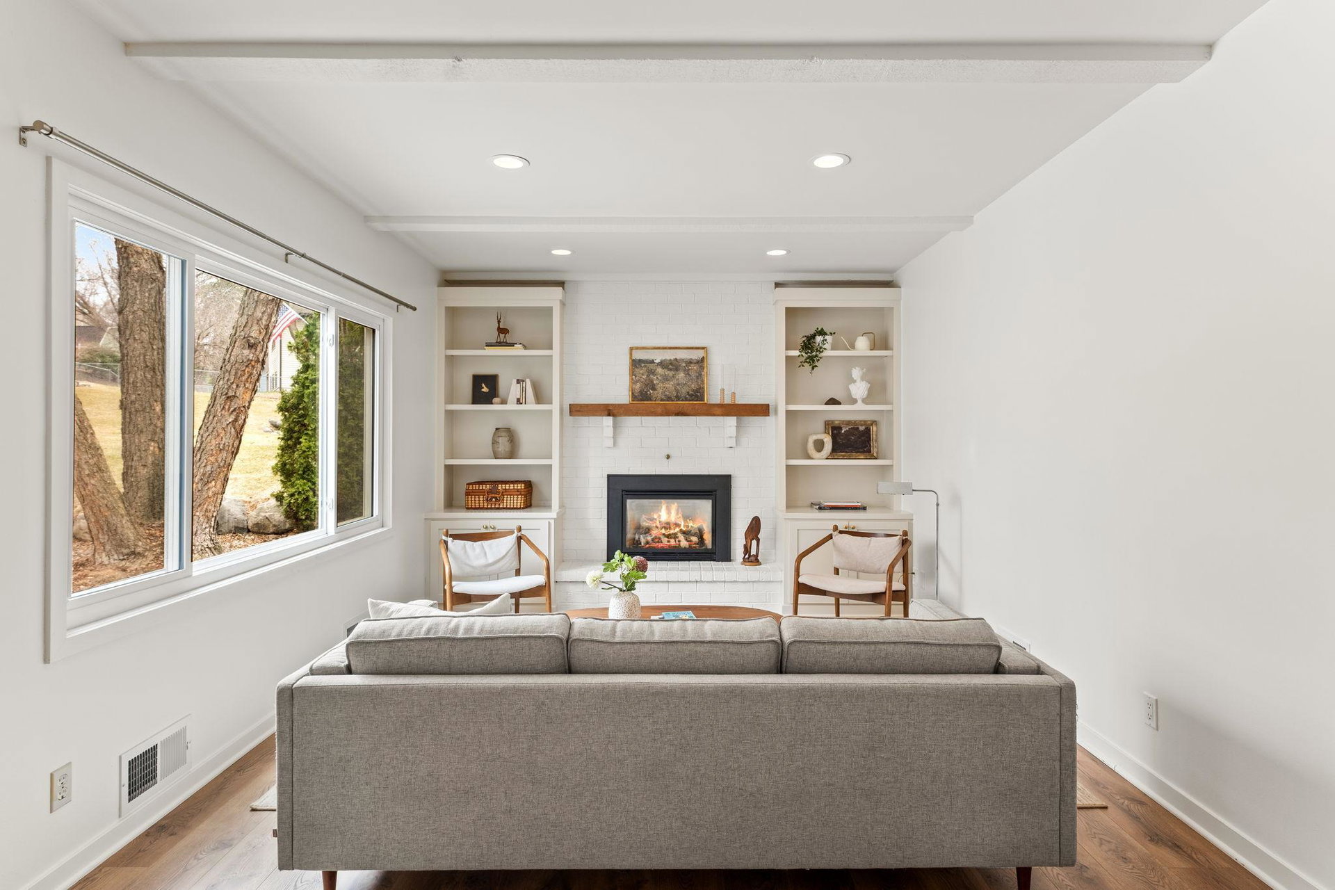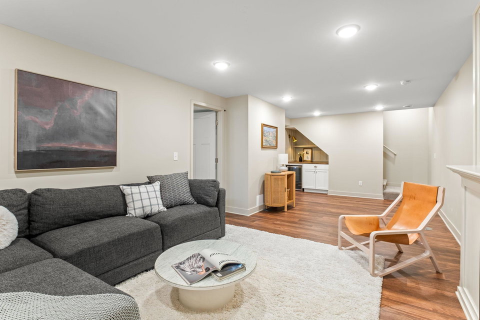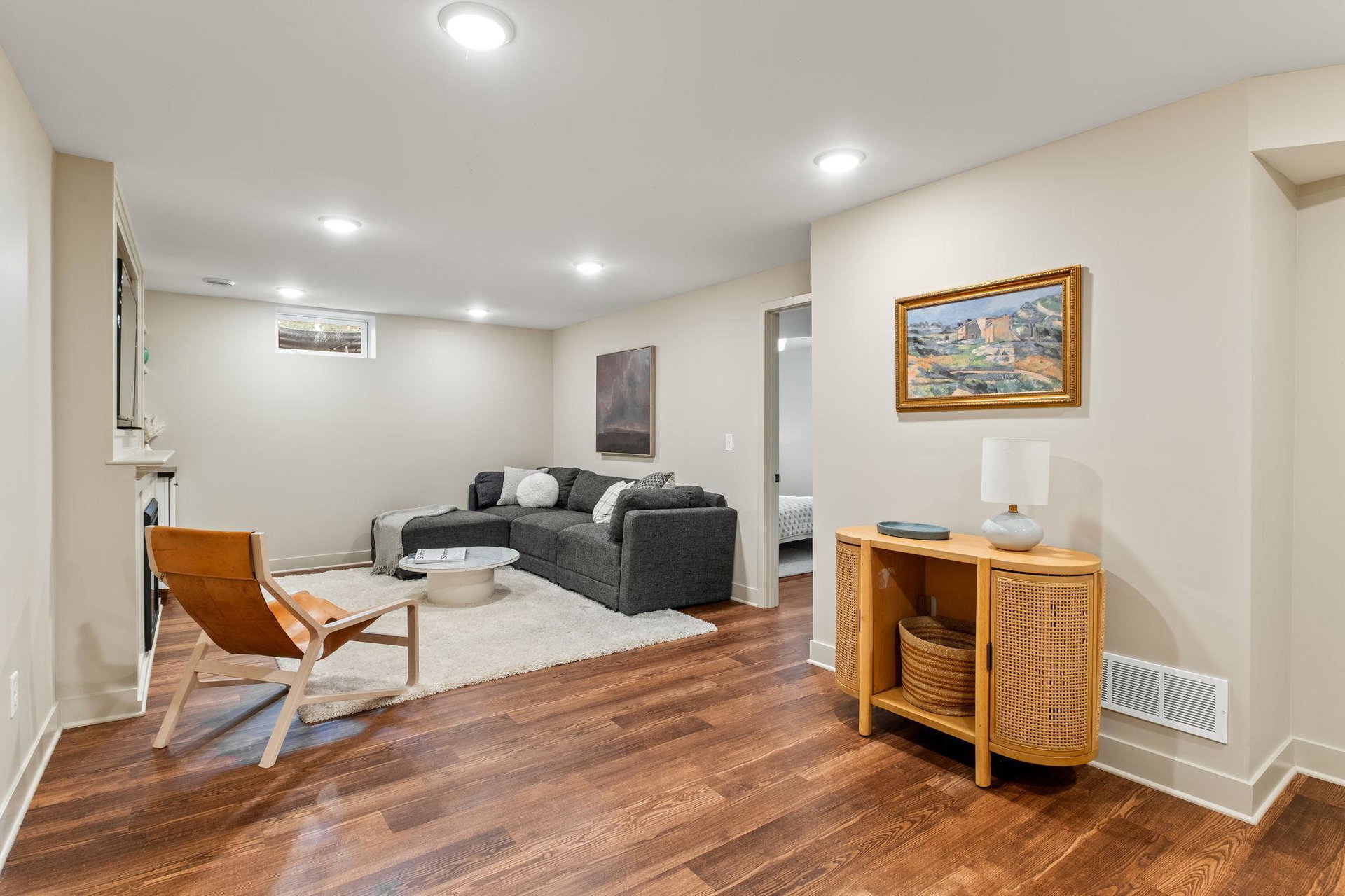 The main level offers a flexible open floor plan with exceptional sightlines while preserving the definition and purpose of each space. The family room features a lowered conversation spot, perfect for cozy chats around the fireplace, while the four-season porch, fully clad in knotty pine, adds a sense of warmth and natural elegance—ideal for year-round relaxation.