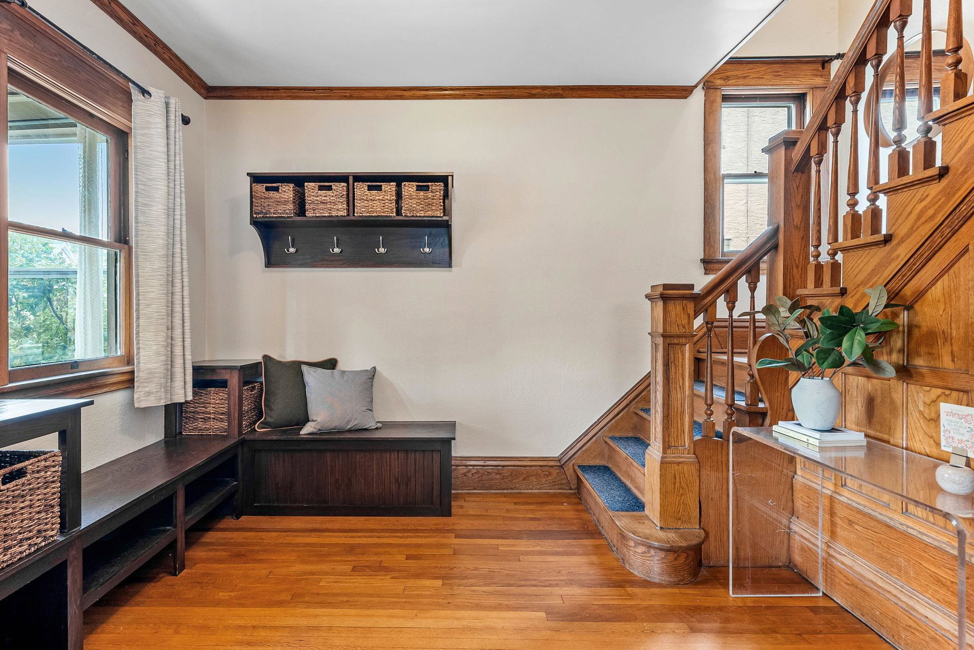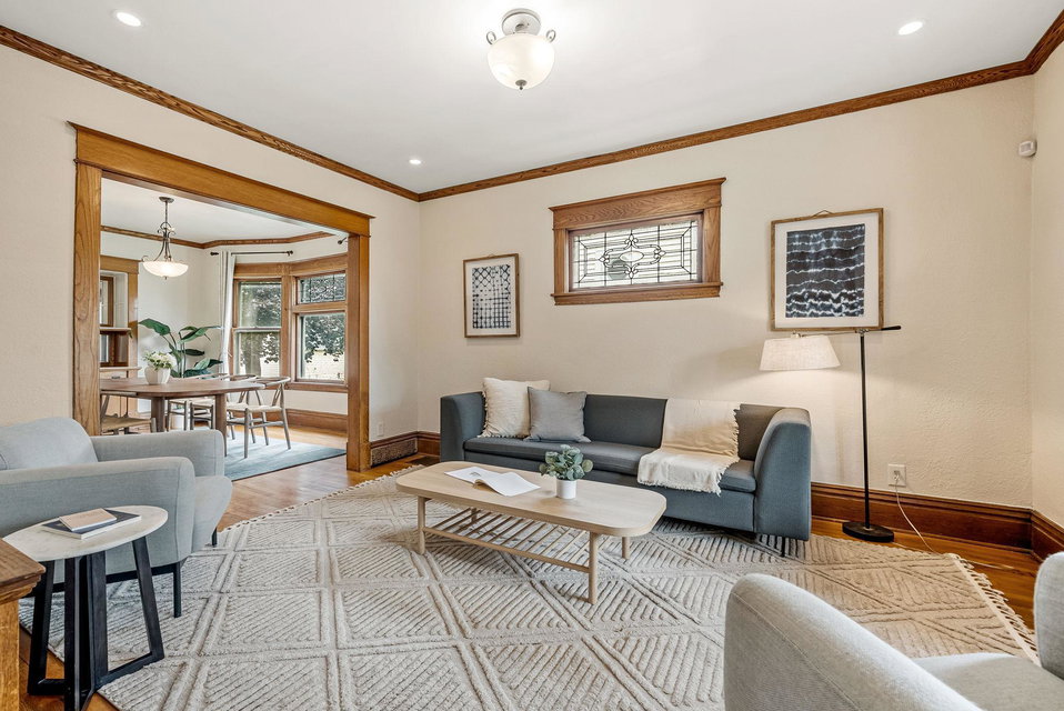 Classic Merriam Park Charmer! This updated 2-story Craftsman is ideally located near parks, restaurants, a great library, and charming vintage retail shops. Featuring a welcoming 3-season porch, stunning original hardwood floors, and fresh paint throughout, this lovingly maintained home is truly move-in ready. The spacious remodeled kitchen boasts ample cabinet and counter space and stainless appliances. Step through the kitchen’s patio door to enjoy a sunny deck and fenced-in backyard, plus a coveted heated oversized 2-car garage. The upper level offers three generously sized bedrooms and a renovated full bathroom. Upgraded Electrical with Recessed Lighting & 200 AMP service, High Efficiency Furnace, Central Air, Newer Plumbing Throughout… Come see just how sweet life can be in this fantastic St. Paul neighborhood!