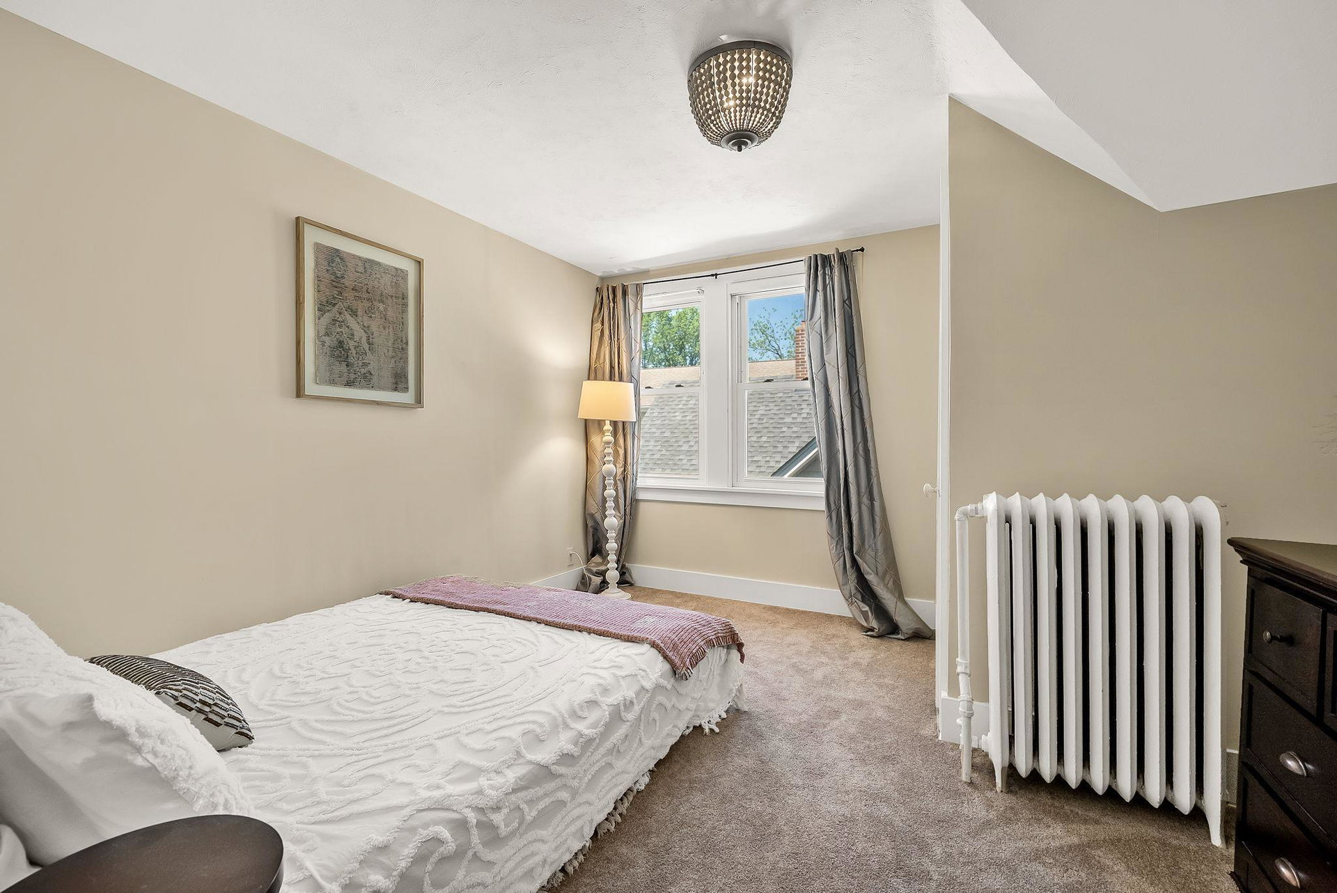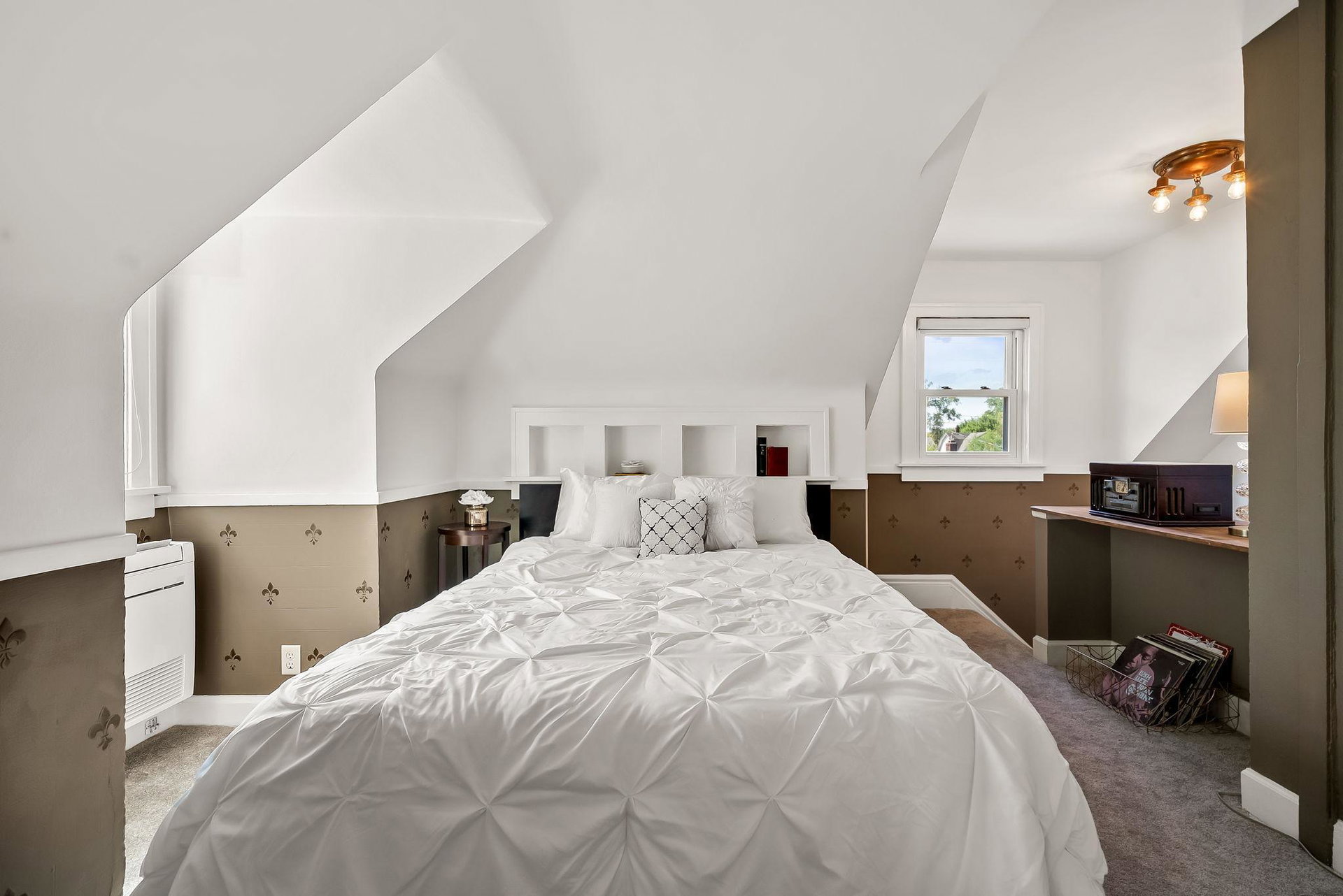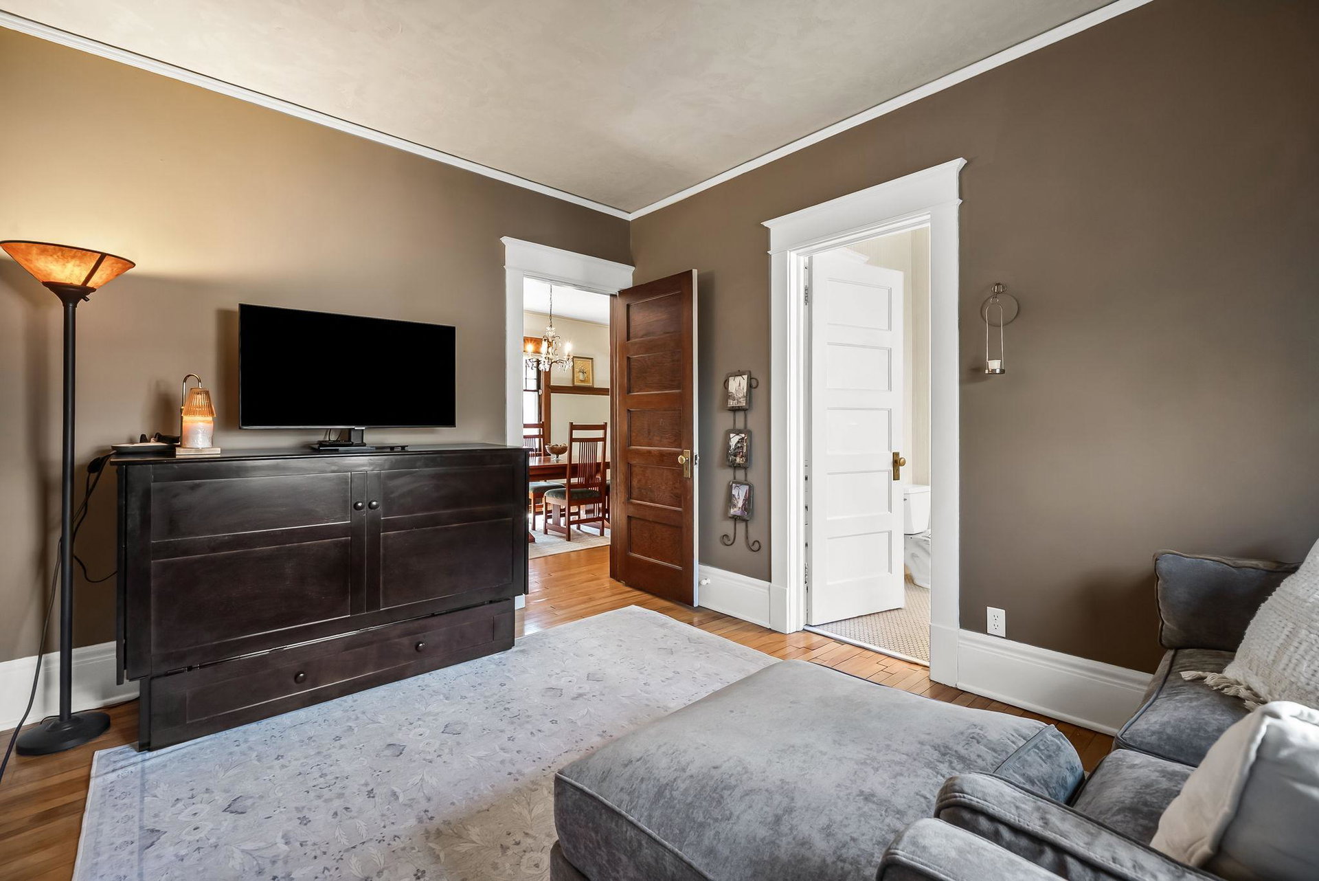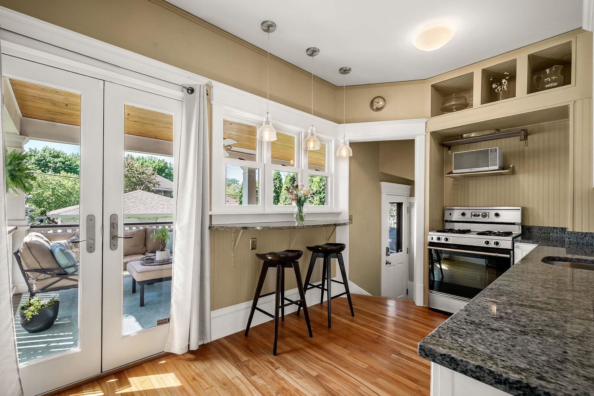 On the main floor there are two bedrooms which offer opportunities to either work from home, host a guest, have a media or library room. These spaces offer flexibility to use however, you need the space to function for you. The updated kitchen, located in the back of the home, is filled with natural light. The back deck accessible from the kitchen offers a extended living space to entertain, grill, and gather. From the deck you can enjoy the garden bed and yard that is starting to bloom.