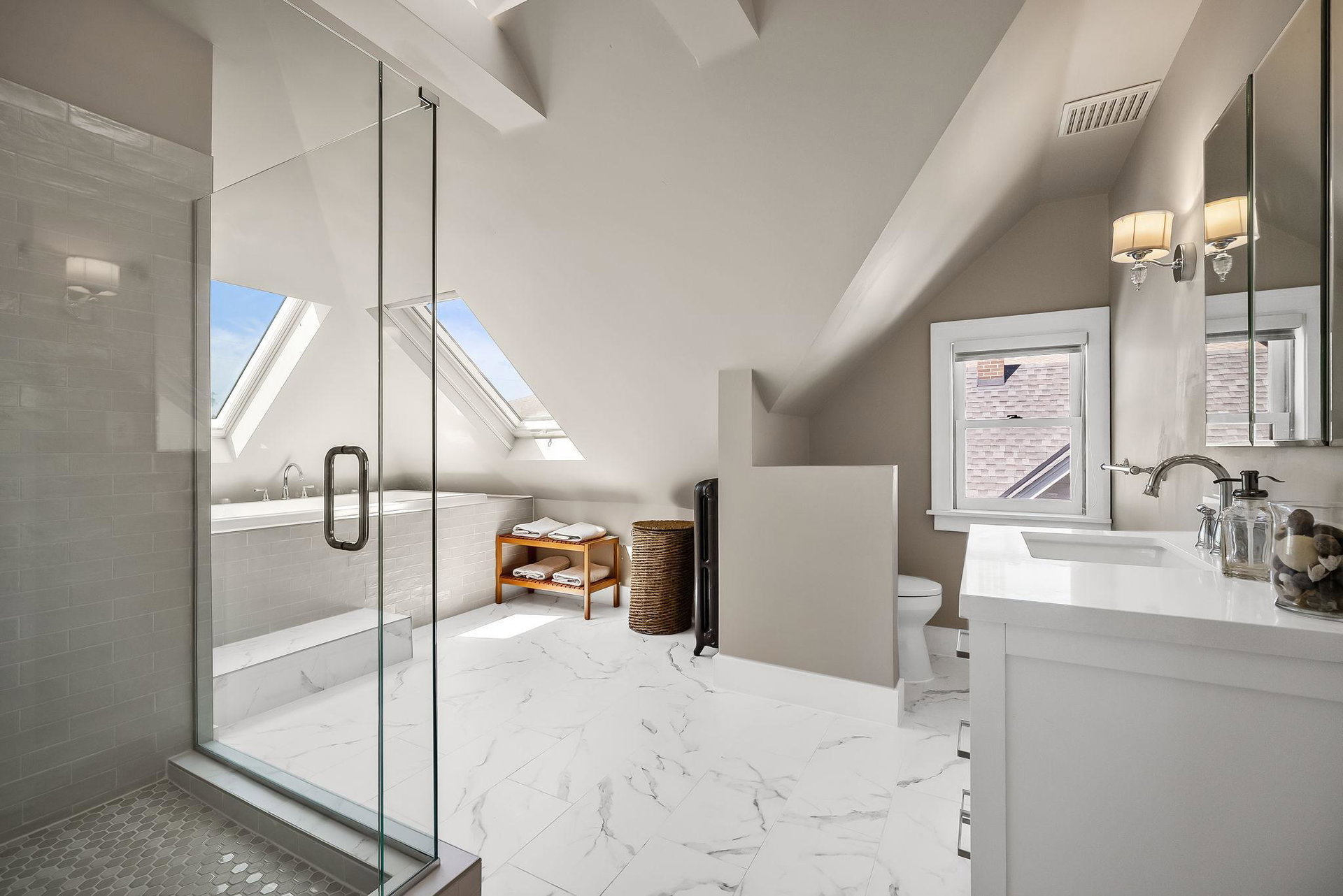 Upstairs features 3 bedrooms on one level with expansive closets. The primary bedroom has an oversized walk in closet with enough space to share. The recently updated bathroom is magazine worthy. This gorgeous space is filled with natural light making it an ideal place to unwind at the end of the day.