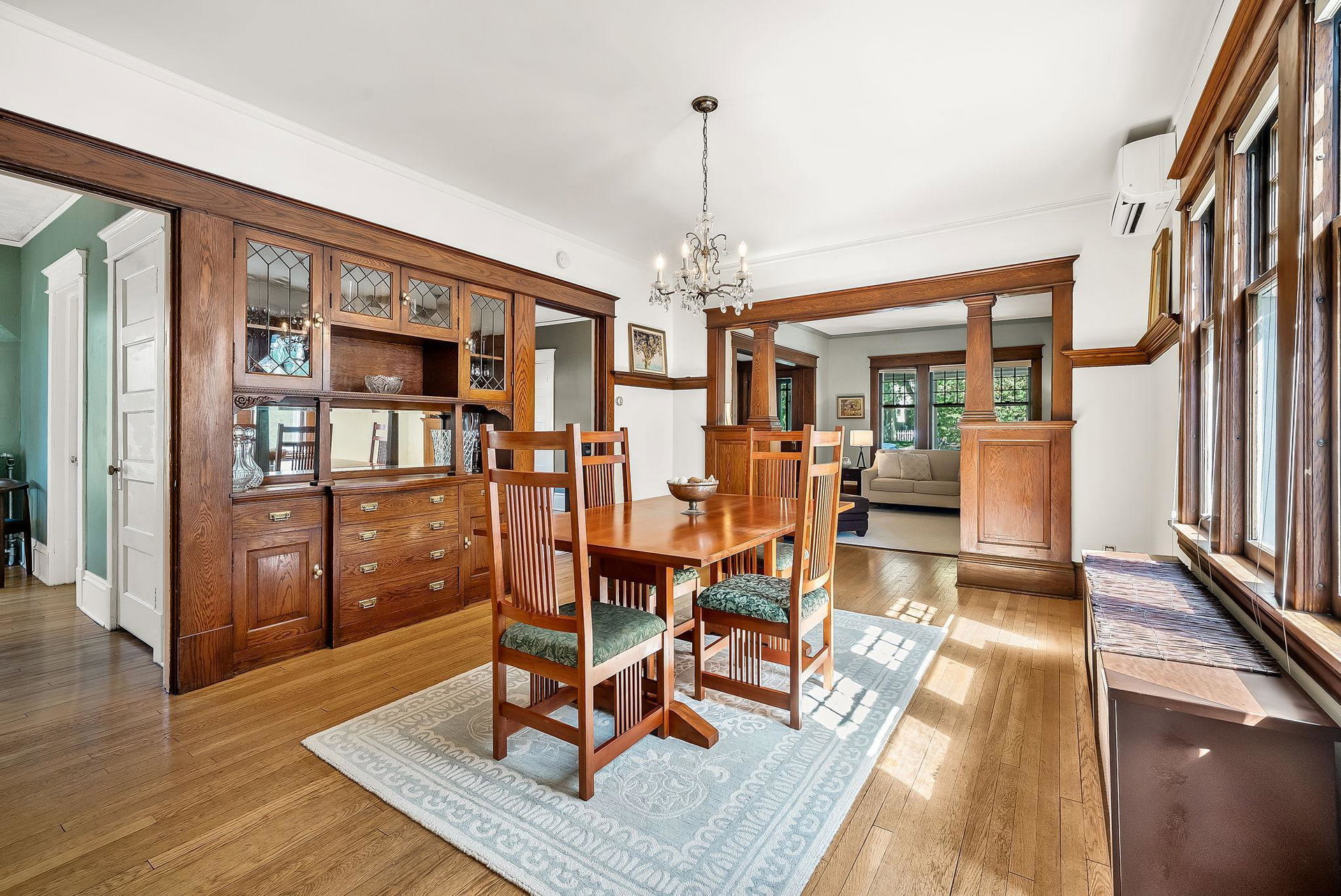 Nestled in St. Paul’s Merriam Park Neighborhood, this story and half character home built in 1913 awaits its next steward to continue the traditions and share the stories this home has. The appreciation of this home shows in the way it has been honored and preserved. Upon entering the home from the inviting screened in front porch you are welcomed into the entry & charming living room. A handsome fireplace centers the room and features an updated gas insert. The dining room shows off a beautifully preserved built in buffet that is a signature of these era homes.