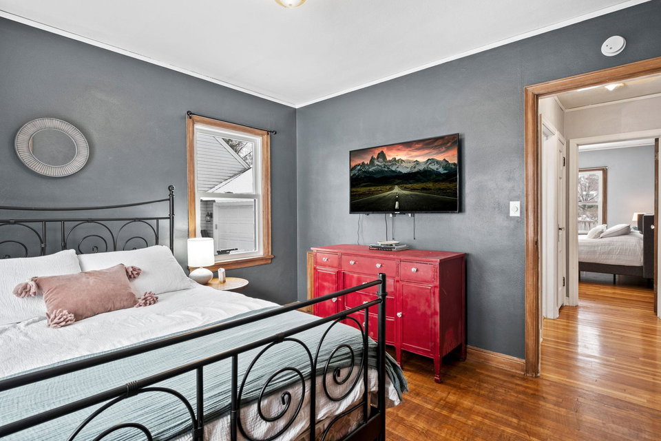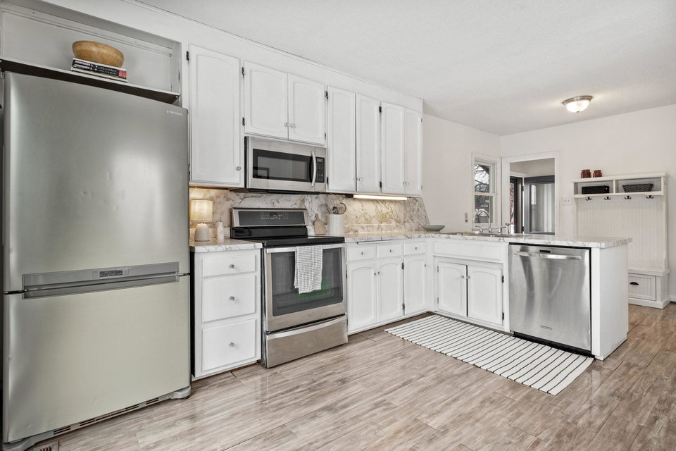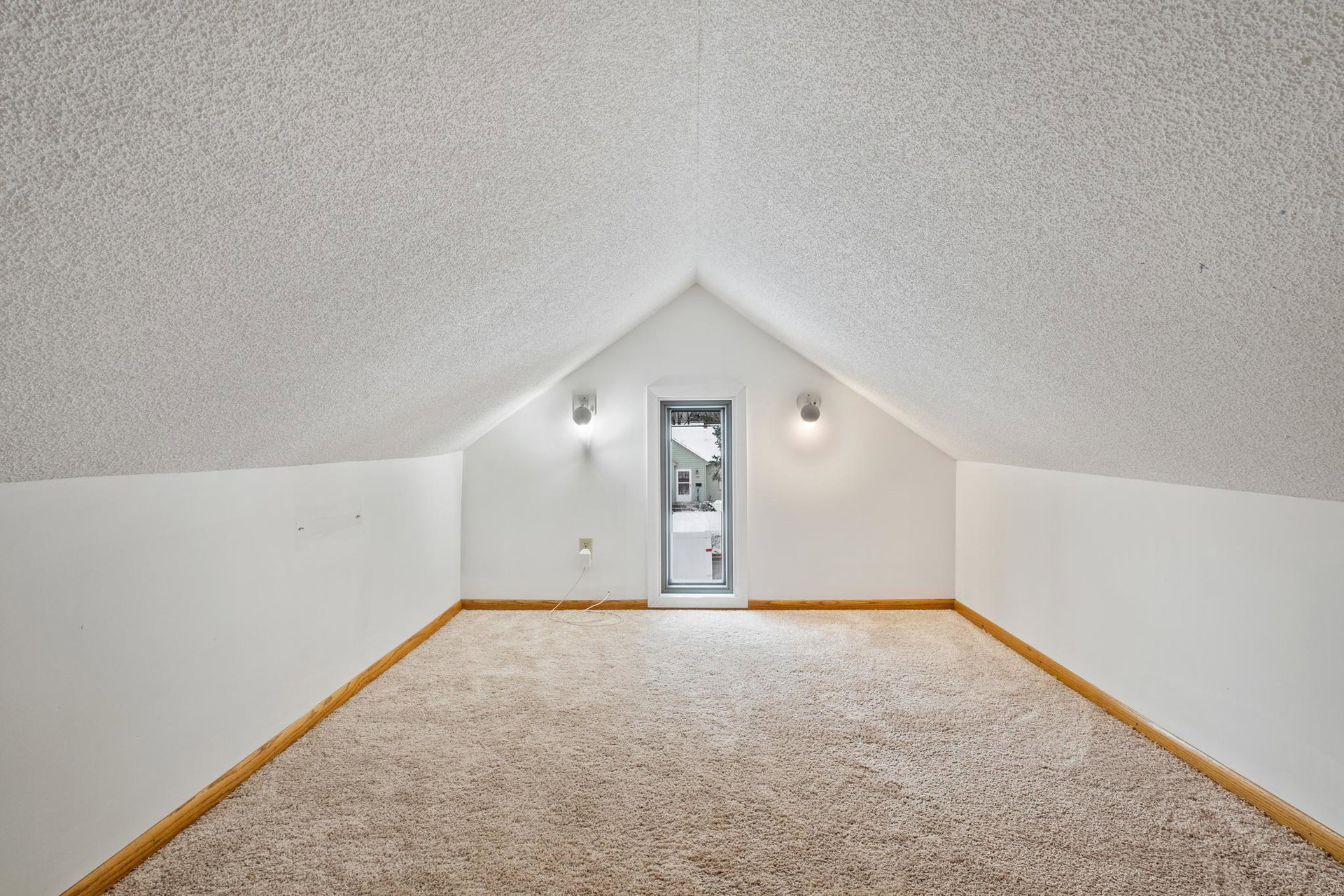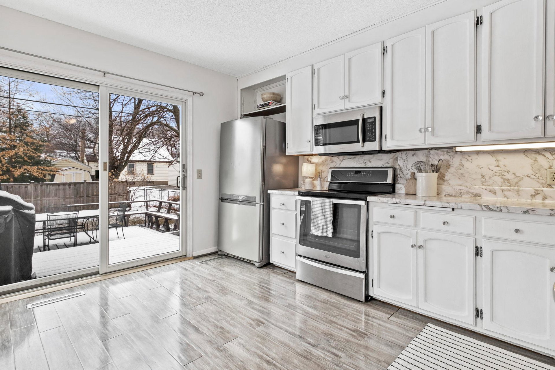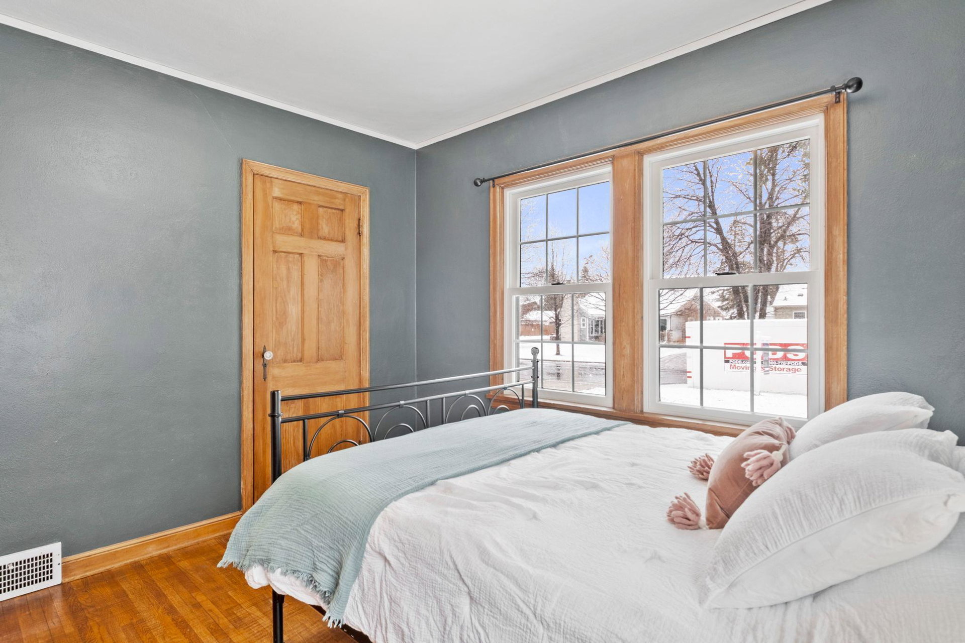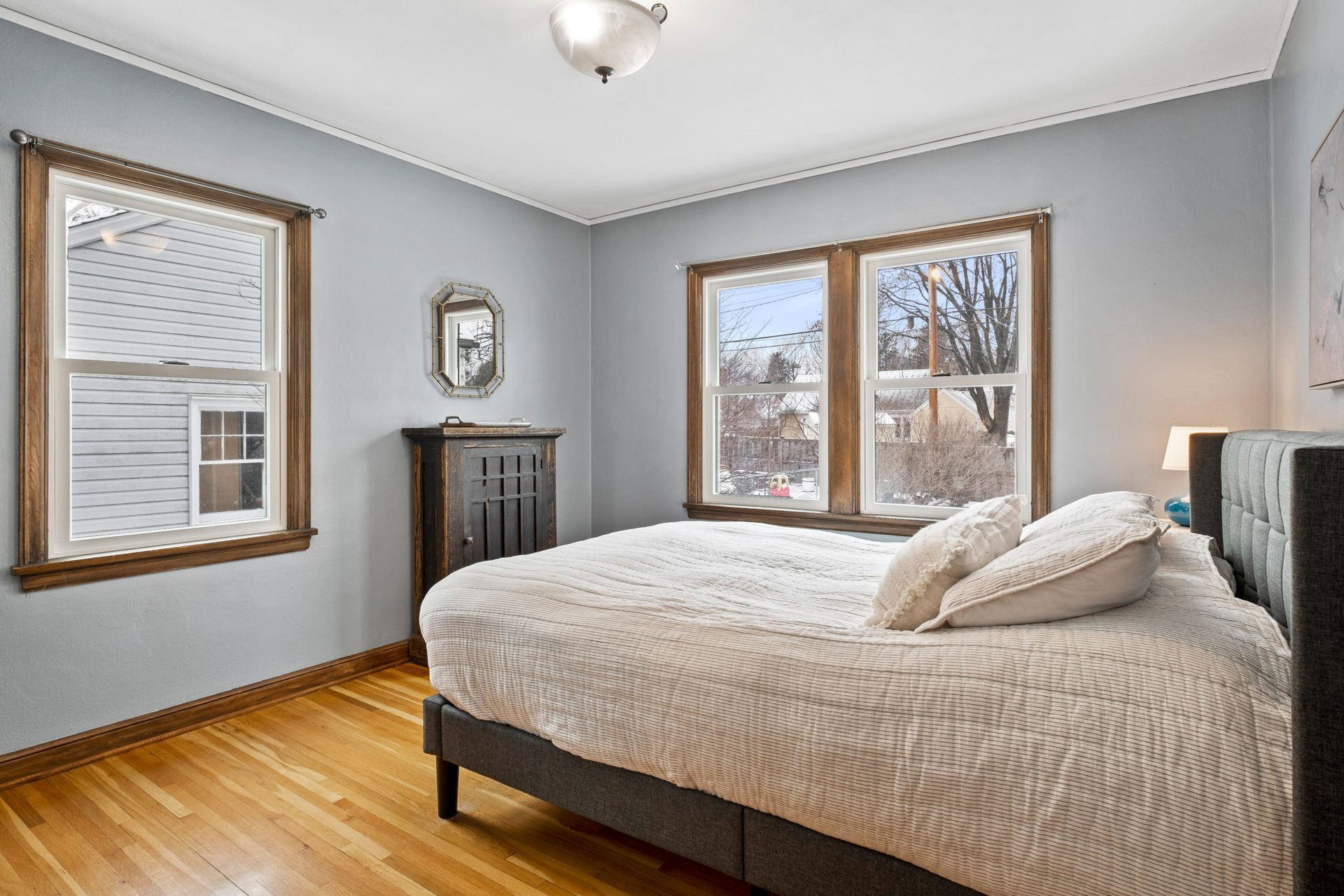 Come home to a delightful layout, plentiful bedrooms, welcoming neighbors, and spacious yard. This 1.5 story bungalow has two bedrooms, 3/4 bath, office and cozy lounge/play nook on the upper level. The main floor includes a large open kitchen, formal dining room, stylish fireplace, two bedrooms and an updated full bathroom. A large basement amusement room with an egress window is alongside a spacious laundry/mechanical/storage area and the third bathroom — plus, you still have a workout space or an easy guest room zone at the back of the home! New roof/furnace/AC in 2018, Drain tile system and egress window in basement in 2019, main floor bathroom remodel in 2021 and all exterior doors and windows replaced in 2021. Come see this gem in the Roseville School District!