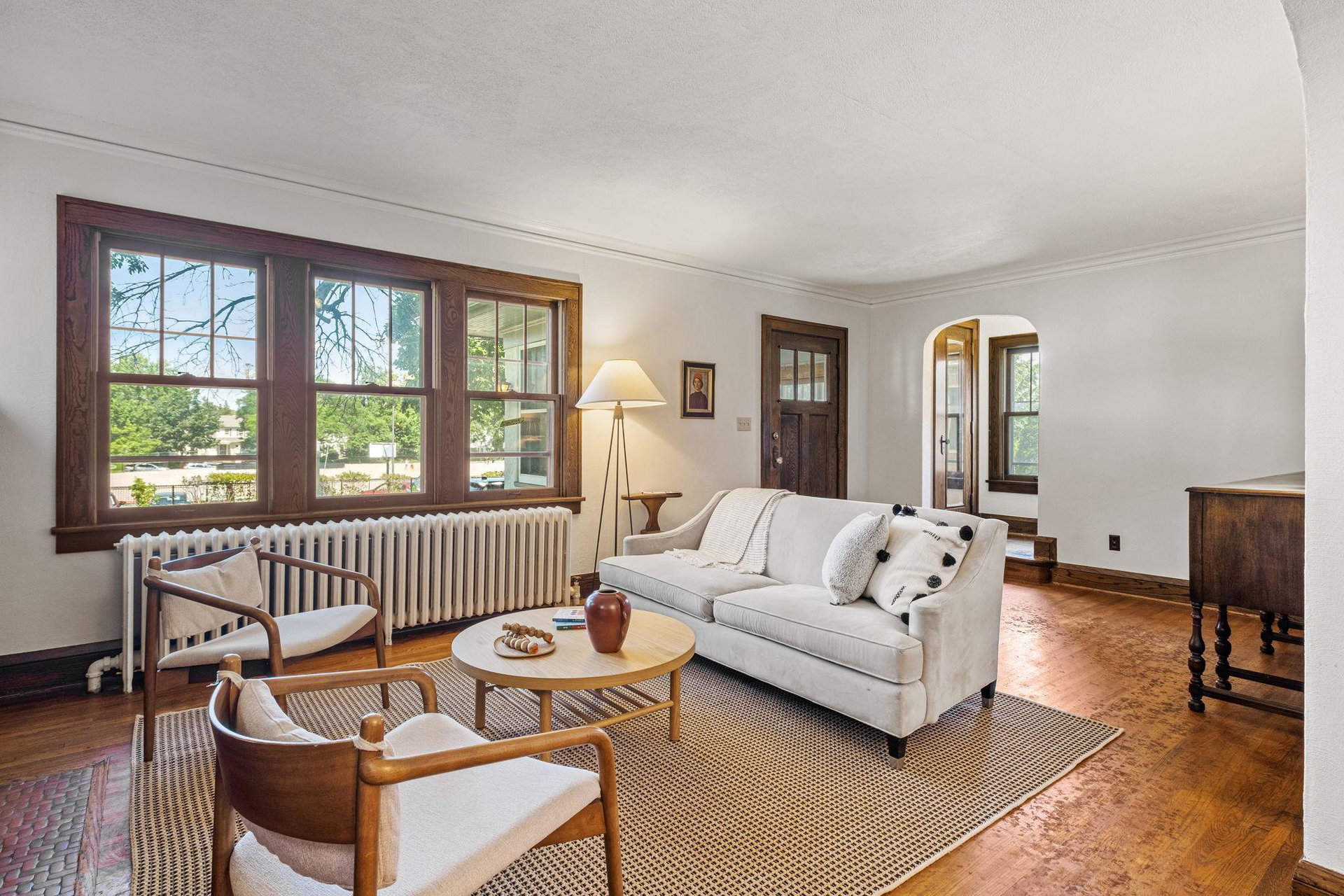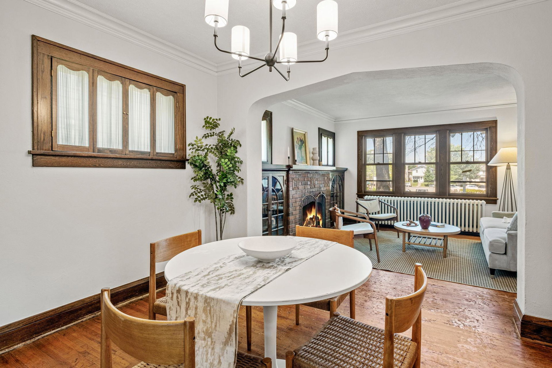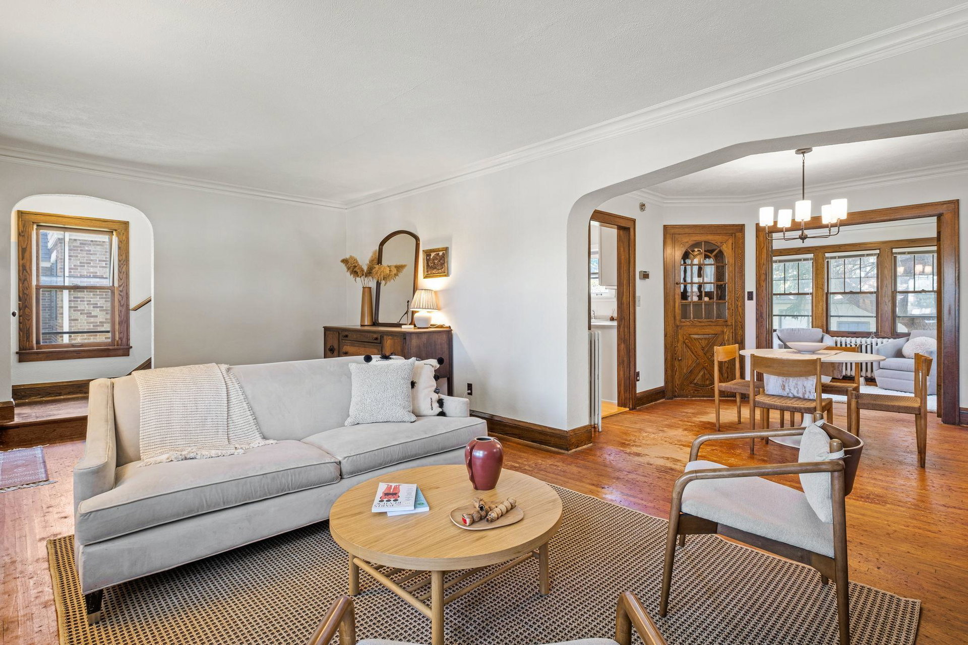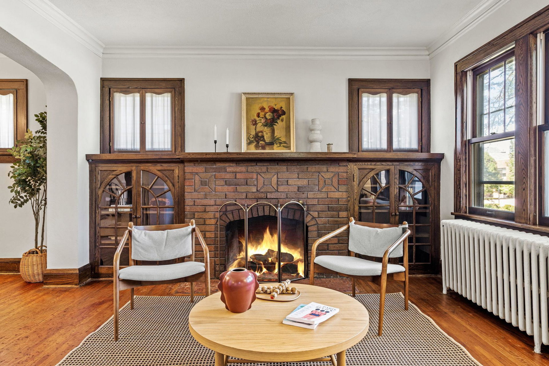 Available for the first time in decades, this Classic MacGroveland Two-Story is ready for its next stewards! Great flow and charming details throughout such as friendly front porch, hardwood floors, arched openings, cozy brick fireplace, original built-ins and charming natural woodwork. The main level boasts an updated convenient kitchen with cheery breakfast nook, inviting sunroom and spacious dining room opening up to an open and inviting living room. All three bedrooms and full bathroom are on the upper level. Full basement with opportunity to expand finished space. All of this is situated on a nicely sized lot with beautiful tree coverage. Close to schools, restaurants, and parks, and more. Come check it out today!