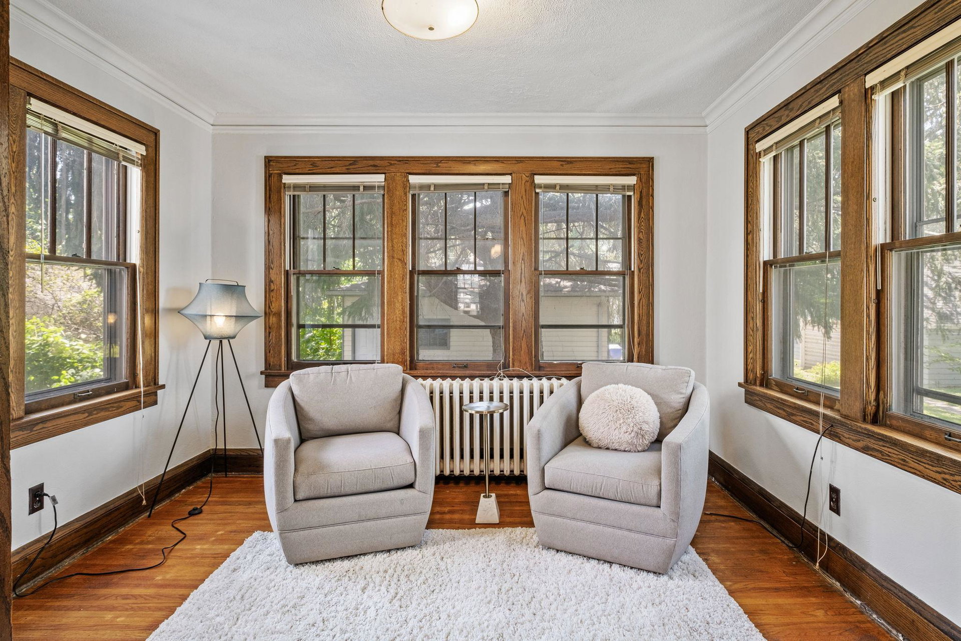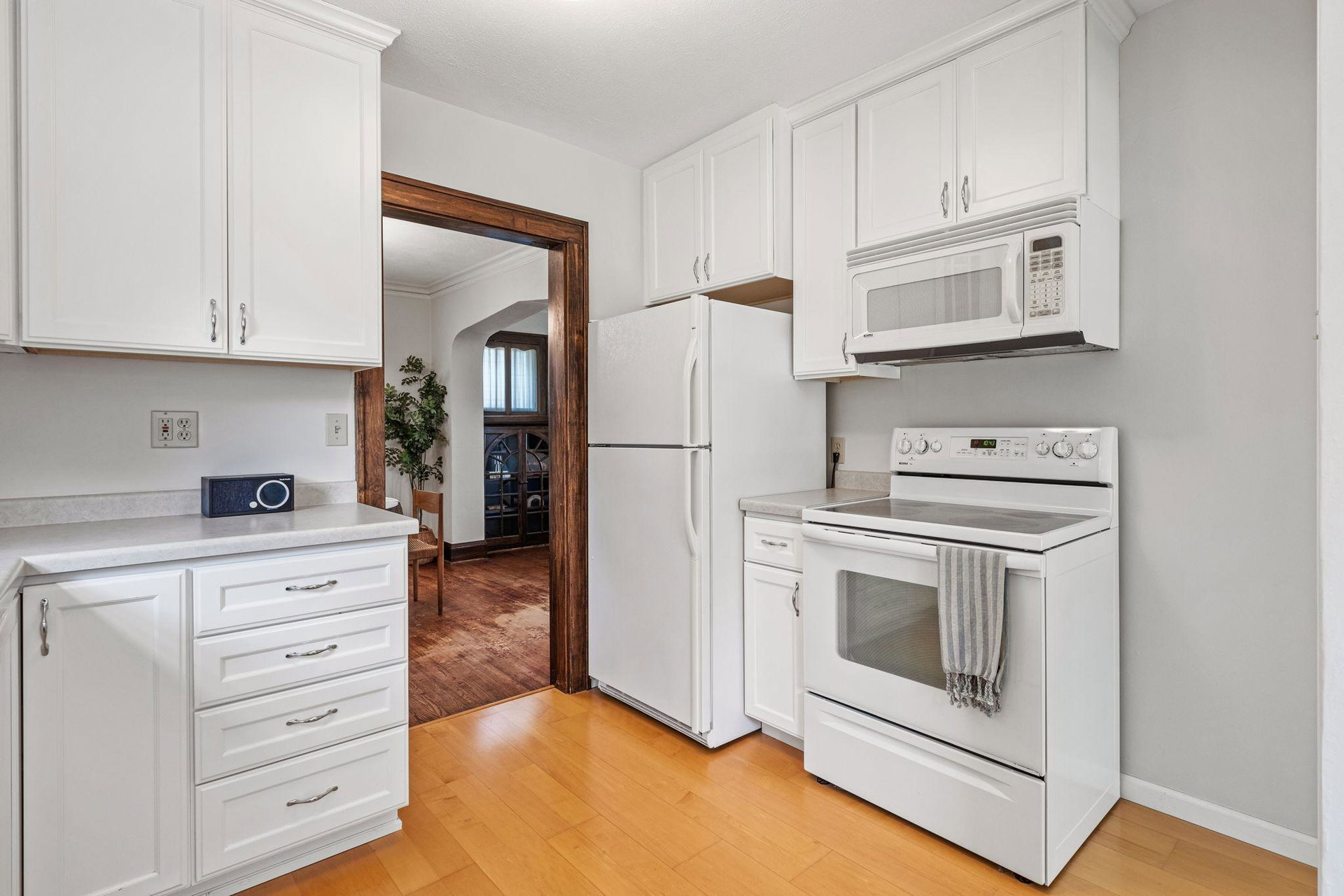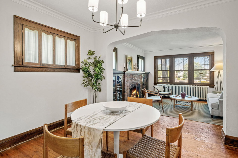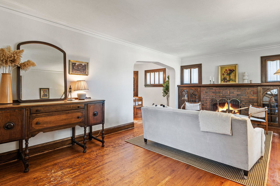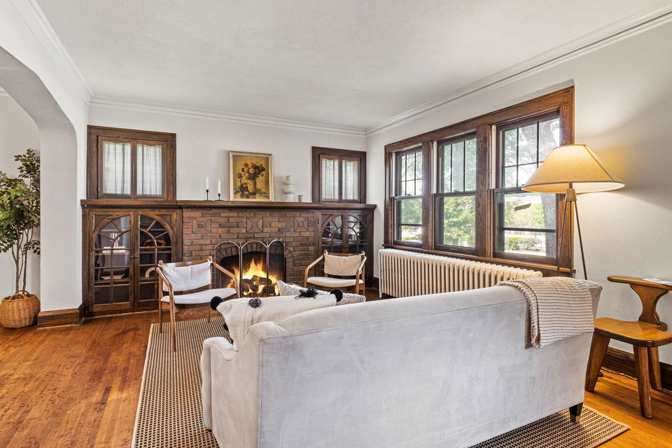 Available for the first time in decades, this Classic MacGroveland Two-Story is ready for its next stewards! Great flow and charming details throughout such as friendly front porch, hardwood floors, arched openings, cozy brick fireplace, original built-ins and charming natural woodwork. The main level boasts an updated convenient kitchen with cheery breakfast nook, inviting sunroom and spacious dining room opening up to an open and inviting living room. All three bedrooms and full bathroom are on the upper level. Full basement with opportunity to expand finished space. All of this is situated on a nicely sized lot with beautiful tree coverage. Close to schools, restaurants, and parks, and more. Come check it out today!