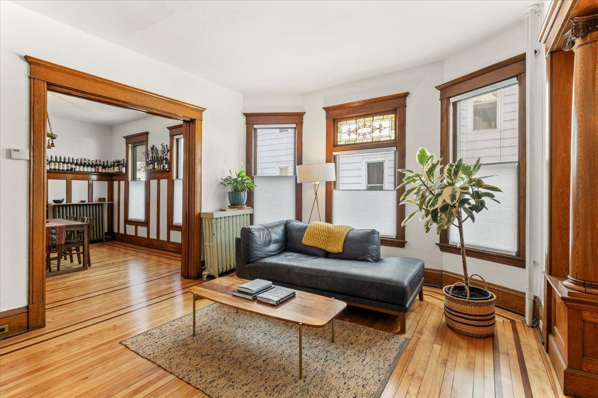Interiors are generous and light-filled, showcasing original inlaid hardwood floors, six-panel pocket doors, stained glass windows, and rich woodwork. Big bright renovated kitchens and bathrooms, along with a smart, livable layout make each space feel both functional and inspiring.