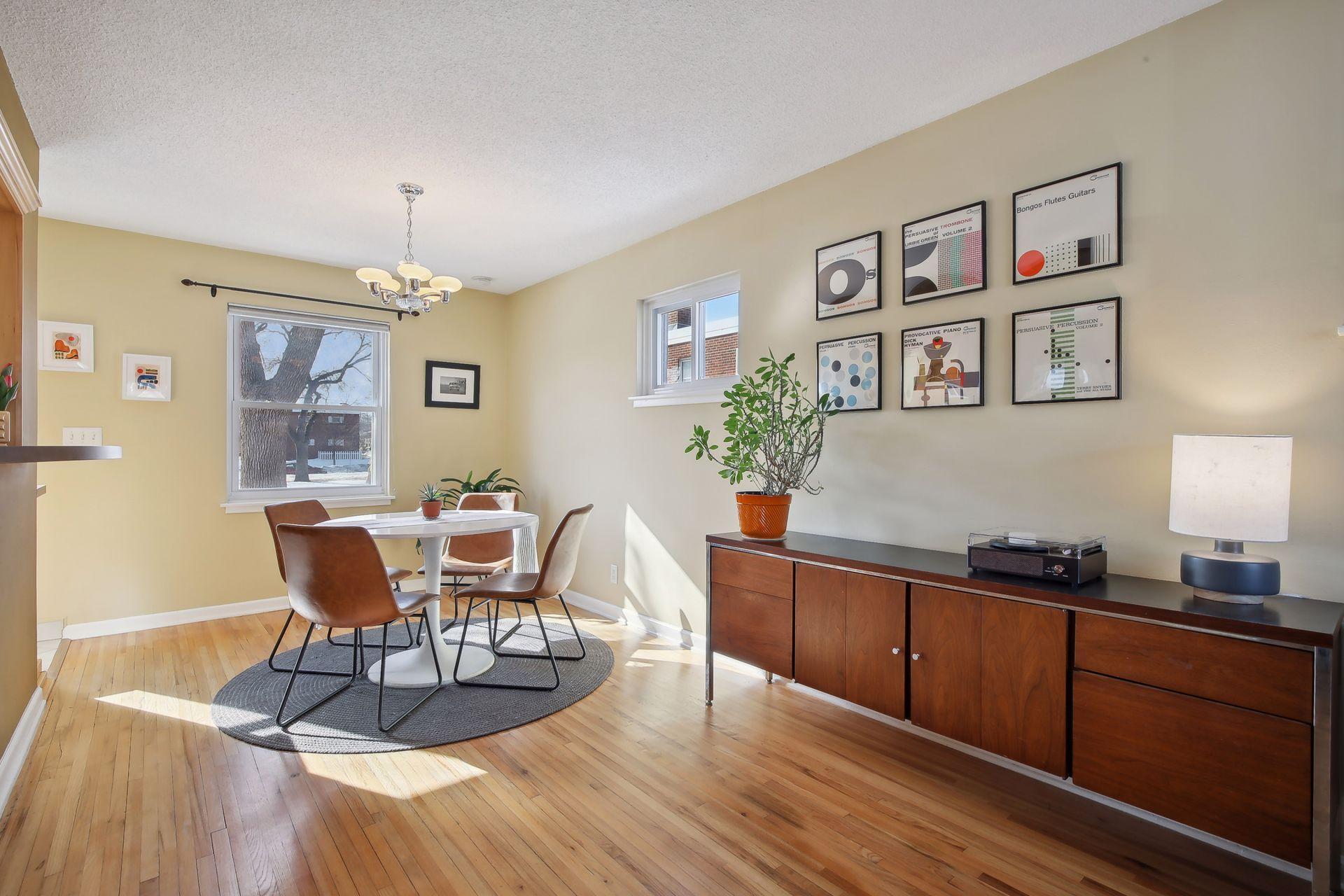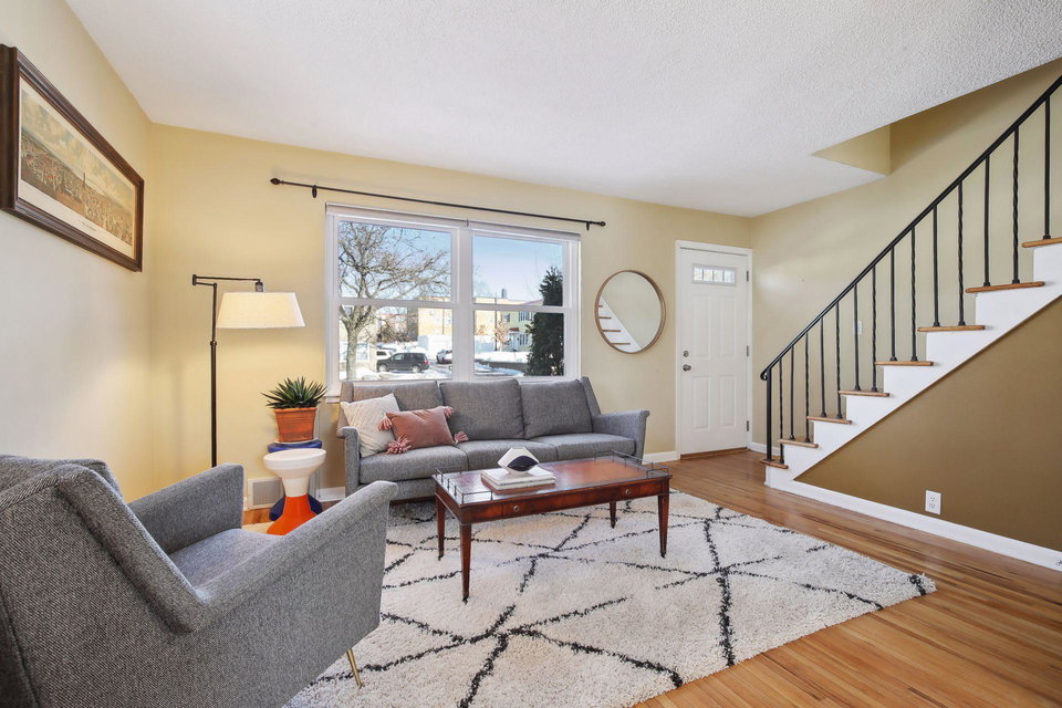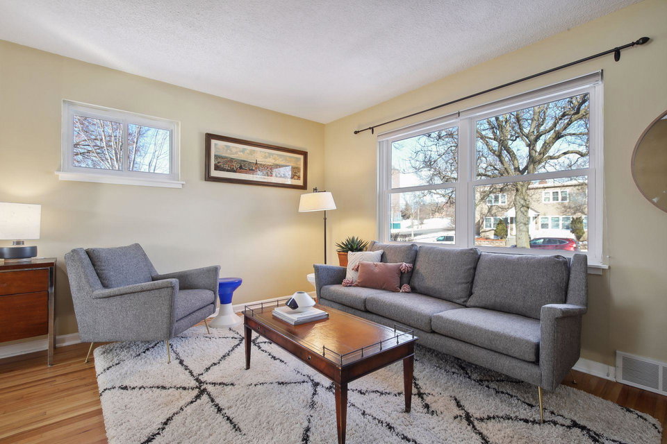 Adorable, charming townhouse in the heart of Highland Park! Walk to shops, parks, and restaurants from this incredible location, which is just steps from the river and its biking/running/walking paths. Great kitchen with wood cabinetry & updated appliances, dining area and large living room are on the main floor. Primary bedroom, second bedroom, and updated-made-to-look-vintage bathroom complete the upper level. Beautiful hardwood floors throughout. Spacious semi-finished bonus room and clean laundry/utility room make up the lower level. Wonderfully maintained end unit flooded with light from 3 exposures. Separate 1 car garage, back patio for outdoor entertaining. Centrally located between downtown Minneapolis and St. Paul, this townhouse is not to be missed!