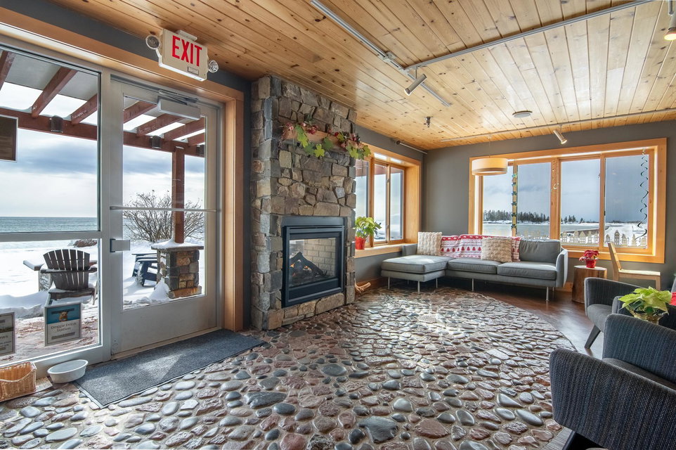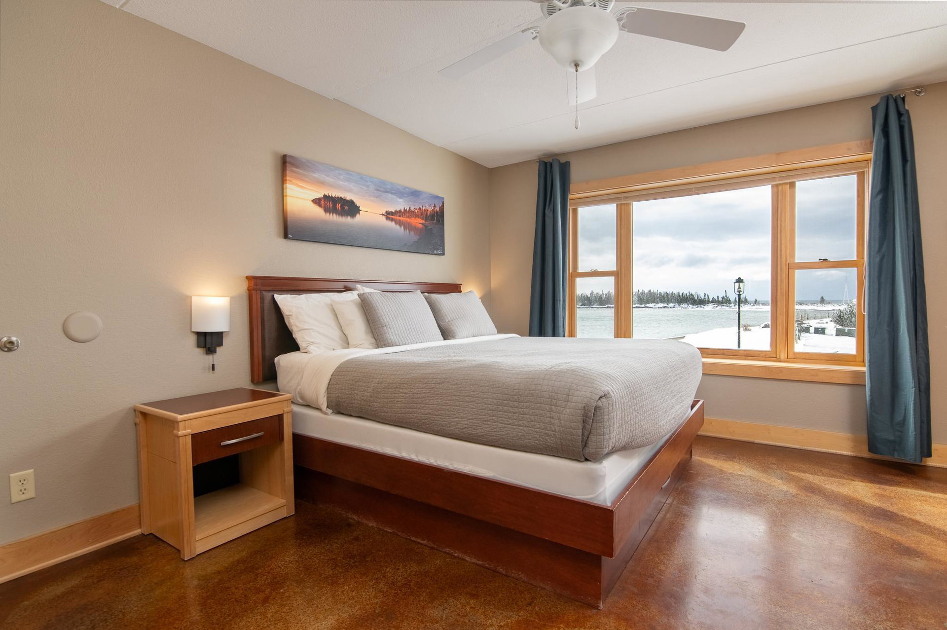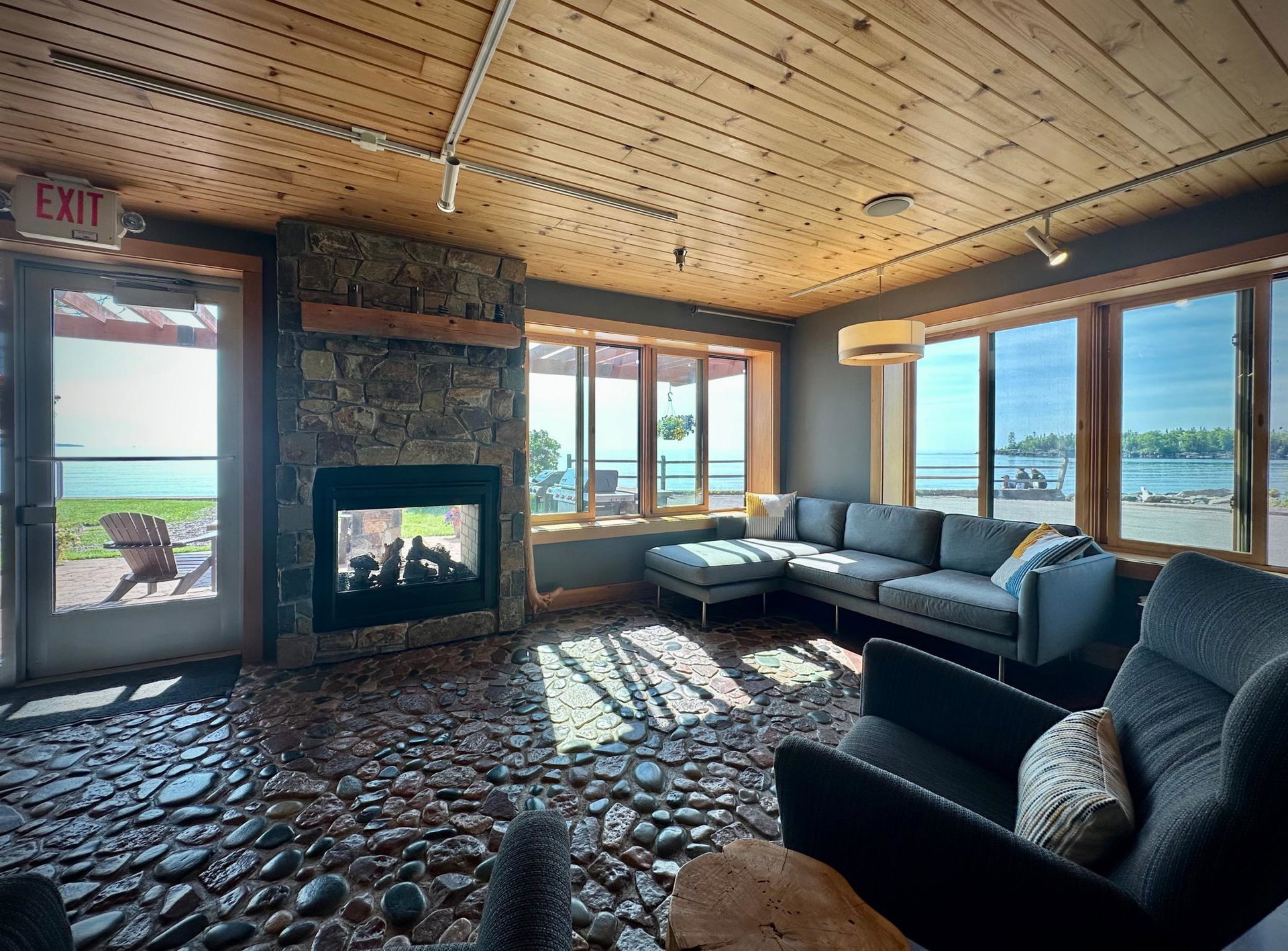 Located on the shore of the world’s largest freshwater lake, across the street from the world’s best donuts, in the world’s greatest small town, Grand Marais, this vacation getaway is truly one-of-a-kind! East Bay Suites offers resort-style amenities and care, ensuring your stays are completely hassle-free. When you’re not using it, the property generates rental income through Odyssey Resorts, who manage everything for you. This highly sought-after corner unit provides stunning views of the lake, the picturesque “Artist’s Point” park, and all of Downtown Grand Marais—from sunrise to sunset. Just steps from the rocky shoreline and a short walk to downtown’s top restaurants and shops, this location can’t be beat. The unit is beautifully decorated in contemporary, earthy tones, and is being sold fully furnished, ready for you to enjoy. Features include cozy, low-maintenance in-floor heating, concrete floors and countertops, and maple millwork and cabinetry throughout. A two-sided fireplace adds charm and warmth. The private primary suite is an absolute retreat, offering breathtaking views, its own fireplace, and access to a private bathroom and balcony. This is an exceptional opportunity you don’t want to miss!