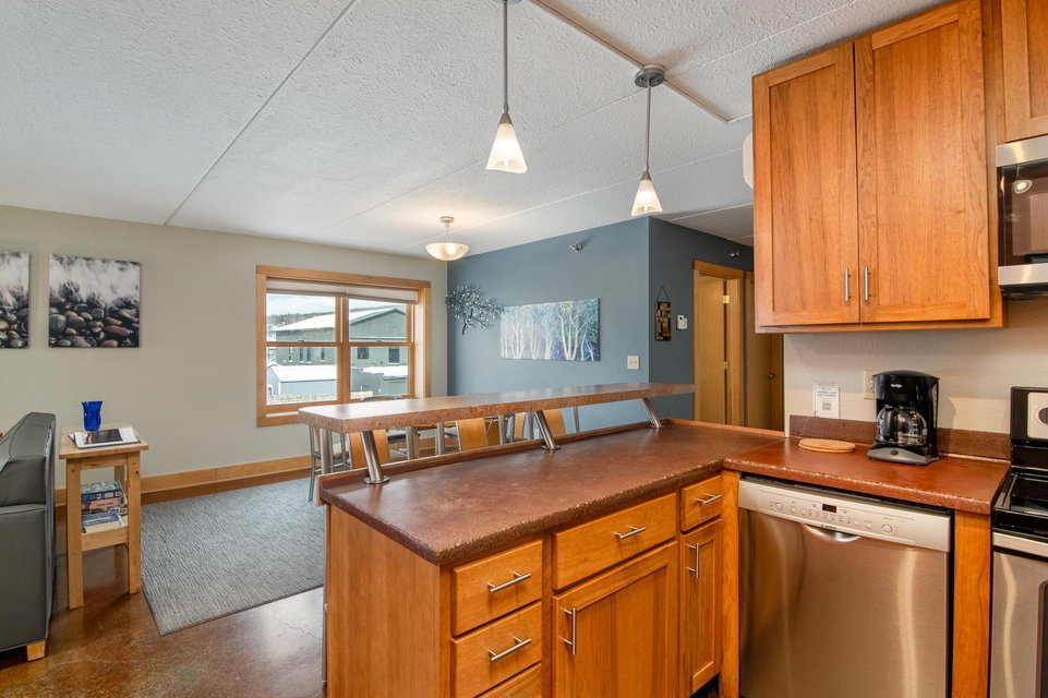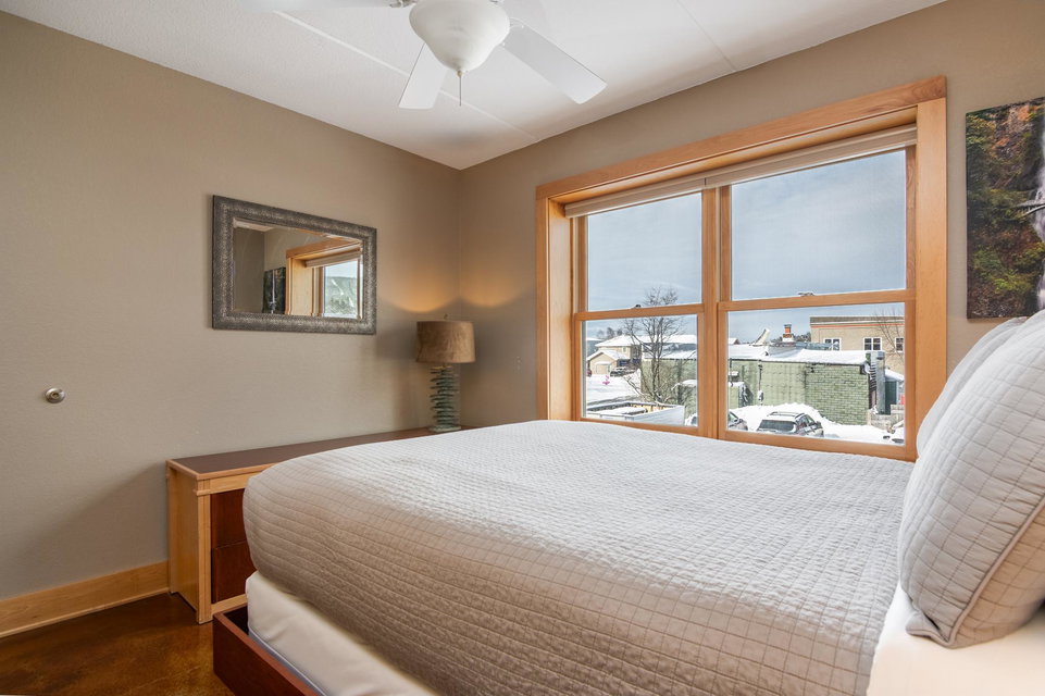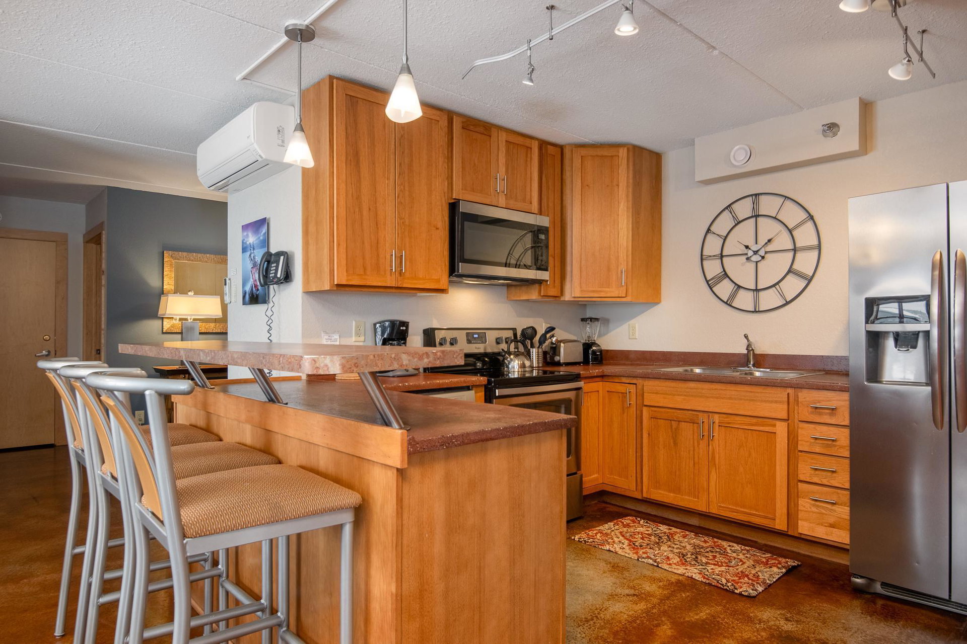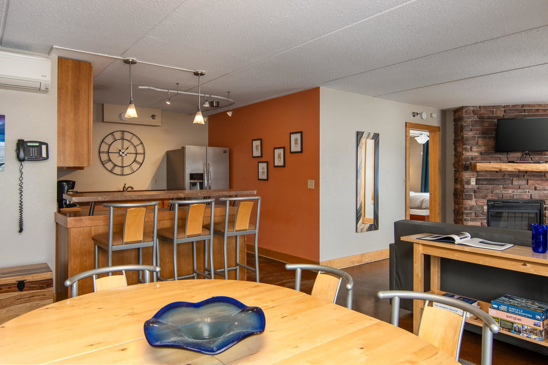 Located on the shore of the world’s largest freshwater lake, across the street from the world’s best donuts, in the world’s greatest small town, Grand Marais, this vacation getaway is truly one-of-a-kind! East Bay Suites offers resort-style amenities and care, ensuring your stays are completely hassle-free. When you’re not using it, the property generates rental income through Odyssey Resorts, who manage everything for you. This highly sought-after corner unit provides stunning views of the lake, the picturesque “Artist’s Point” park, and all of Downtown Grand Marais—from sunrise to sunset. Just steps from the rocky shoreline and a short walk to downtown’s top restaurants and shops, this location can’t be beat. The unit is beautifully decorated in contemporary, earthy tones, and is being sold fully furnished, ready for you to enjoy. Features include cozy, low-maintenance in-floor heating, concrete floors and countertops, and maple millwork and cabinetry throughout. A two-sided fireplace adds charm and warmth. The private primary suite is an absolute retreat, offering breathtaking views, its own fireplace, and access to a private bathroom and balcony. This is an exceptional opportunity you don’t want to miss!