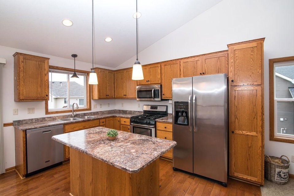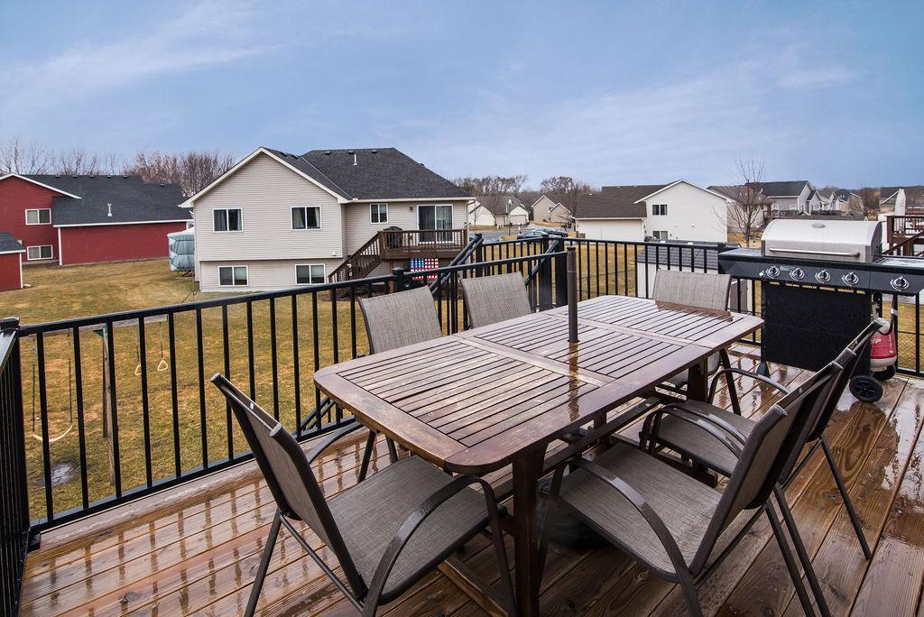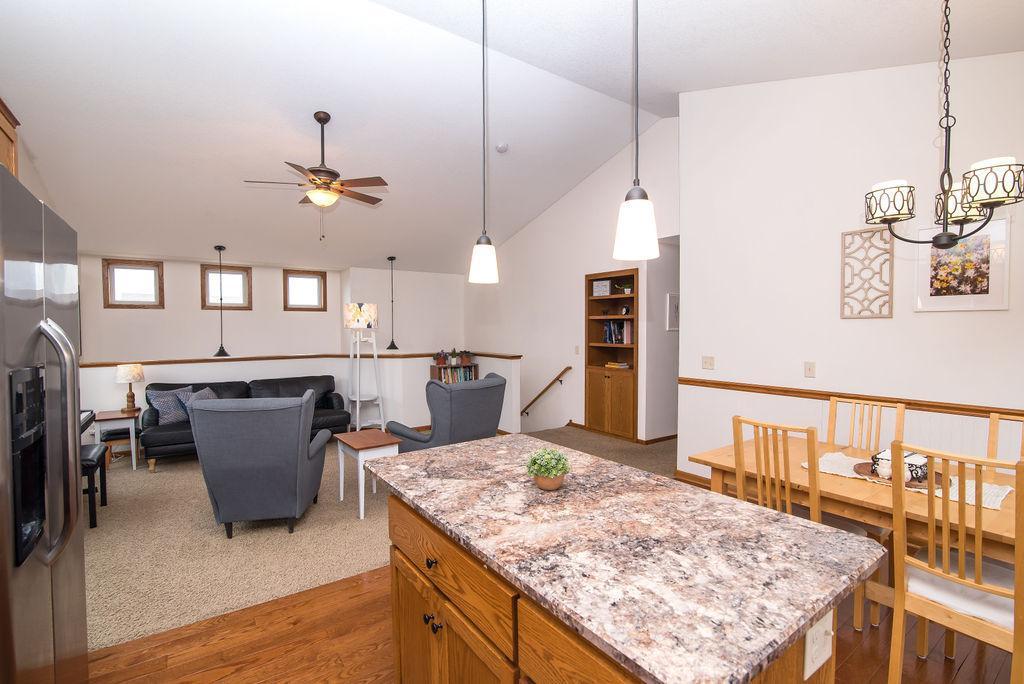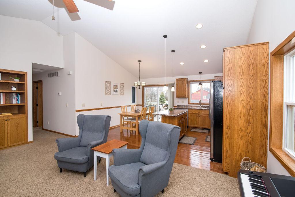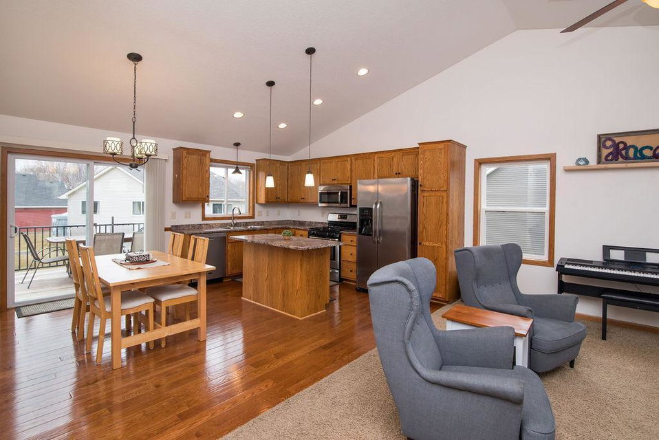 This beautiful 5BD 3BTH home located in a lovely neighborhood has an open floor plan and vaulted ceilings in living room, dining, kitchen. 3 bedrooms and full bath on main floor. Main floor primary bedroom has walk-in closet and private 3/4 bath. Huge family room, 2 more bedrooms and another 3/4 bath in lower level. Large utility room in lower level. New furnace in 2021. Beautiful new deck in 2020. SS kitchen appliances. AND large 3 car garage. Don’t miss out on this one!