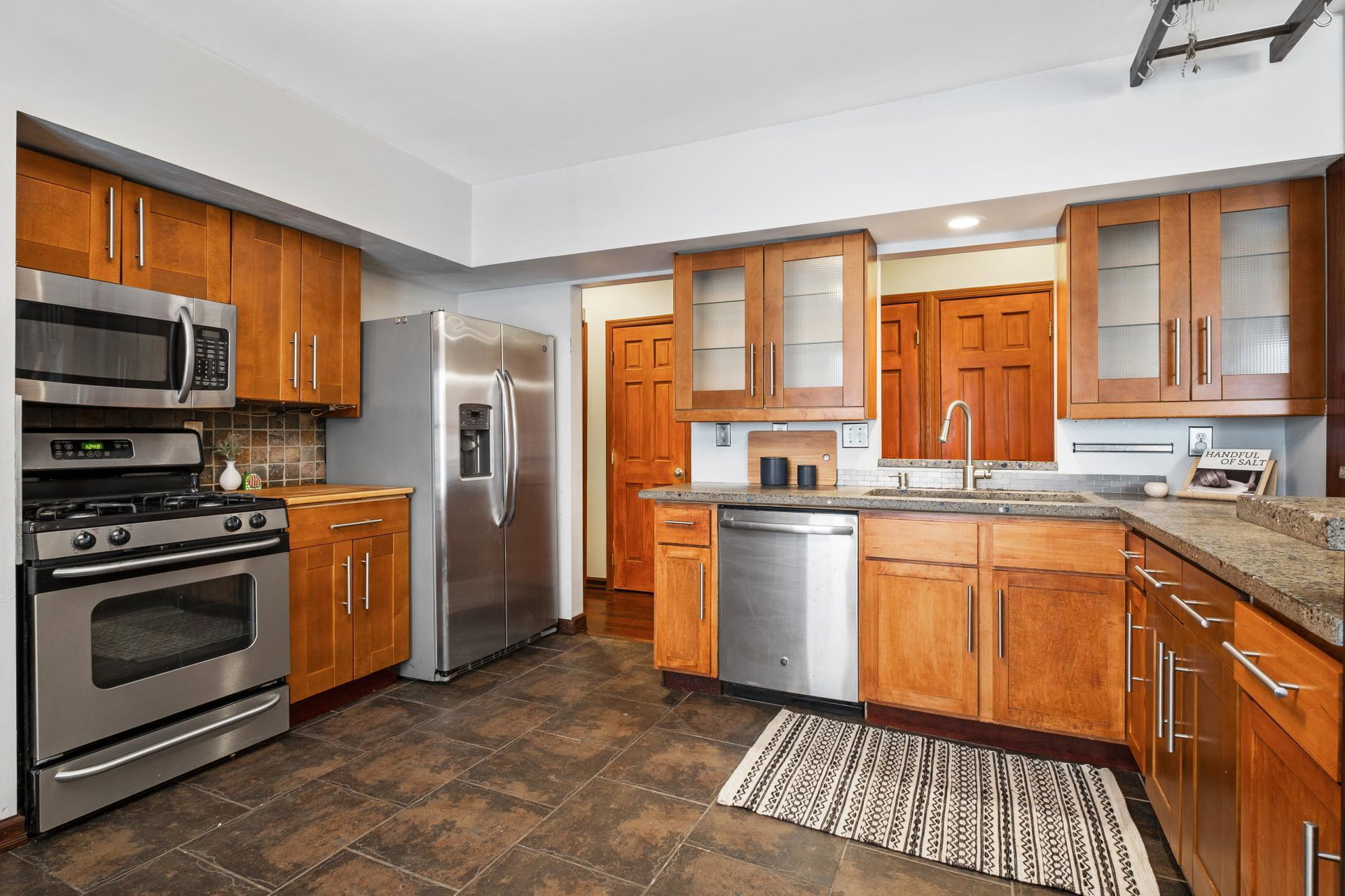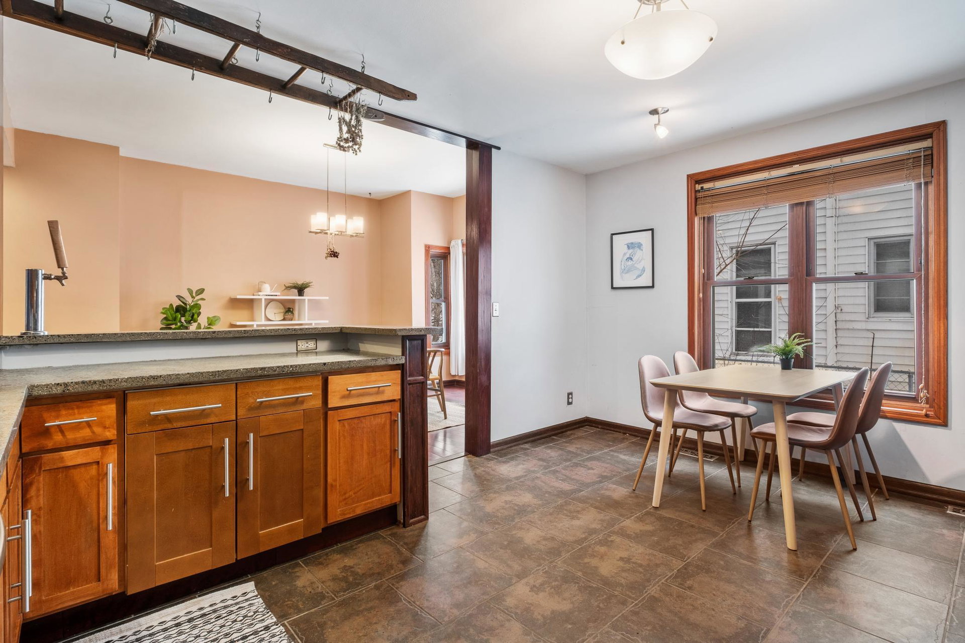 Spacious and Bright! – You will love this updated historic home; large kitchen and dining room with open floor plan, polished concrete counters, stainless steel appliances and warm cherry wood floors throughout. There are three spacious bedrooms upstairs with large closets and and an updated bathroom with a double vanity. The two bedrooms on the main level offer ample flex space for your home office or studio. Gorgeous perennials decorate the yard and several raised garden beds with healthy rich soil offer abundant opportunity for gardeners. Located in the heart of Phillips with easy access to public transit, restaurants, coffee shops, bars and cafe’s. Check it out today!