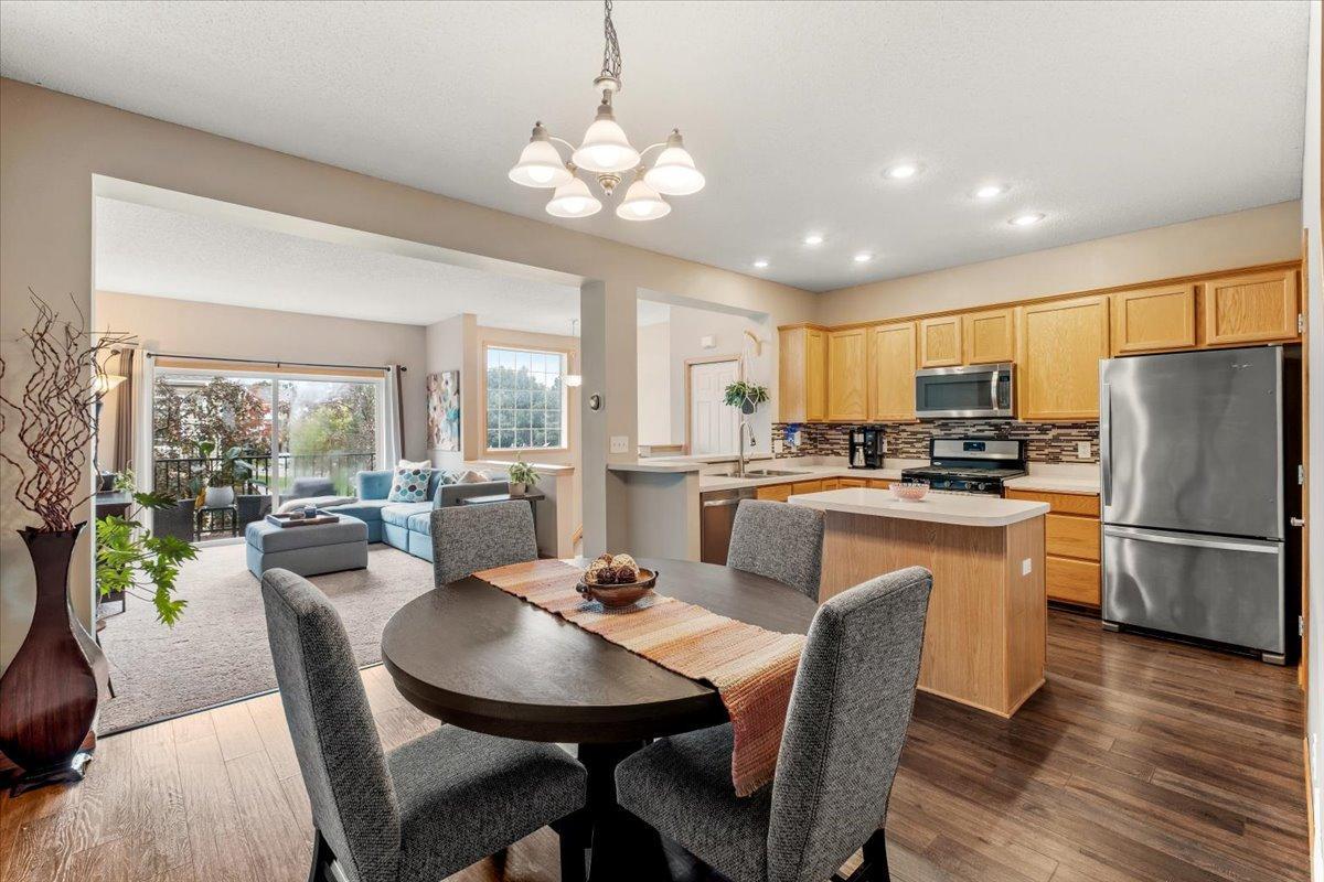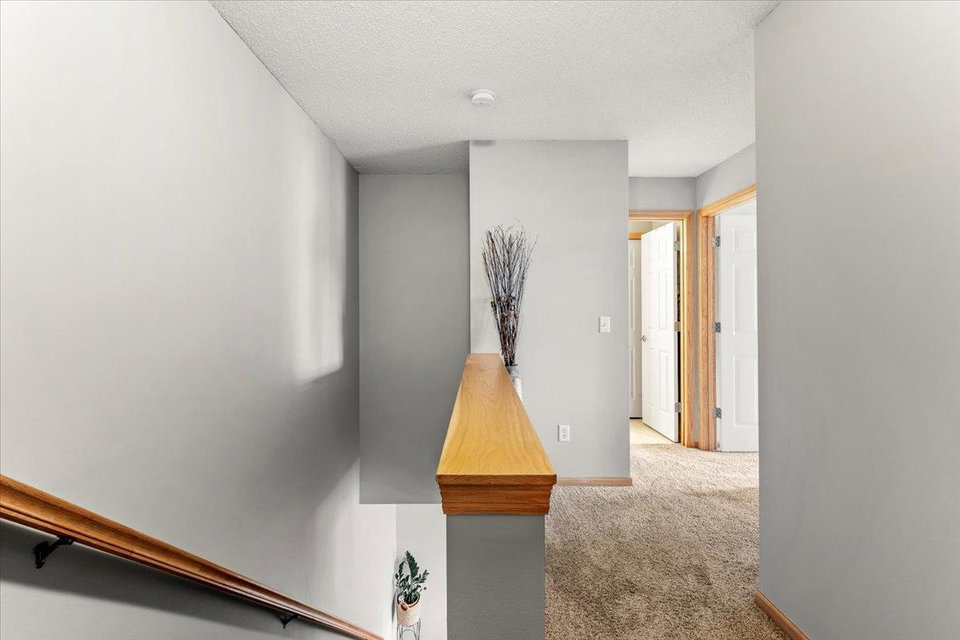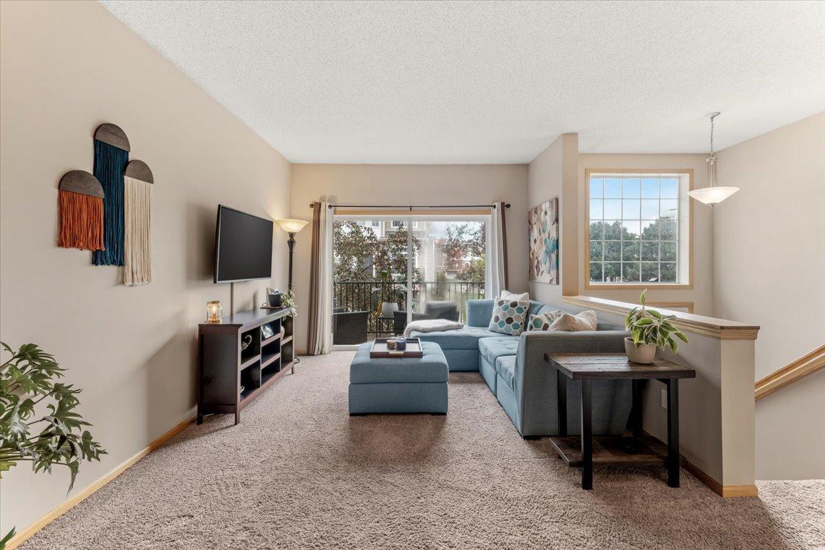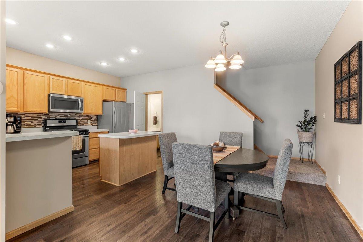 Nestled in a quiet neighborhood adjacent to the Eagle Valley Golf Course, this townhome offers so many wonderful features. Boasting high ceilings, stainless steel appliances, and an abundance of natural light, it is located just one unit in from the end unit on a quiet cul-de-sac. Ascend the front steps and enter into the lofty sun-drenched foyer. The spacious living room, dining room and updated kitchen, which is anchored around a center island, seamlessly flow into one another, offering great space for entertaining and comfortable day-to-day living. The deck off of the living room is perfect for enjoying sunny days, and is reminiscent of being in a treehouse. A tucked-away powder room completes this level. Upstairs you will discover two large bedrooms, one that combines an area for an office or cozy reading area, and a primary bedroom with a walk-in closet. The full bathroom with a new countertop and linen closet completes the upper level. The lower level features a large laundry/utility room, under-stair storage, and access to the two-car tandem garage. This is such a fantastic, central location, with easy access to major highways and roads. Enjoy close proximity to parks, restaurants, and shopping. Just 5 minutes to the newly renovated Woodbury Central Park. Don’t miss this beautifully updated townhome!
