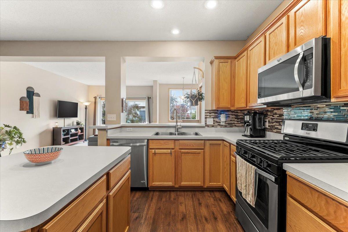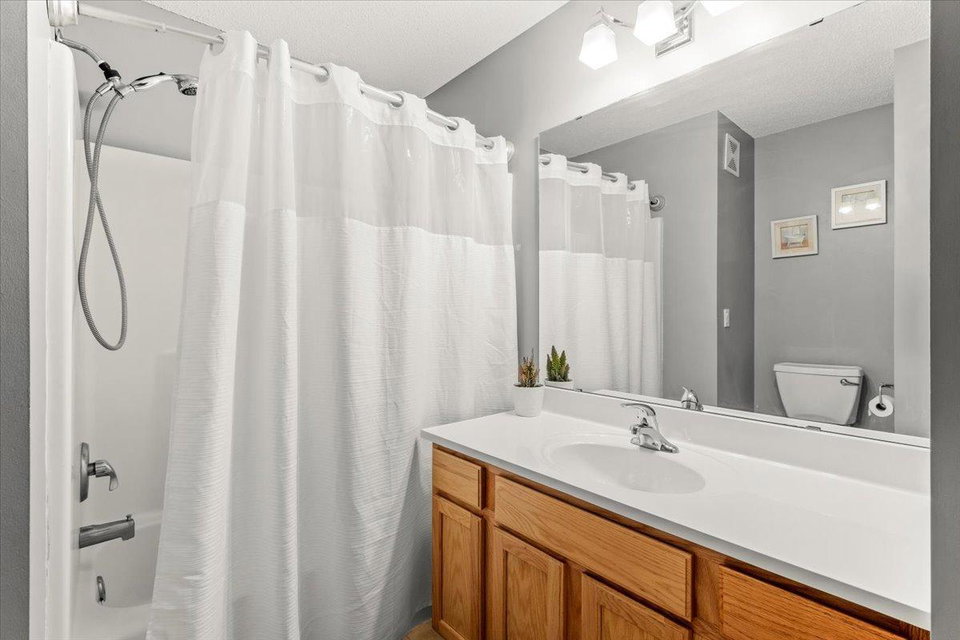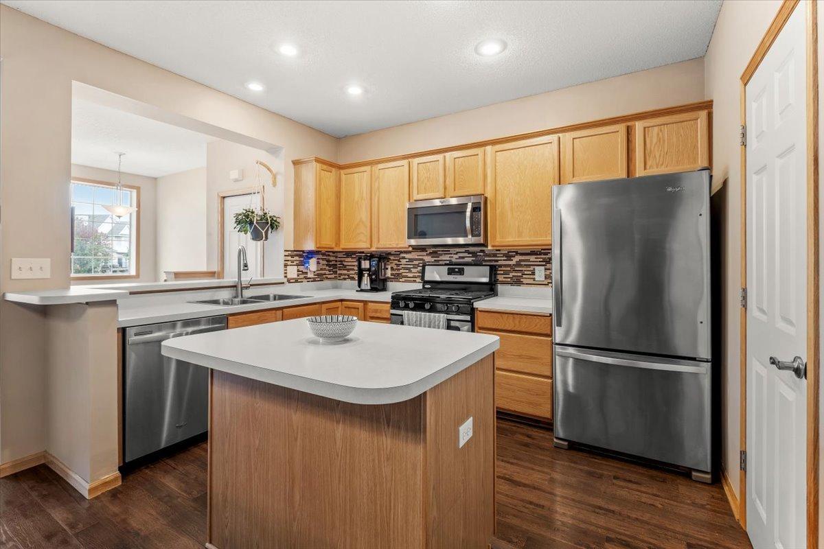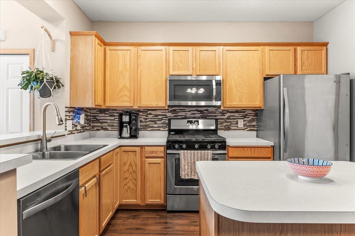 Nestled in a quiet neighborhood adjacent to the Eagle Valley Golf Course, this townhome offers so many wonderful features. Boasting high ceilings, stainless steel appliances, and an abundance of natural light, it is located just one unit in from the end unit on a quiet cul-de-sac. Ascend the front steps and enter into the lofty sun-drenched foyer. The spacious living room, dining room and updated kitchen, which is anchored around a center island, seamlessly flow into one another, offering great space for entertaining and comfortable day-to-day living. The deck off of the living room is perfect for enjoying sunny days, and is reminiscent of being in a treehouse. A tucked-away powder room completes this level. Upstairs you will discover two large bedrooms, one that combines an area for an office or cozy reading area, and a primary bedroom with a walk-in closet. The full bathroom with a new countertop and linen closet completes the upper level. The lower level features a large laundry/utility room, under-stair storage, and access to the two-car tandem garage. This is such a fantastic, central location, with easy access to major highways and roads. Enjoy close proximity to parks, restaurants, and shopping. Just 5 minutes to the newly renovated Woodbury Central Park. Don’t miss this beautifully updated townhome!