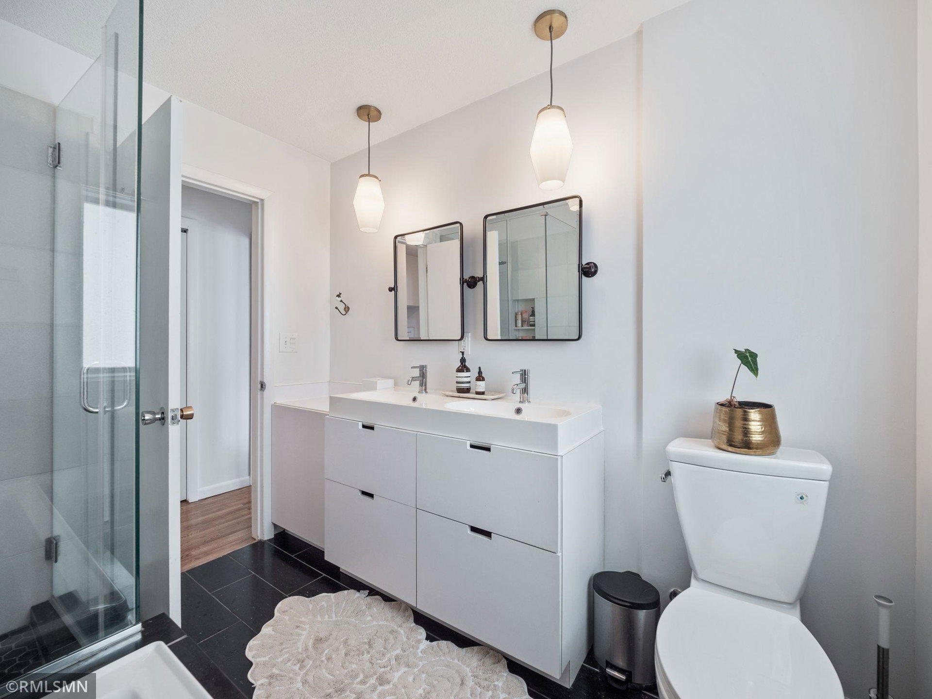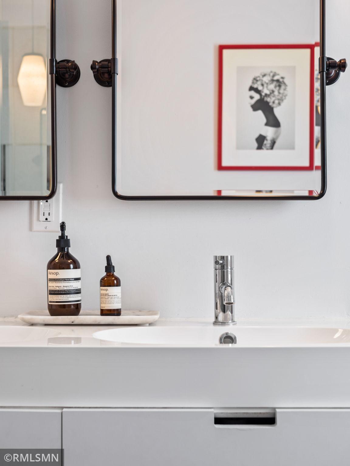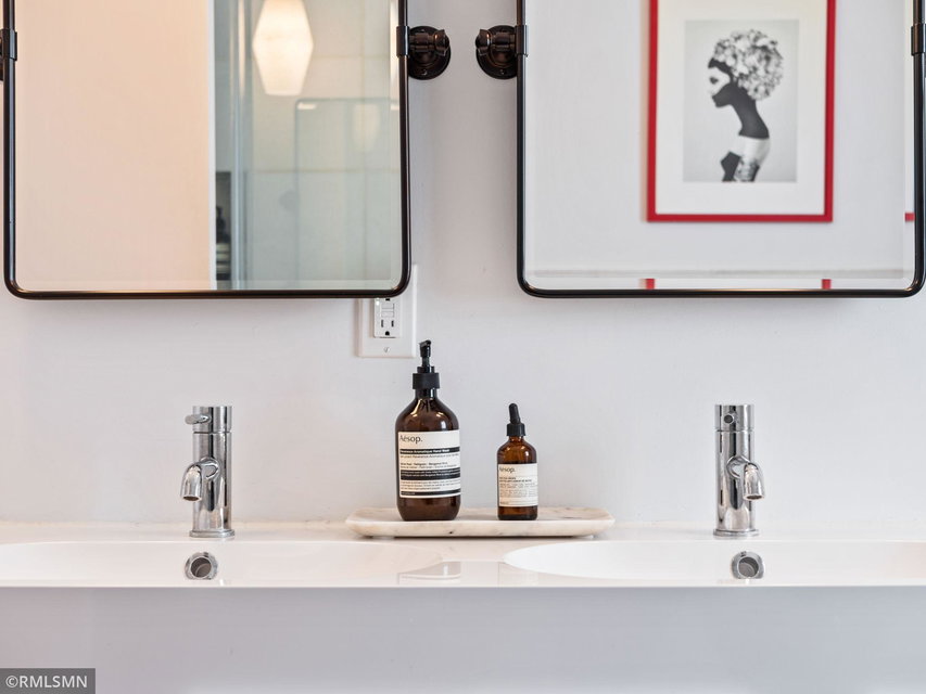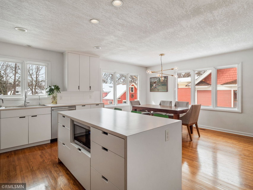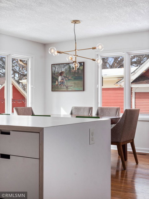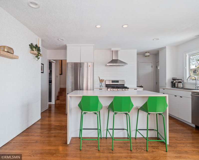 Spectacular Mid-Century 4 Level Split in Saint Anthony Park!!! This spacious and light filled home has been thoughtfully updated and includes many modern designer features. The open floor plan kitchen is an Entertainer’s Dream with sleek custom cabinets, center island with seating, stainless steel appliances and water filtration system. The luxurious remodeled main bathroom has double sinks, black marble tile, deep soaking tub and separate walk-In shower. The living room and lower level family room are large and each have a wood burning fireplace. Additional features include; Handsome All Brick Exterior, Custom Fully Fenced Yard, Large Stylish Deck, Attached Garage, New HW Floors, New Carpet, Radon Mitigation System, Drain Tile w Sump Pump, close to Shops/Parks… Hurry to this one!