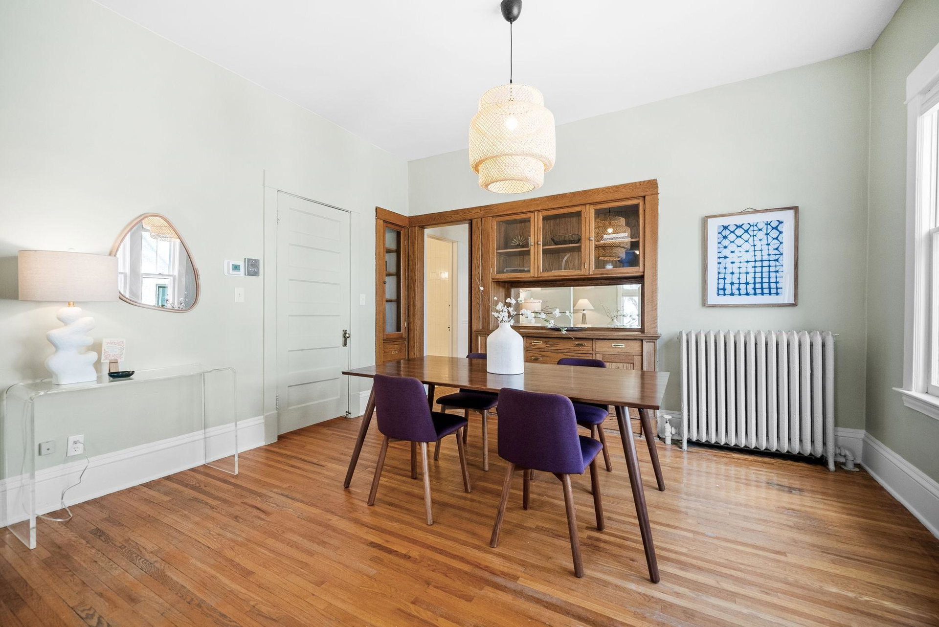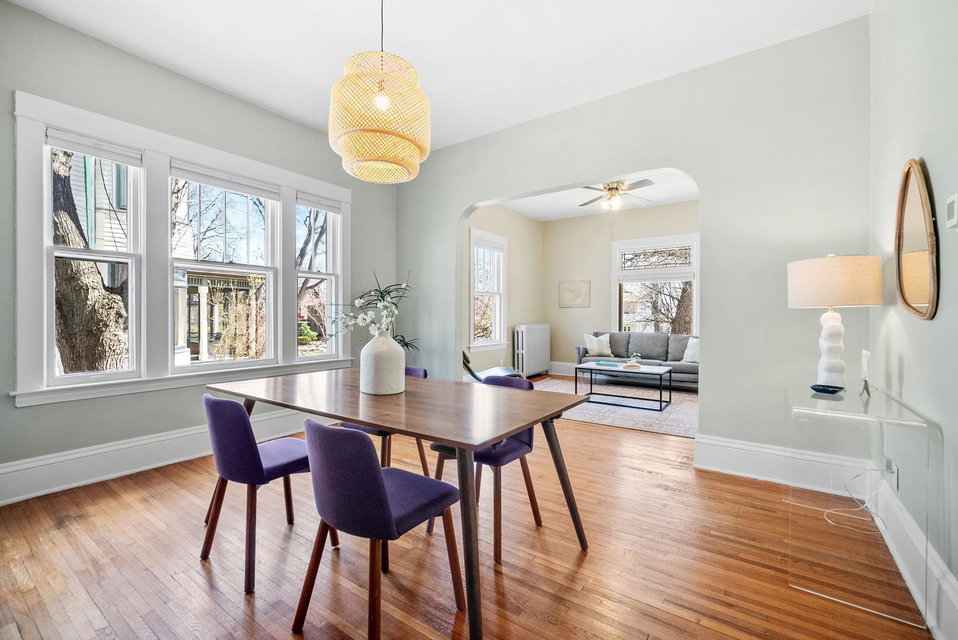Nestled in a stately neoclassical building, this beautifully appointed 2 bedroom, 1 bathroom main floor condo blends historic elegance with everyday comfort. Tall ceilings, original architectural details, fresh paint throughout and a recently renovated bathroom exude character and warmth. Natural light pours in through oversized windows, highlighting the hardwood floors and thoughtful layout. Outside your south facing living room is a just-about-to-bloom Japanese lilac tree. Enjoy your own front porch overlooking the winding and tree lined street and architectural delights of the historic Kenwood neighborhood. The shared deck in the backyard is surrounded by lovingly maintained perennials featuring peonies, day lilies, ornamental lilies and hostas. The yard also includes a space for a shared vegetable garden. The unit includes a private 1 car garage and storage space in the lower level. You’ll be perfectly positioned between Lake of the Isles and Cedar Lake—offering the ultimate urban-lakeside lifestyle. Enjoy the best of both worlds: a peaceful setting with easy access to trails, cafes, Uptown, and downtown Minneapolis. With only four units in the building, you’ll appreciate the sense of community and privacy here!