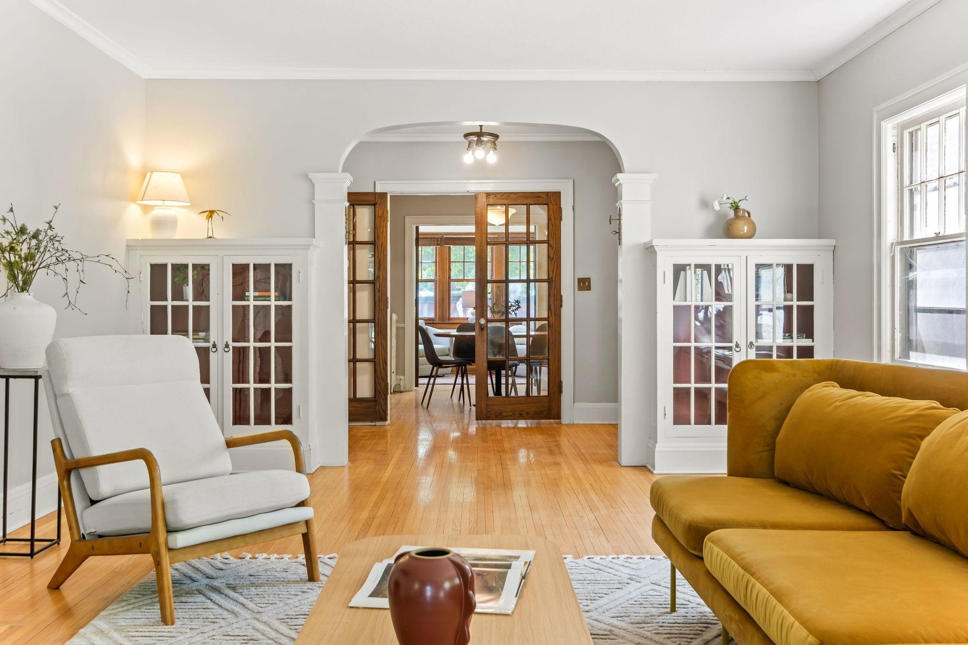 Welcome to this stunning and spacious 1926 Tudor, perfectly situated with Theodore Wirth Parkway’s lush green space right outside your front door. The expansive main level offers an abundance of character and functionality, beginning with a gracious foyer that leads into a formal living room anchored by a classic wood-burning fireplace. A formal dining room provides an elegant setting for entertaining, while the adjacent den/office offers a peaceful workspace. The kitchen features newer stainless steel appliances and ample storage. Just off the attached garage entry, a conveniently located half bath adds to the main level’s practicality. Upstairs, you’ll find four generously sized bedrooms and a full bathroom. The lower level impresses with tall ceilings and a large family room centered around a second wood-burning fireplace—perfect for gatherings. Step through the French doors off the living room to enjoy the inviting screen porch and a breathtaking outdoor patio. A custom banas lavender sandstone patio, added just last year, is framed by a thoughtfully curated landscape of birch, serviceberry, quaking aspen, dogwood shrubs, black-eyed susans, hydrangeas, purple flame grass, and walker’s Low nepeta. Come see this opportunity to own a classic home in a premier location!!