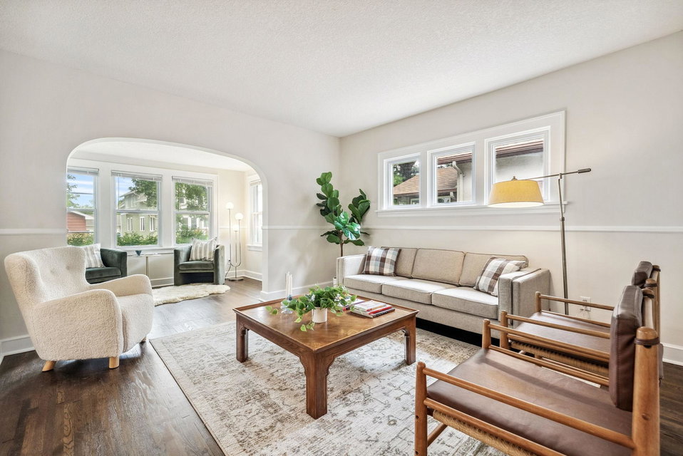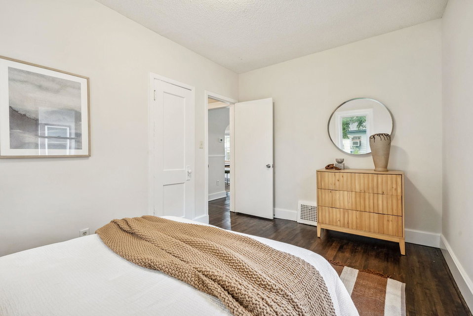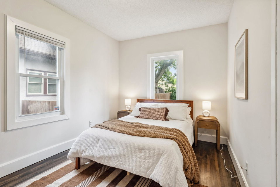 Classic Craftsman located in the Marshall Terrace neighborhood of NE Minneapolis – This light and bright 1.5 story home has many features you will love! Walk through the front porch into an open and spacious living room with beautiful HW floors, original woodwork and spacious dining room. There is a large bedroom and full bathroom on the main floor. The kitchen boasts handsome shaker cabinets, quartz counter tops and SS appliances. The upstairs contains two bedrooms an and a full bathroom. There is plenty of room to expand in the open and clean unfinished basement. Tucked away in this quiet and secluded NE Minneapolis neighborhood you will love convenient access to many breweries, trails and the Mississippi River. Come check this one out today!