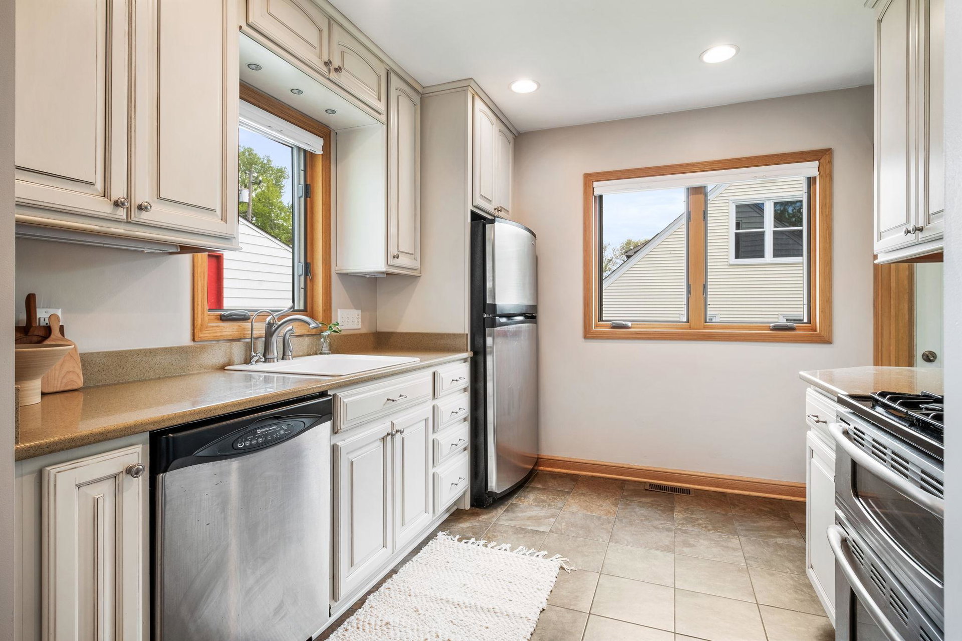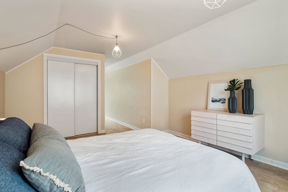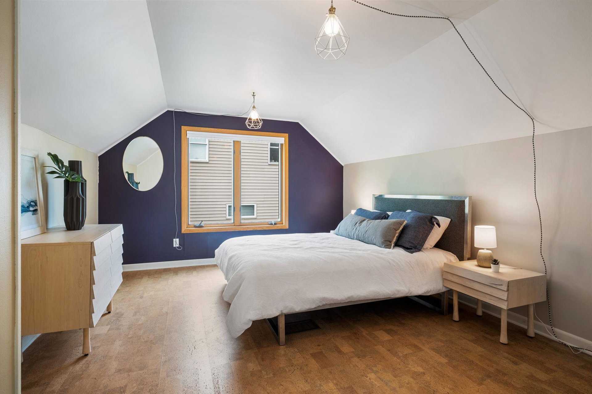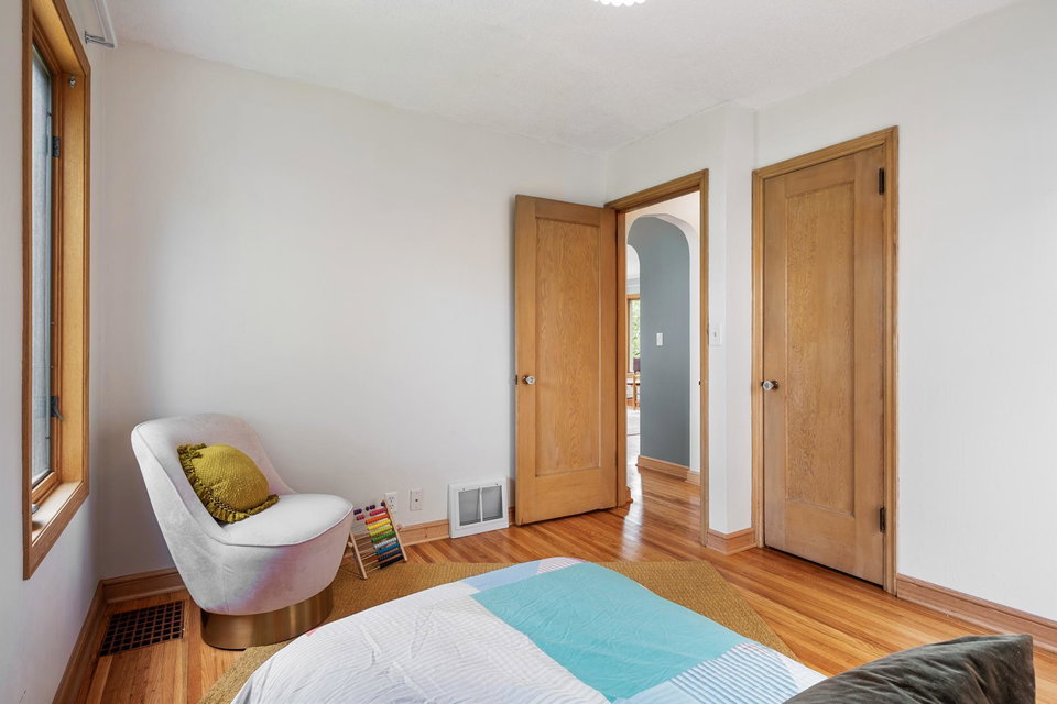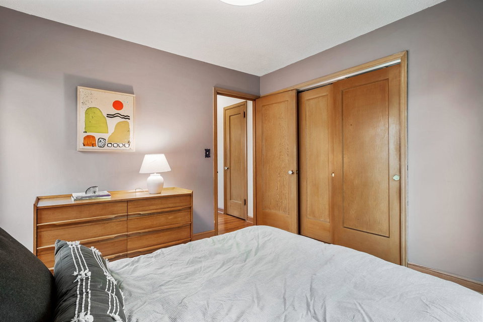This beautiful 1950’s home has been lovingly updated and is ready for its new stewards! This 4 bed, 2 bathroom homes lives really well! The main level is airy and bright with refinished oak flooring, 2 spacious bedrooms, completely renovated full bath, efficient kitchen with stainless steel appliances and corian solid-surface countertops and a welcoming dining room with patio doors to the beautiful and sunny backyard. The half-story has tall ceilings with cork flooring and is currently being used as the primary bedroom. The lower level has been updated and finished with the 4th bedroom, full bath, and large family room or bonus space with brand new washer and dryer. Conveniently located near shops, restaurants, parks and more. Come check it out!