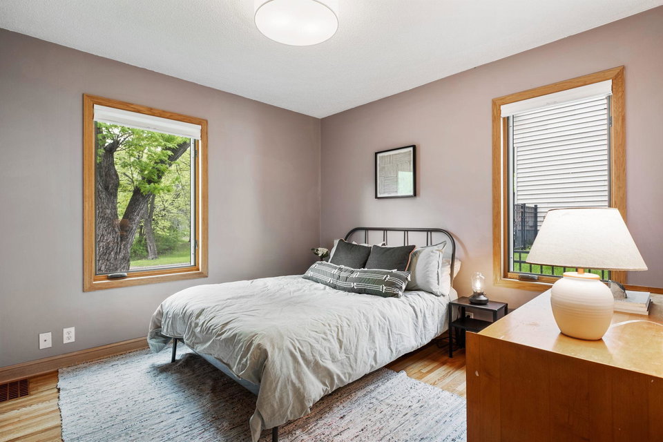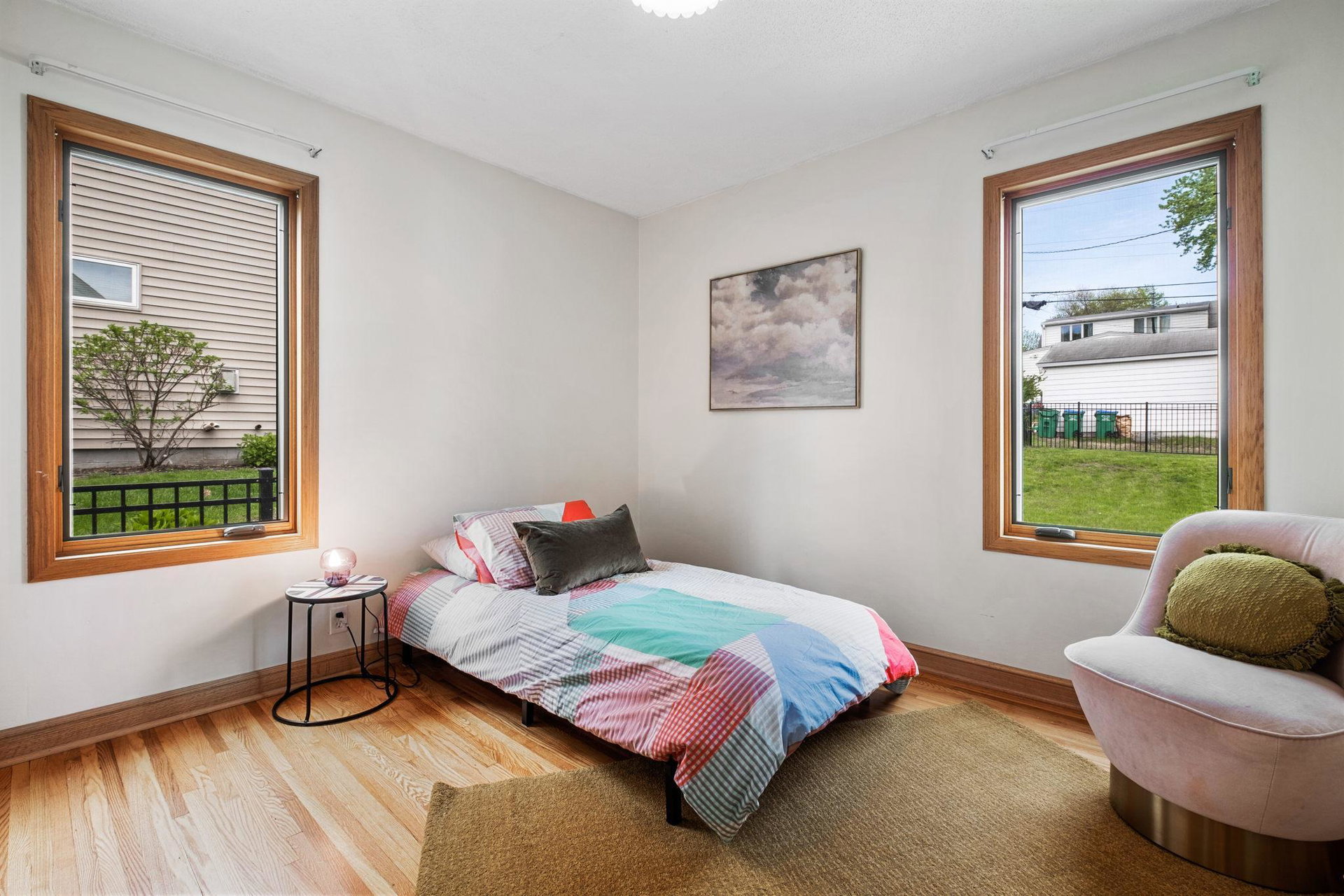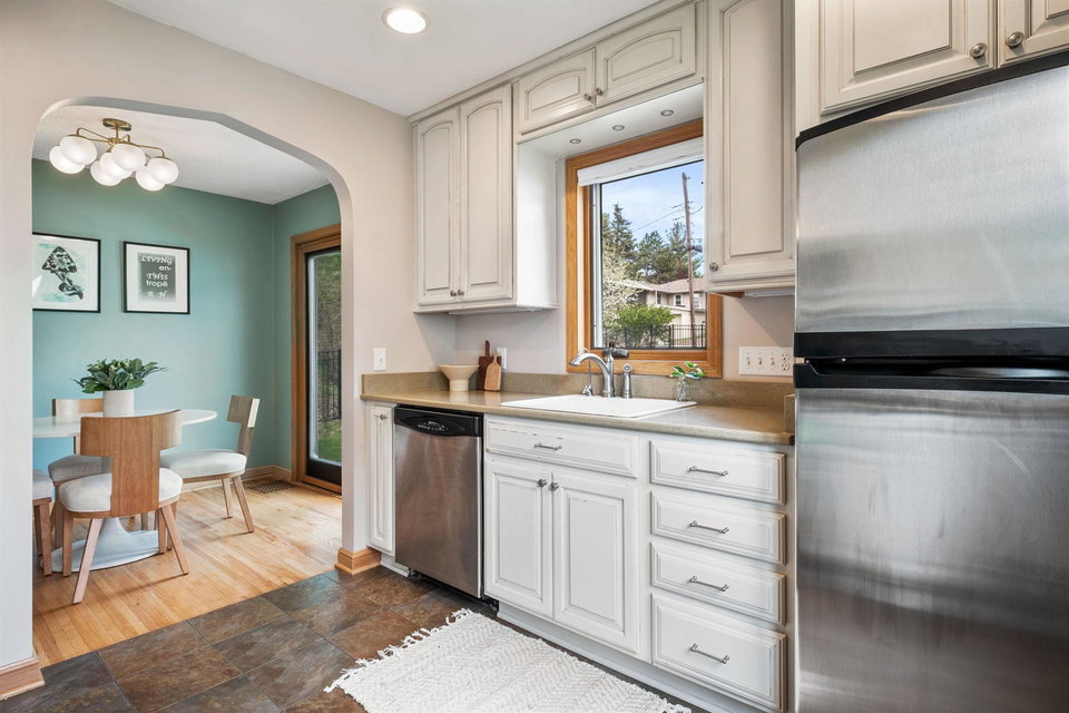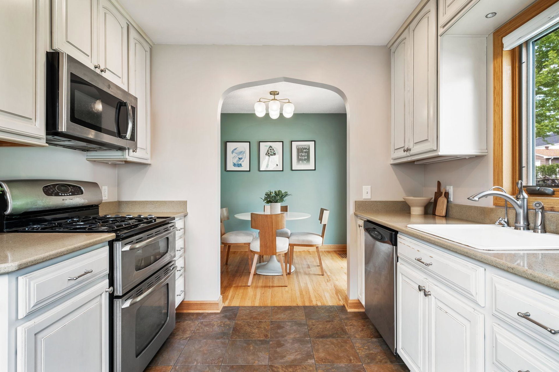 This beautiful 1950’s home has been lovingly updated and is ready for its new stewards! This 4 bed, 2 bathroom homes lives really well! The main level is airy and bright with refinished oak flooring, 2 spacious bedrooms, completely renovated full bath, efficient kitchen with stainless steel appliances and corian solid-surface countertops and a welcoming dining room with patio doors to the beautiful and sunny backyard. The half-story has tall ceilings with cork flooring and is currently being used as the primary bedroom. The lower level has been updated and finished with the 4th bedroom, full bath, and large family room or bonus space with brand new washer and dryer. Conveniently located near shops, restaurants, parks and more. Come check it out!
