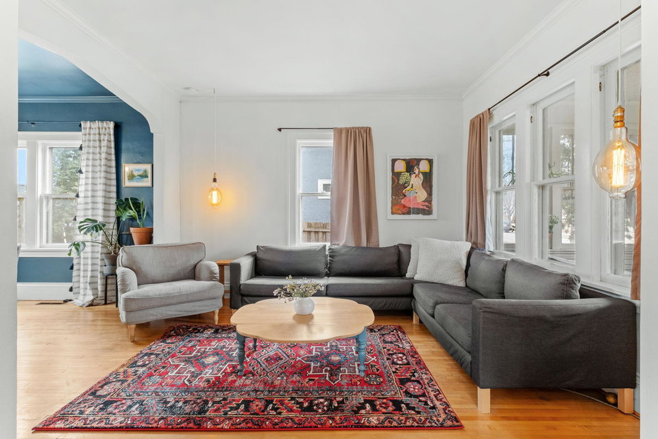 Offer Deadline is 5 PM Saturday 3/8. This charming 1916 Craftsman home is located in the highly sought-after Cooper neighborhood of Greater Longfellow, South Minneapolis. Filled with natural light, the home features a sunny living and dining room, perfect for both relaxing and entertaining. The modern farmhouse kitchen is a standout, offering butcher block countertops, stainless steel appliances, and an exposed brick chimney that adds character and warmth.