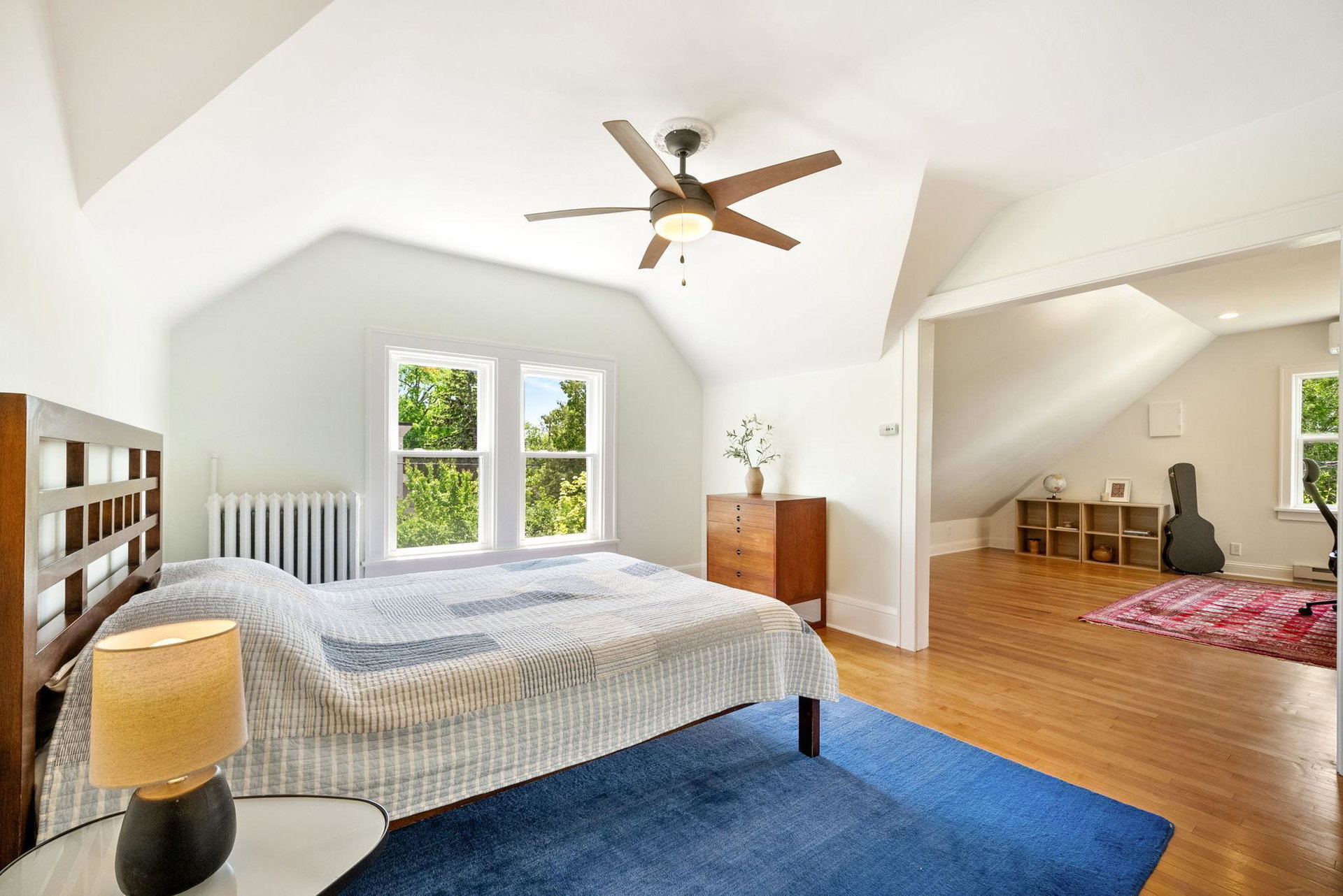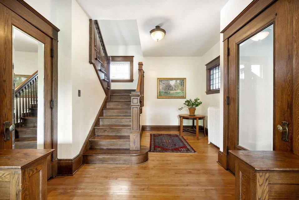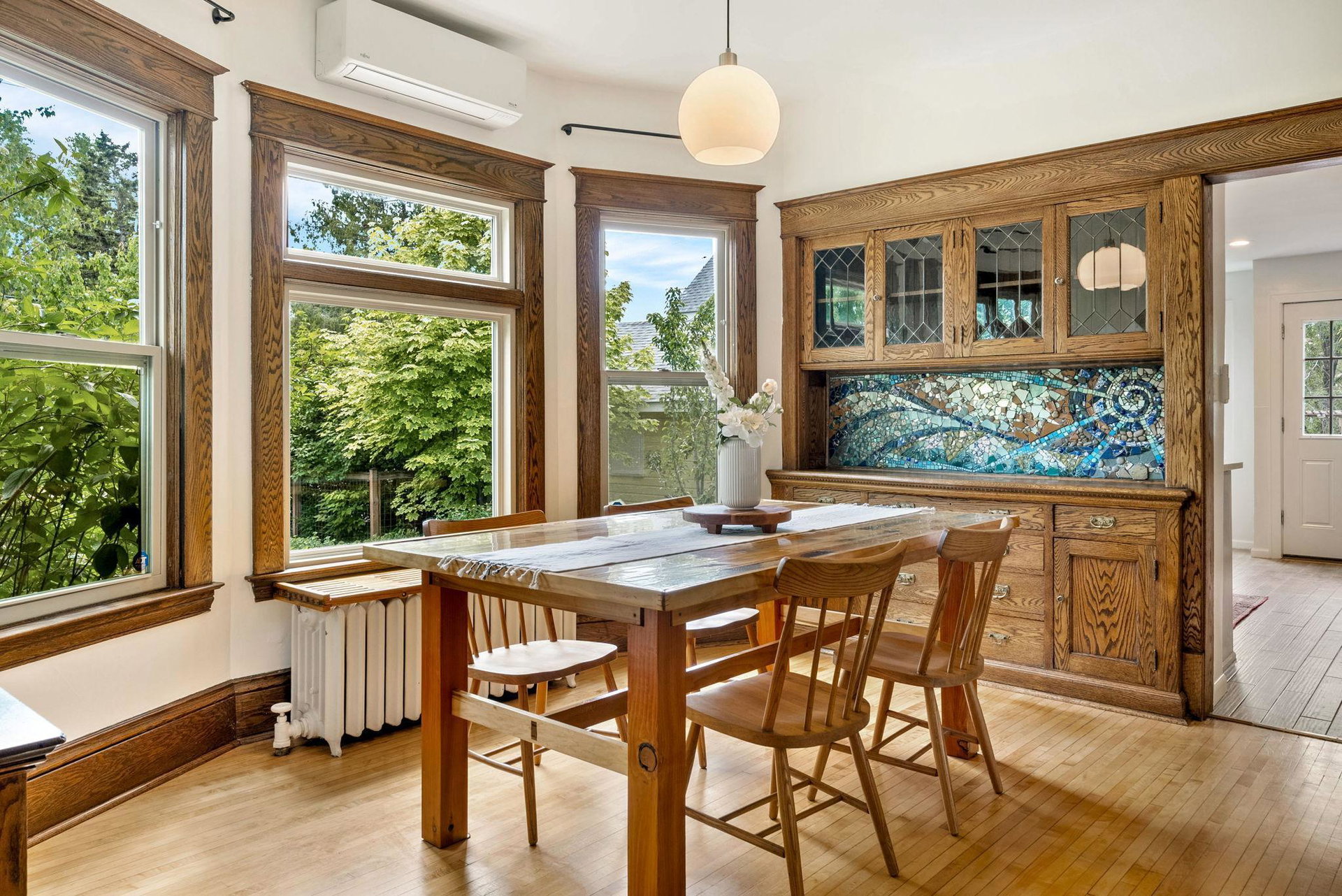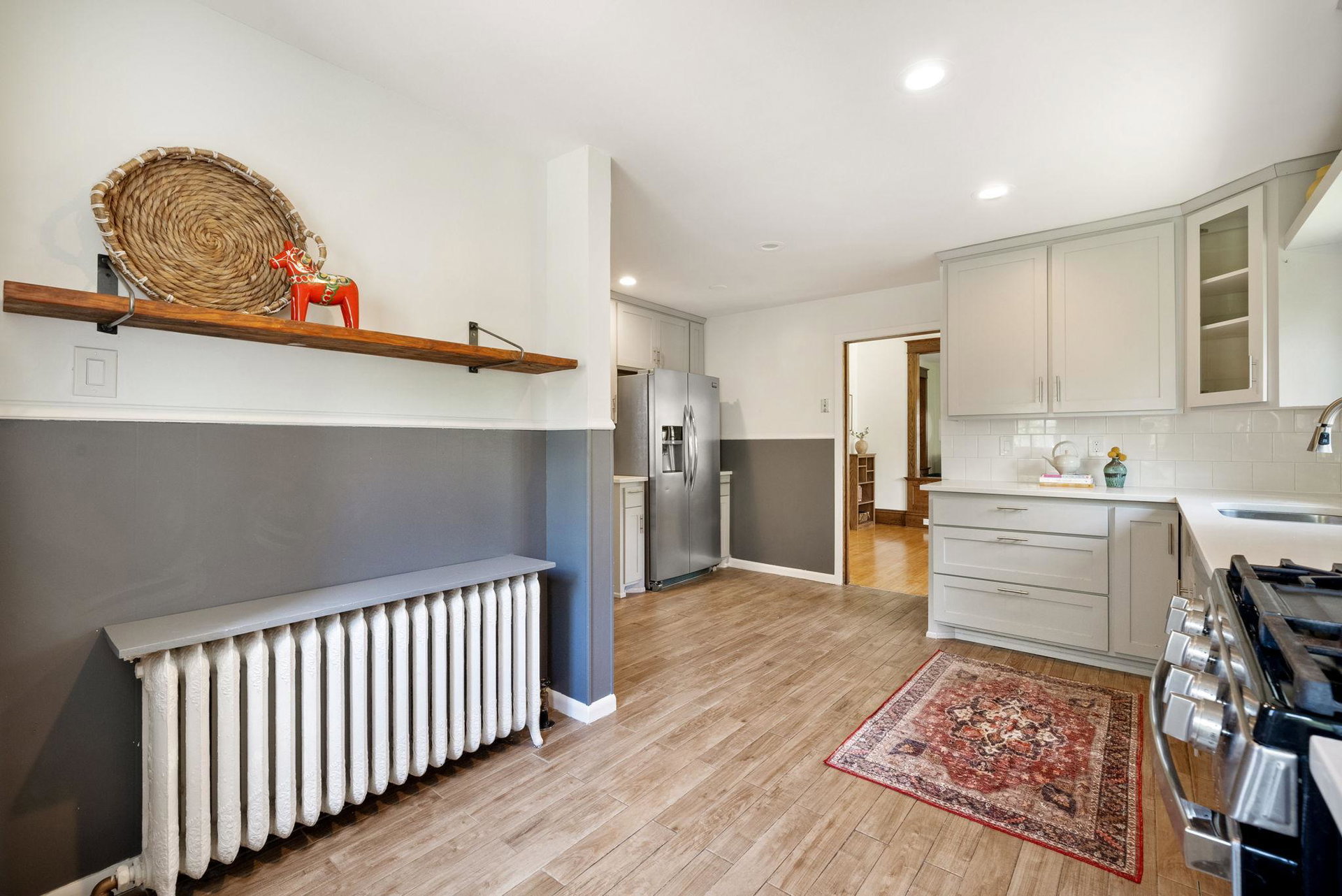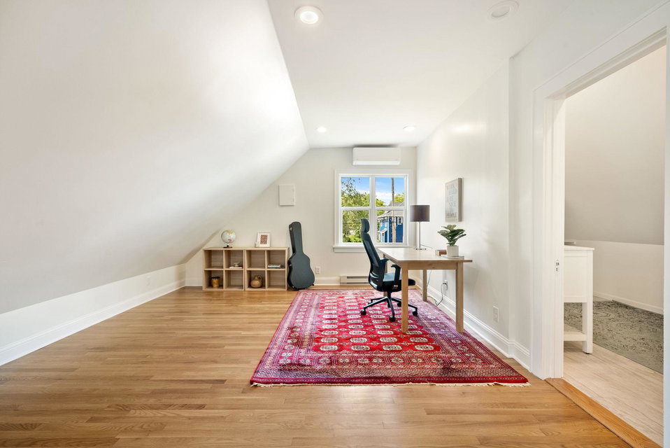 On a uniquely large + professionally landscaped lot sits this 1.5 story home standing tall + confident in updates + functionality while carrying its original glory gracefully. Find tall ceilings, original woodwork in trim + buffet, sprawling + well taken care of wood floors. A spacious entryway, last look mirror closet + living room greet you as you enter. The dining room window overlooks the yard w/perennials, trees, patio. Adjacent to the dining room is a bonus space for play/work/den. The main floor bedroom at the back of the home connects to a completely renovated full bath. The kitchen offers plentiful storage + a 2nd back entry to the deck, easy access from the garage all year long. Two bedrooms on the upper level with the back of the home hosting the LARGE primary suite. The primary includes a large walk in closet, connected second room for office/reading/TV and a 3/4 bathroom. Radiant heat + mini splits keep you comfortable all year. See the extensive list of updates!!!!