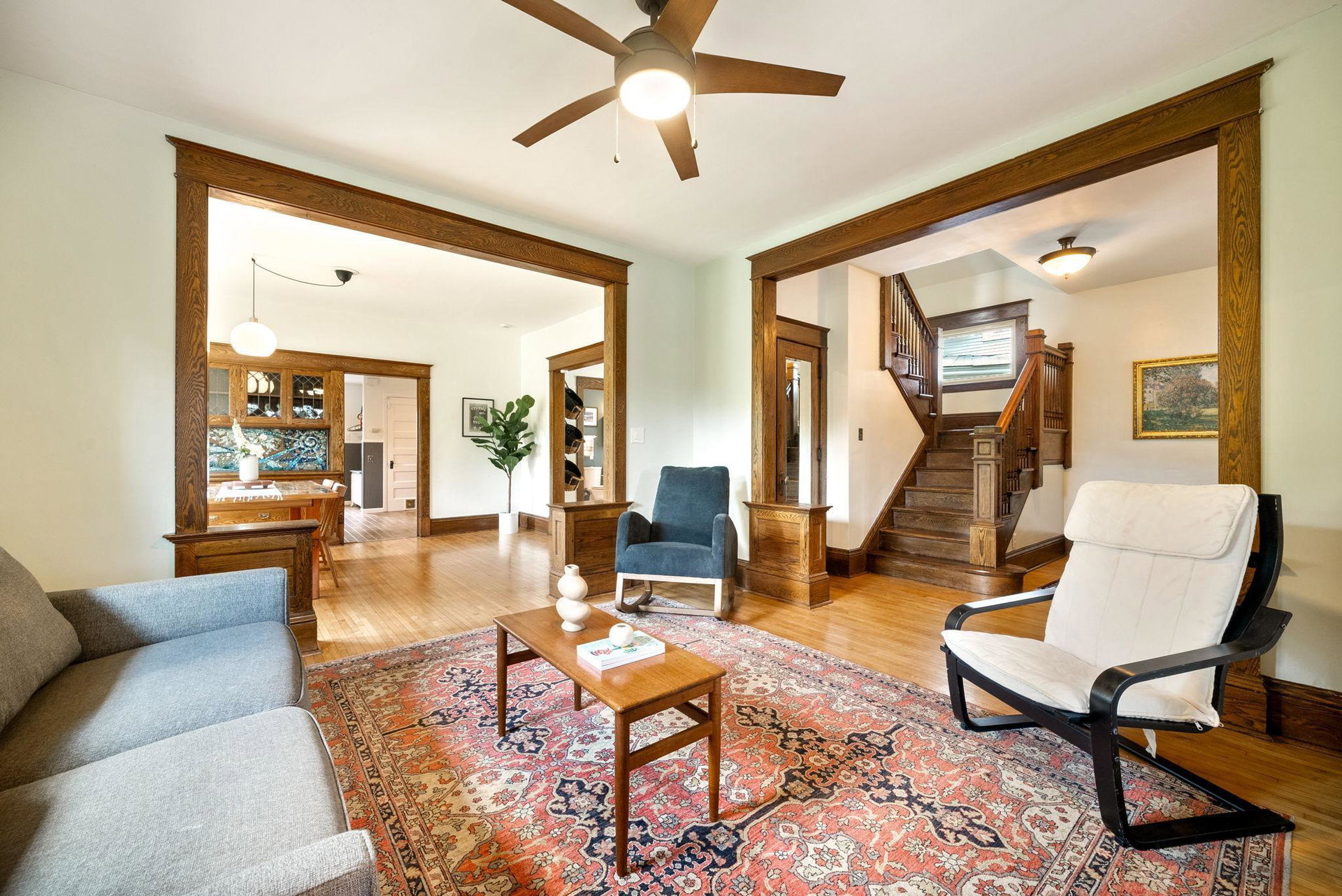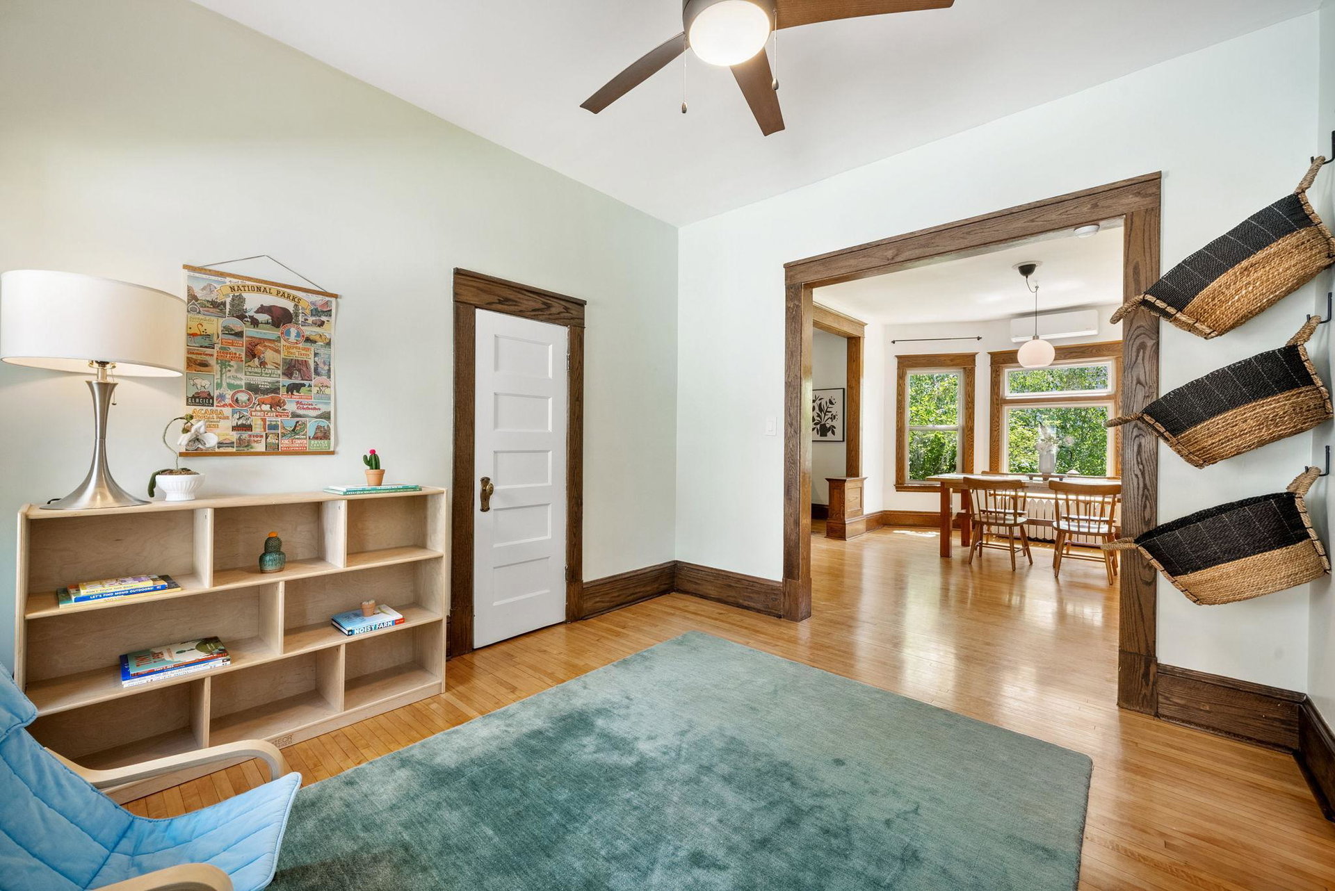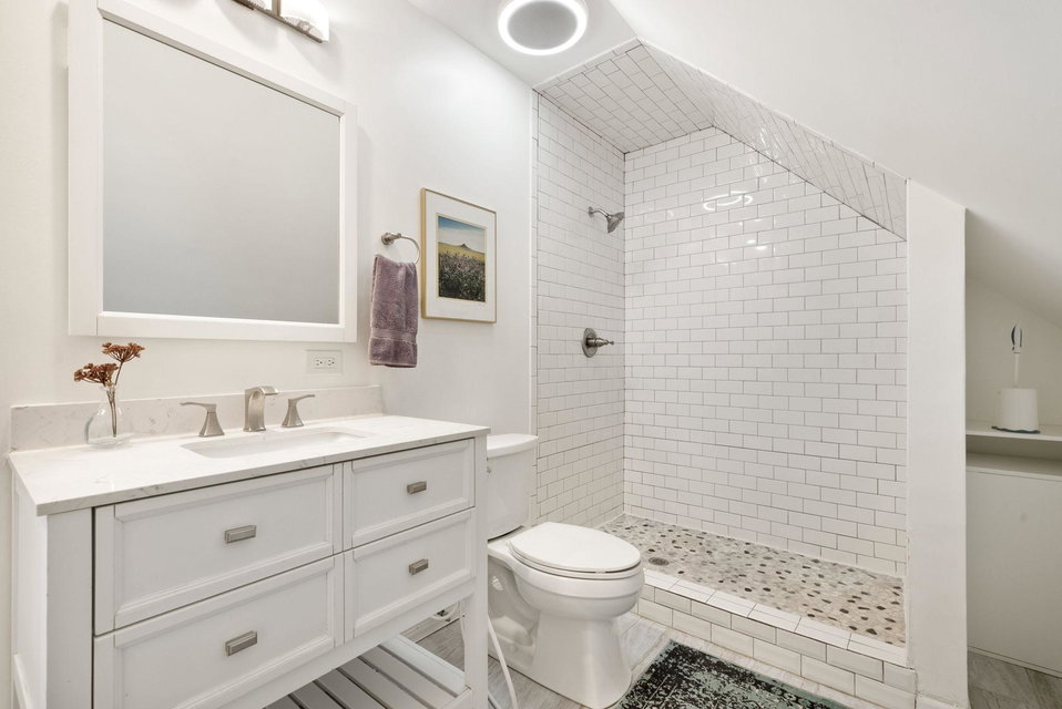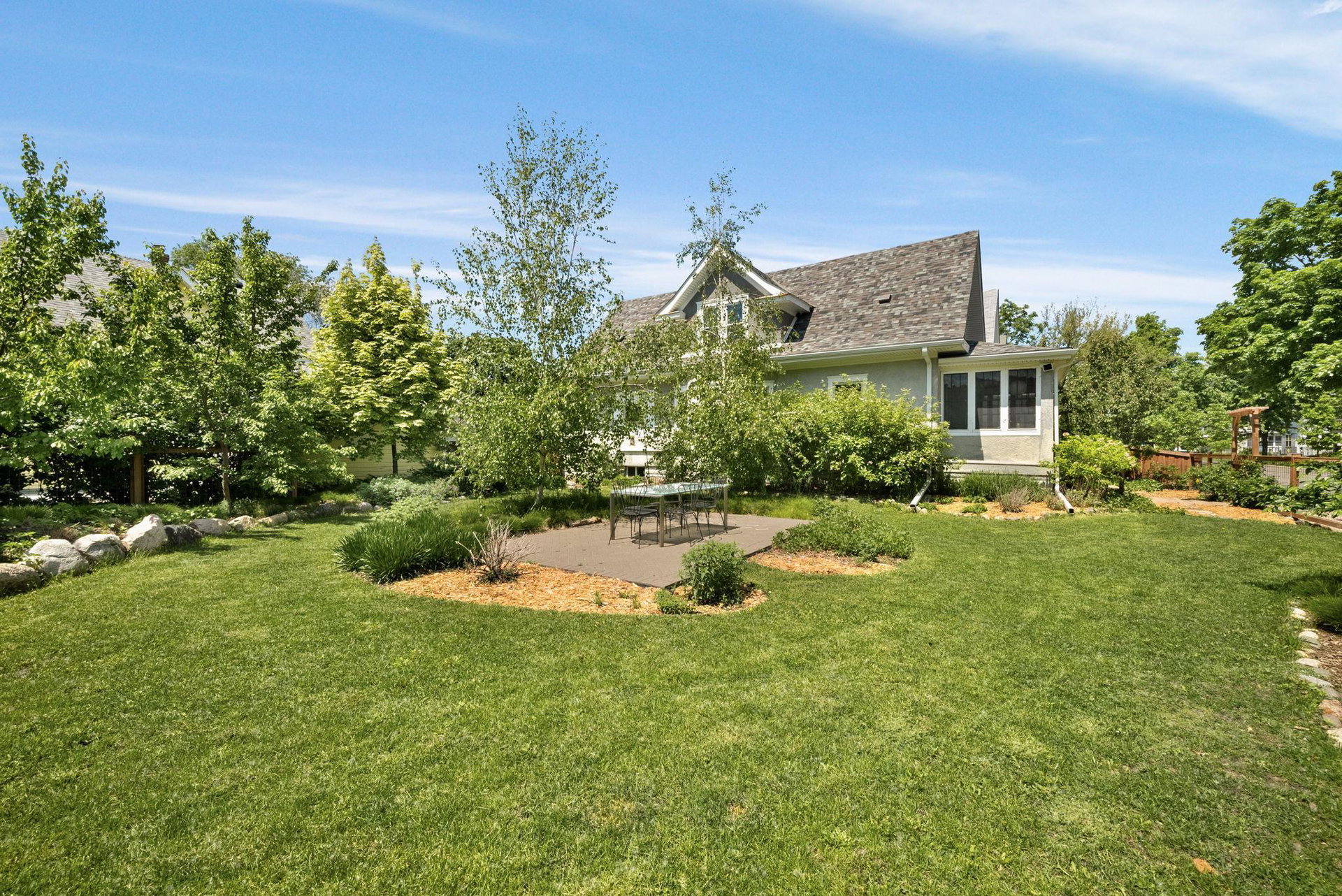 On a uniquely large + professionally landscaped lot sits this 1.5 story home standing tall + confident in updates + functionality while carrying its original glory gracefully. Find tall ceilings, original woodwork in trim + buffet, sprawling + well taken care of wood floors. A spacious entryway, last look mirror closet + living room greet you as you enter. The dining room window overlooks the yard w/perennials, trees, patio. Adjacent to the dining room is a bonus space for play/work/den. The main floor bedroom at the back of the home connects to a completely renovated full bath. The kitchen offers plentiful storage + a 2nd back entry to the deck, easy access from the garage all year long. Two bedrooms on the upper level with the back of the home hosting the LARGE primary suite. The primary includes a large walk in closet, connected second room for office/reading/TV and a 3/4 bathroom. Radiant heat + mini splits keep you comfortable all year. See the extensive list of updates!!!!