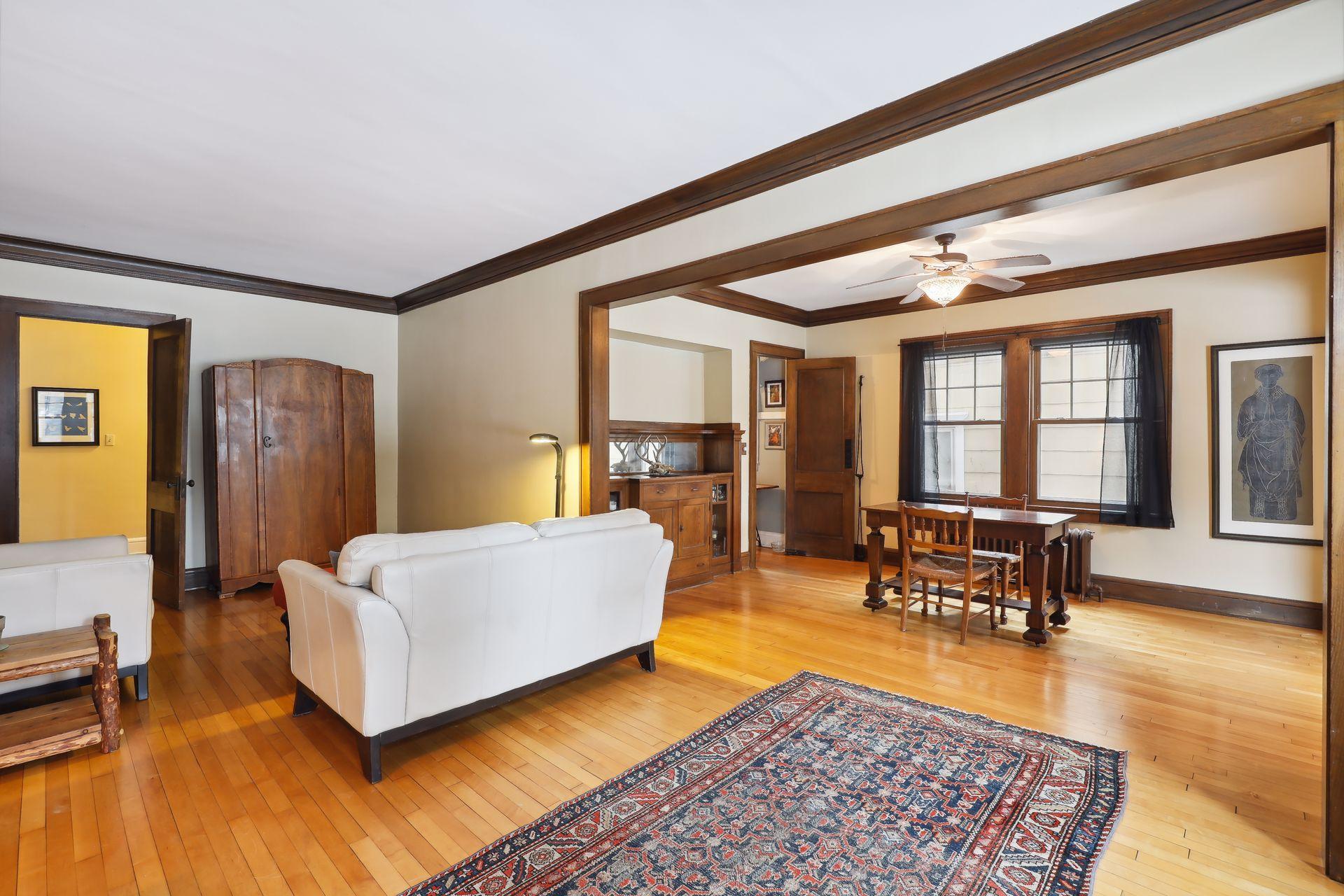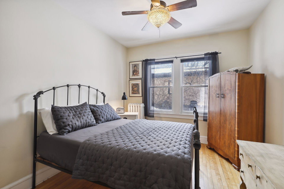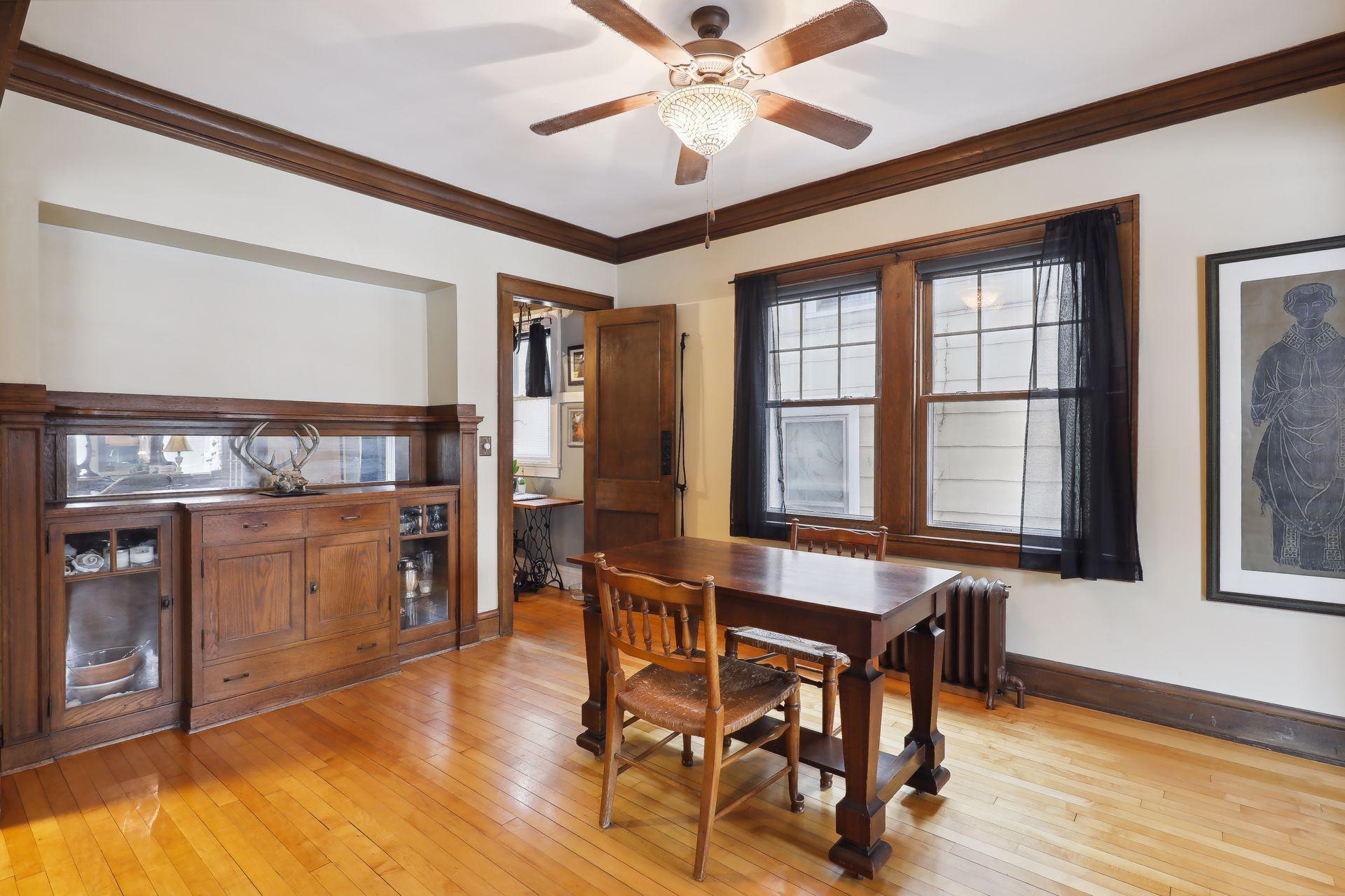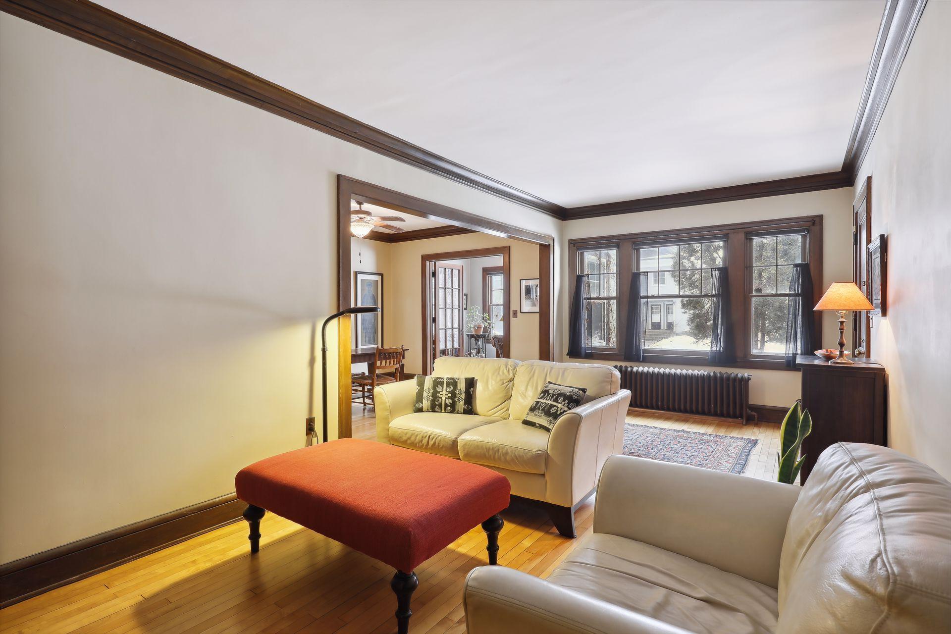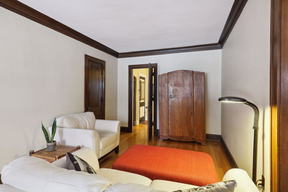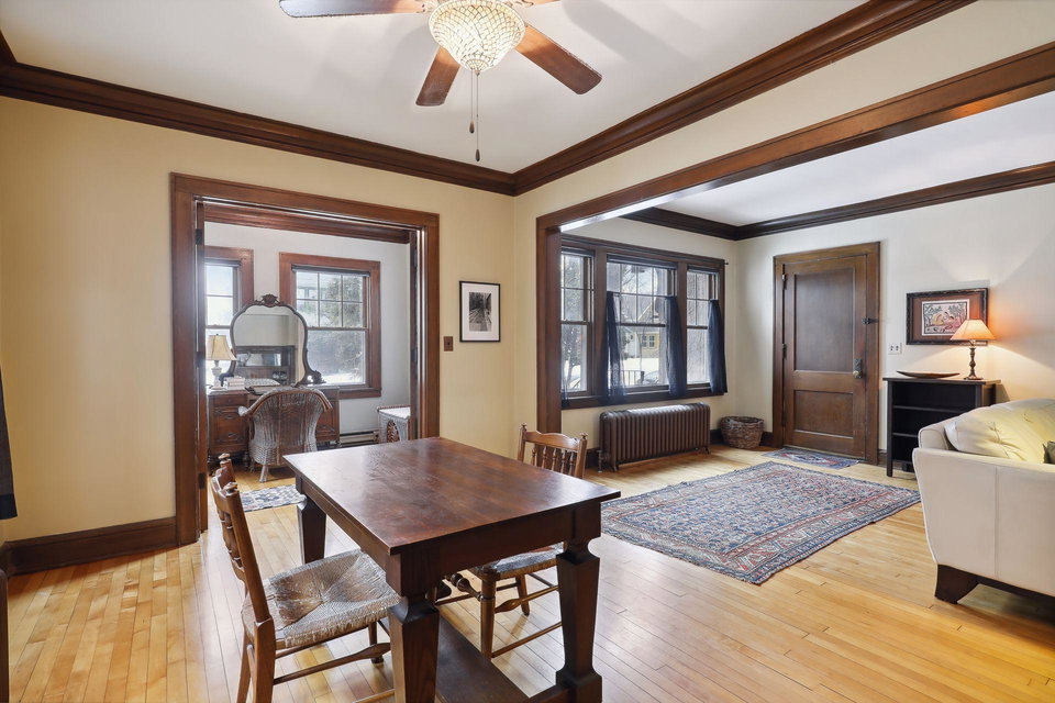 This spacious 2 bedroom condo offers a lovely West-facing sunroom, gleaming hardwood floors, original woodwork, built-in dining room buffet, updated kitchen and charming bathroom. The kitchen features wood cabinetry, stainless appliances, + ample storage & counter space. Great layout that makes this gem feel like a single family home. This classic building is well maintained and the HOA is self-managed. Shared laundry in the clean + dry basement, plus additional storage room. Walk through the common garden to your very own 1 car garage. This vibrant neighborhood offers so many conveniences and great access to nature. Welcome home!
