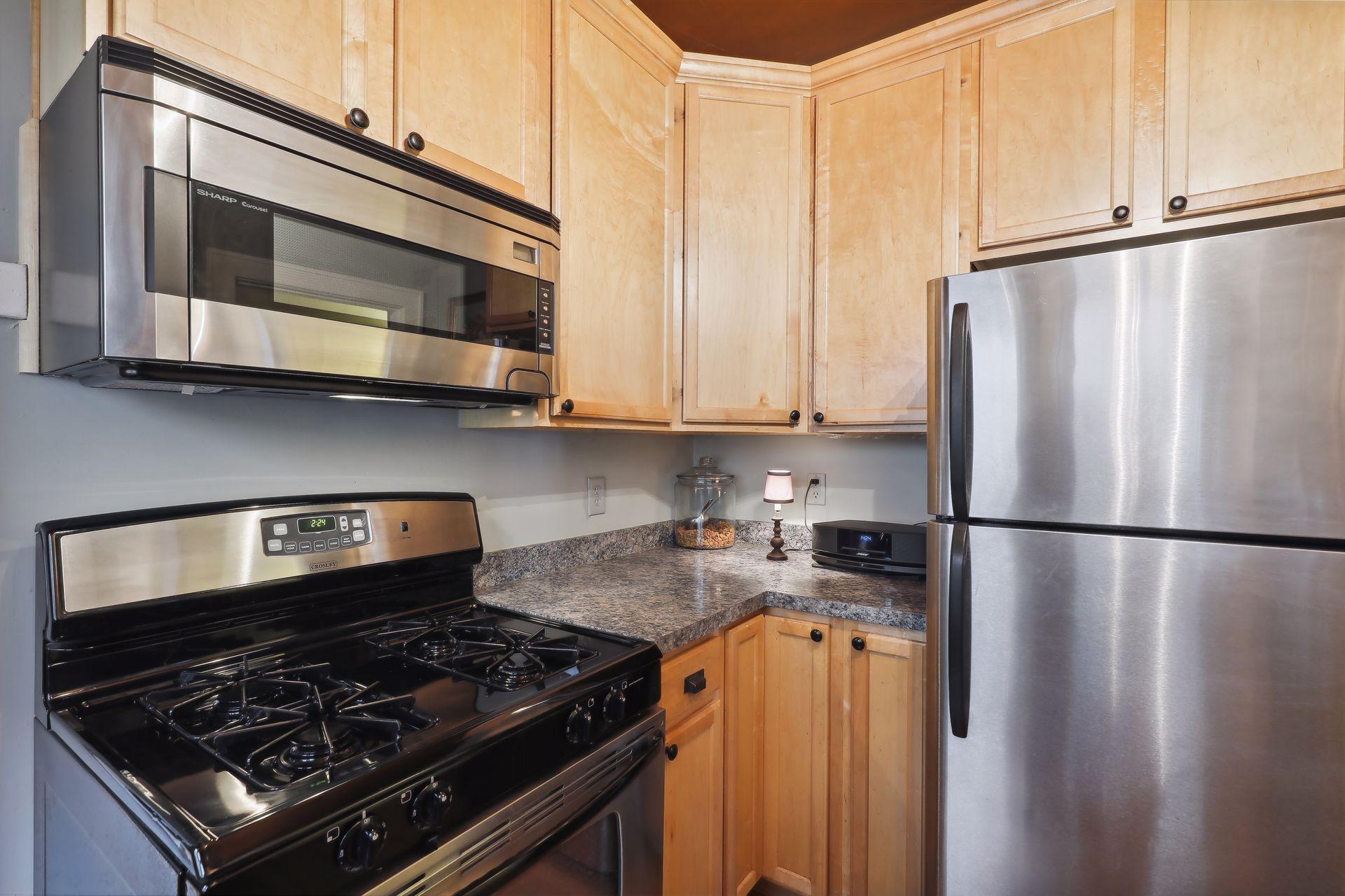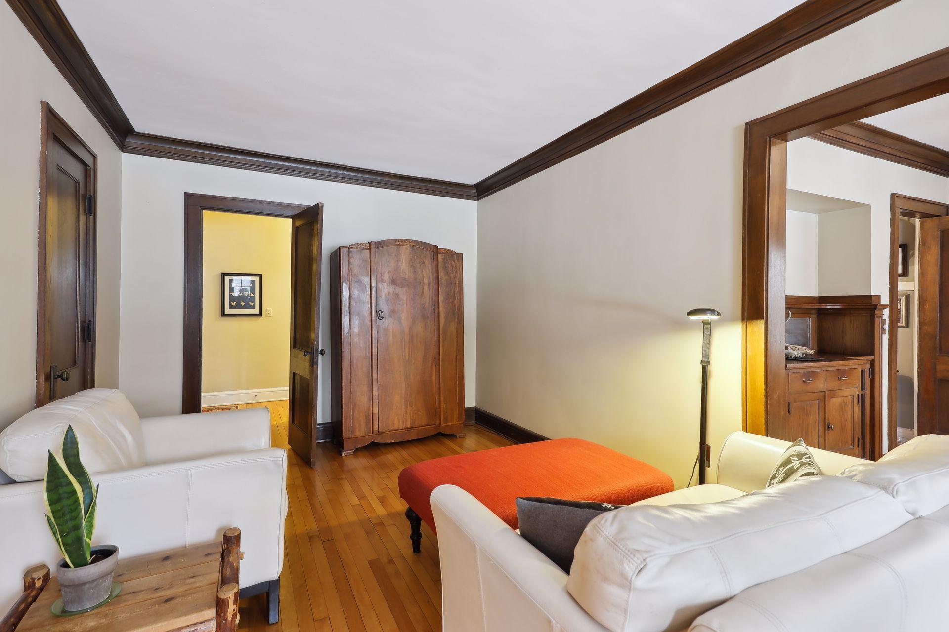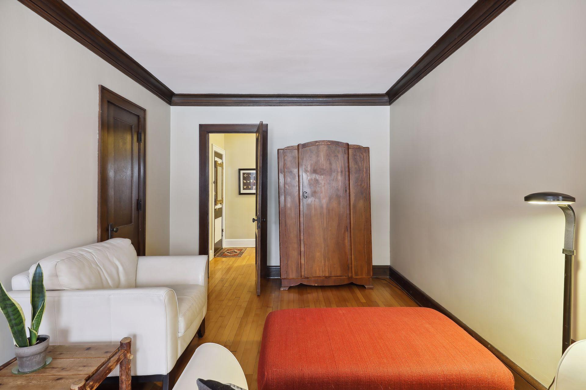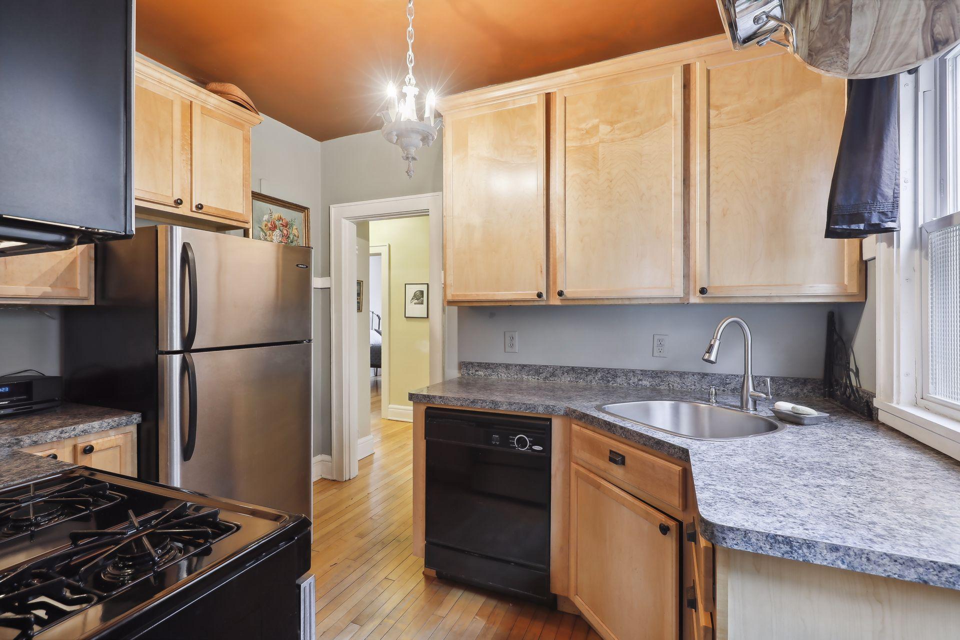 This spacious 2 bedroom condo offers a lovely West-facing sunroom, gleaming hardwood floors, original woodwork, built-in dining room buffet, updated kitchen and charming bathroom. The kitchen features wood cabinetry, stainless appliances, + ample storage & counter space. Great layout that makes this gem feel like a single family home. This classic building is well maintained and the HOA is self-managed. Shared laundry in the clean + dry basement, plus additional storage room. Walk through the common garden to your very own 1 car garage. This vibrant neighborhood offers so many conveniences and great access to nature. Welcome home!