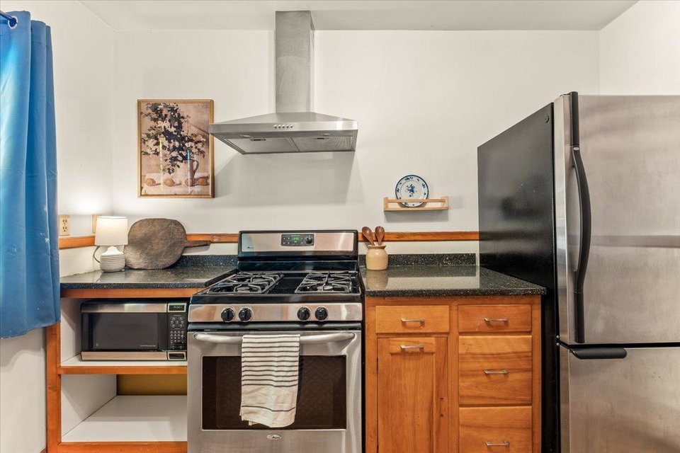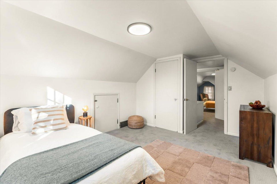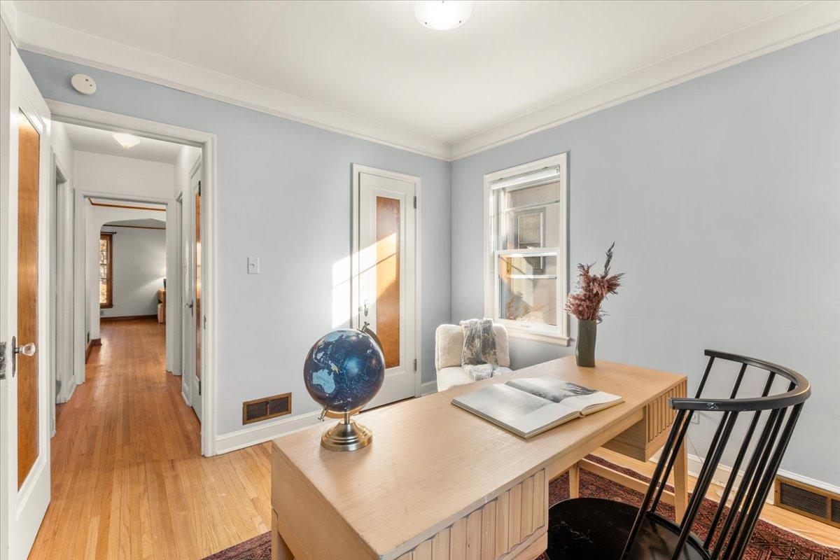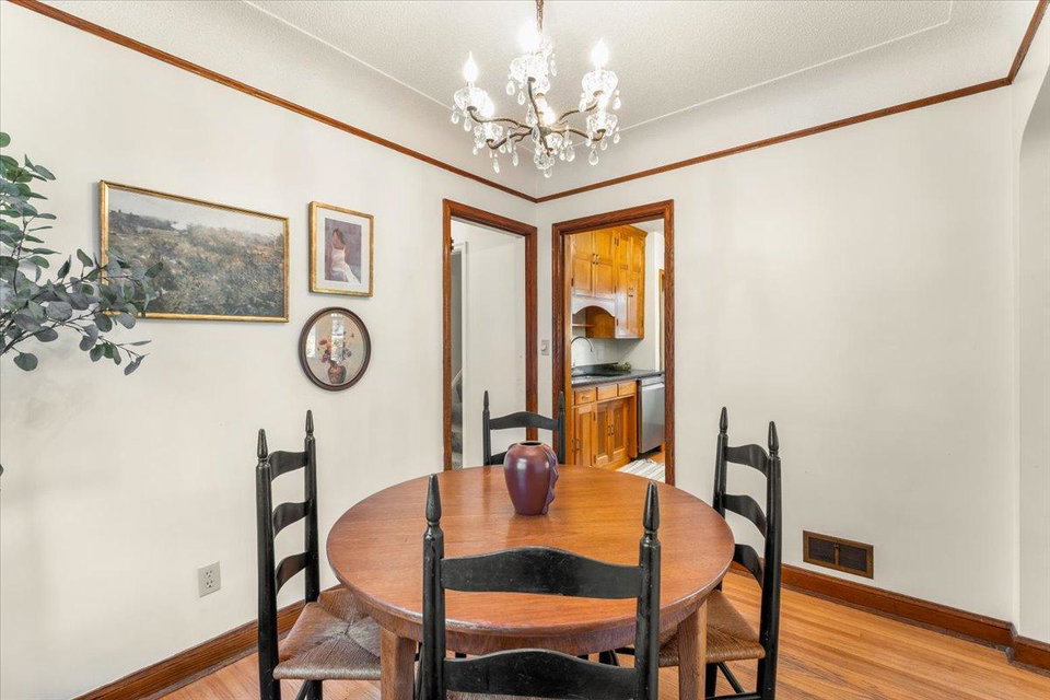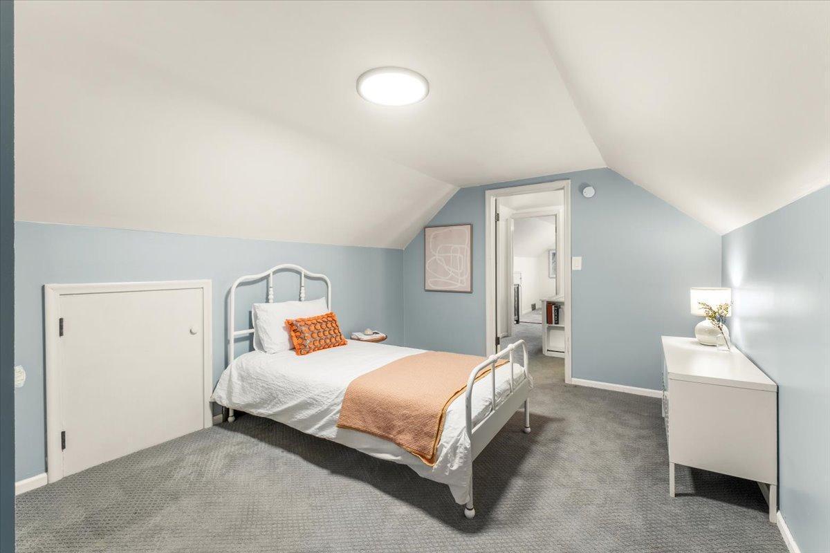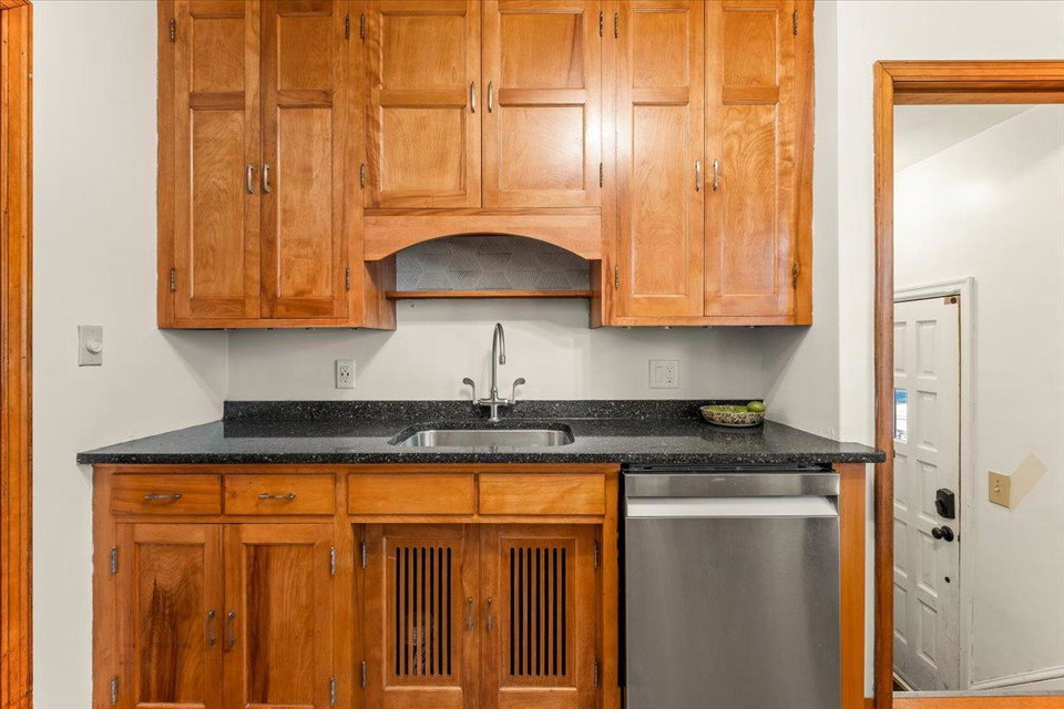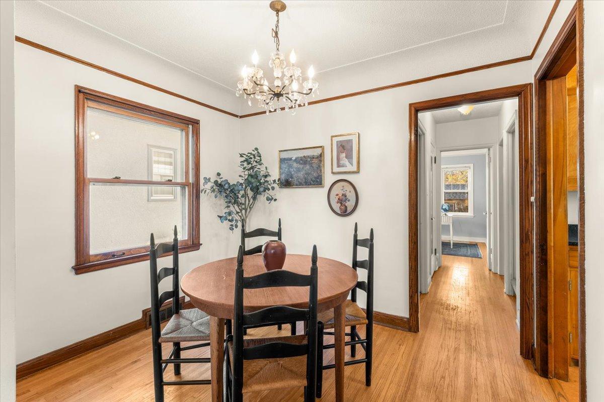 This lovely 4 bed, 1 bath home is bursting with historic character and charm. You’ll find stunning natural woodwork, coved ceilings, and oak hardwood floors preserved throughout. The inviting living room, with its decorative fireplace, flows into a sunny, south-facing dining room—complete with a charming arched wall niche. The modernized kitchen is a thoughtful blend of new and old, featuring quartz counters, stainless steel appliances, and beautiful red birch cabinets!