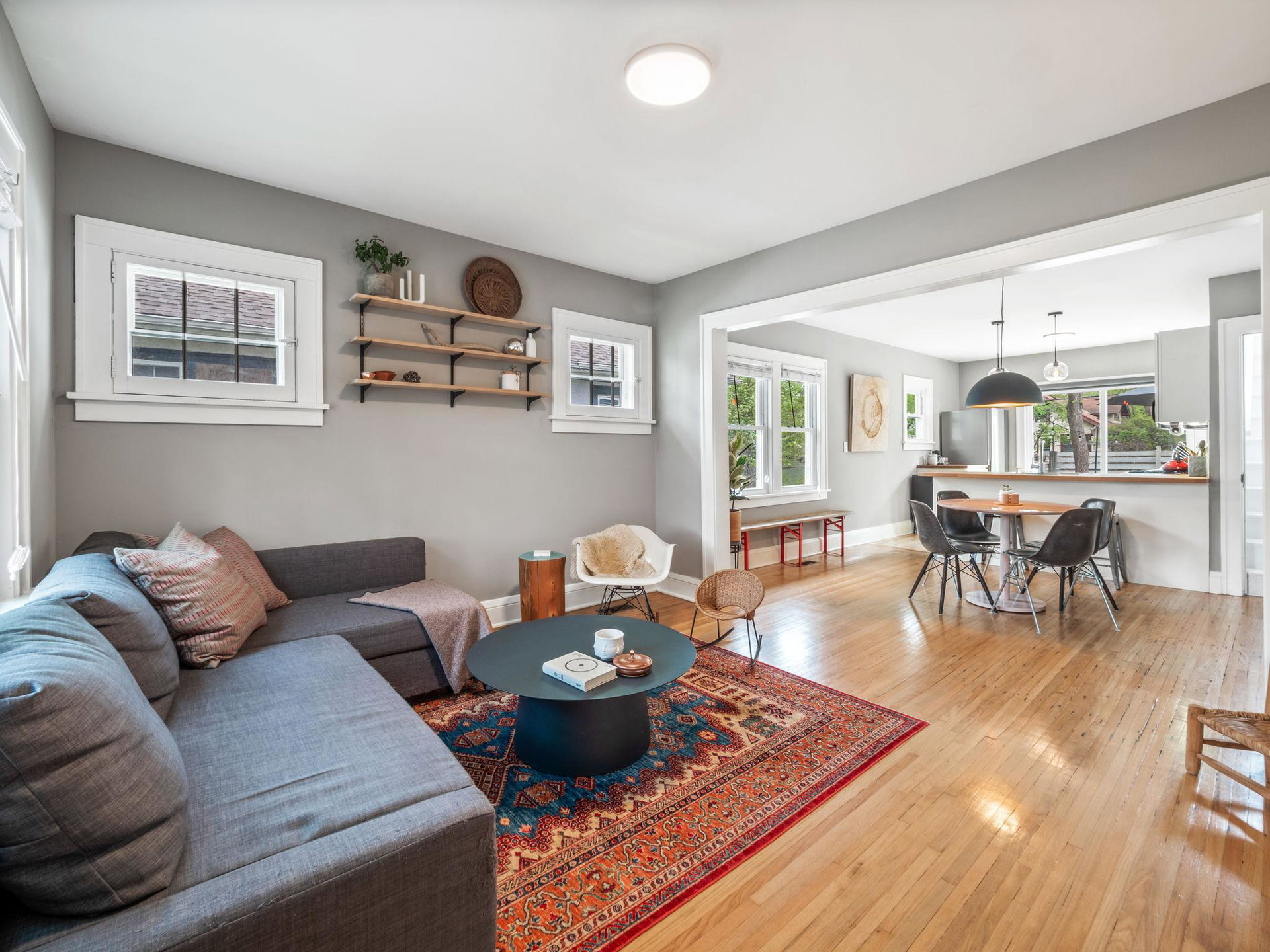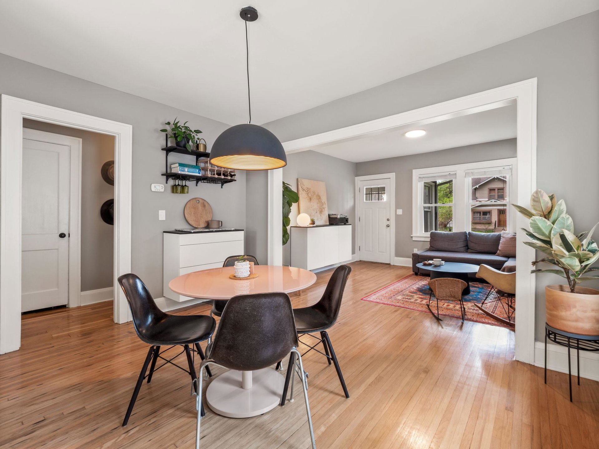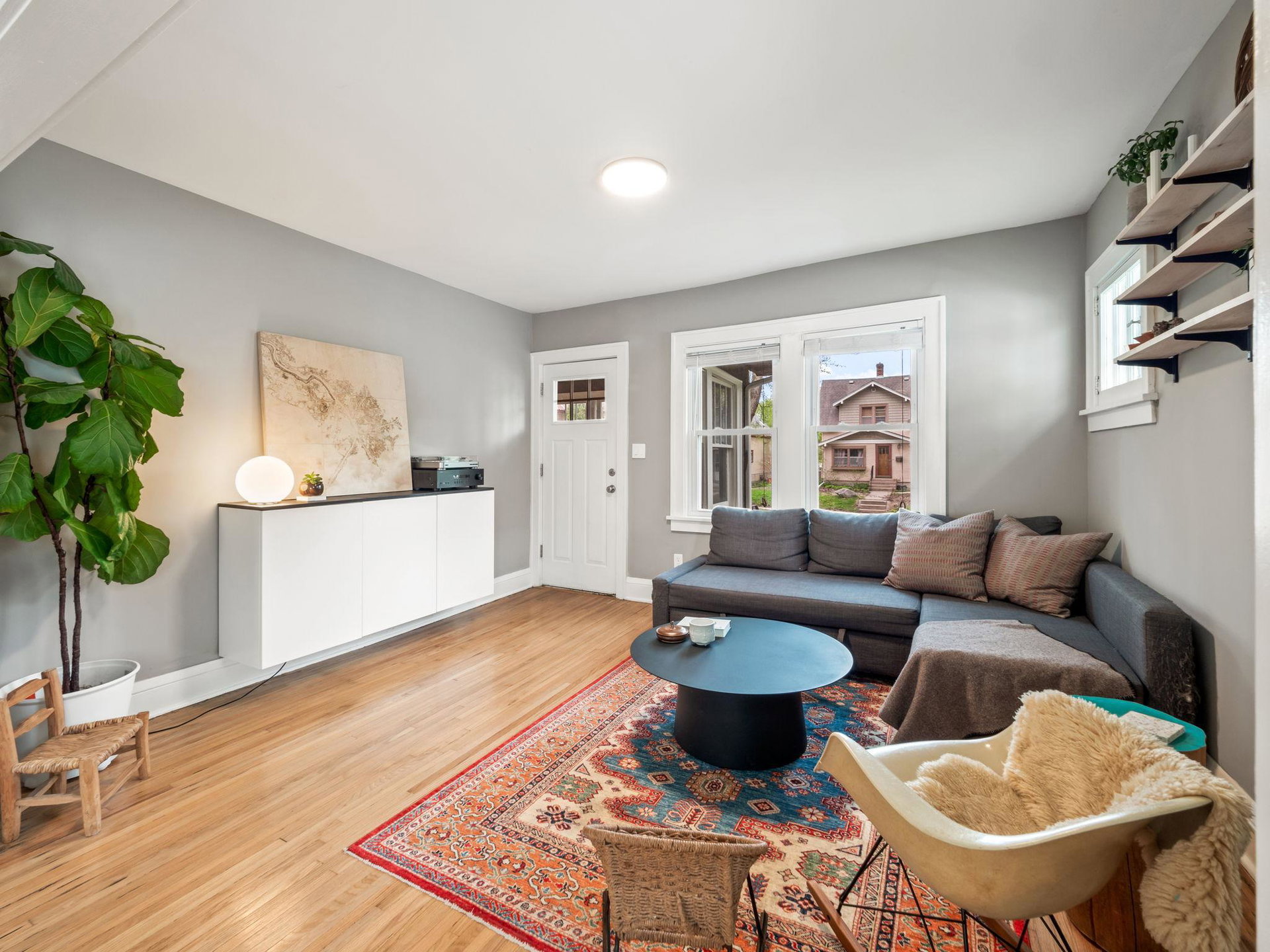 This Longfellow Bungalow is a must see! You will love the friendly front porch, open-updated kitchen, built-in storage and mudroom/pantry, as well as updated plumbing, light fixtures, and bathroom. Your plants will LOVE this home with all of the natural light – even the basement gets tons of light with the large egress window! Half-story offers skylit flexible space – great for bedroom, sitting room, and office. Full-glass patio doors walkout to your private backyard with garden beds and firepit, ready for your summer gardening and outdoor gatherings. Come check it out!