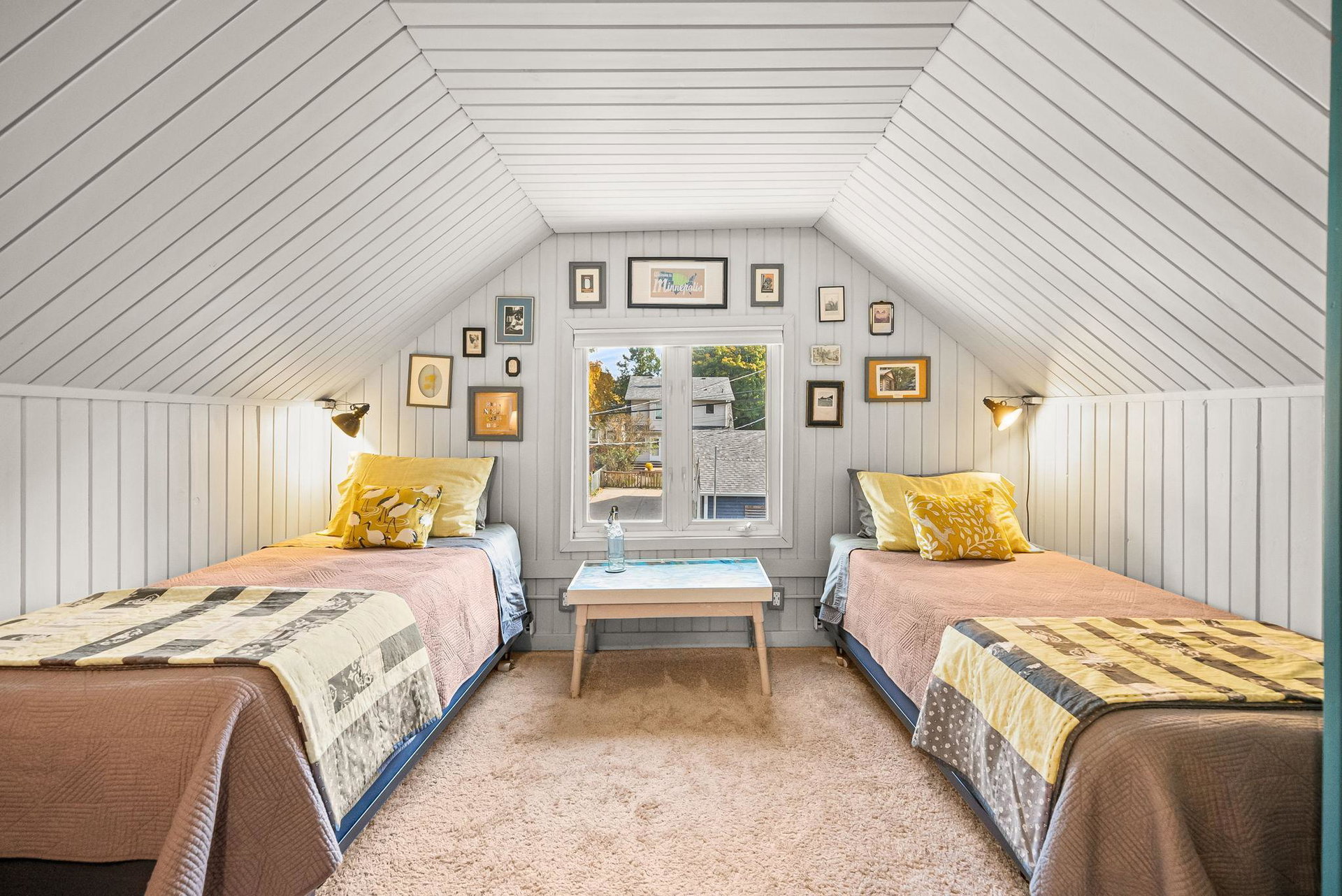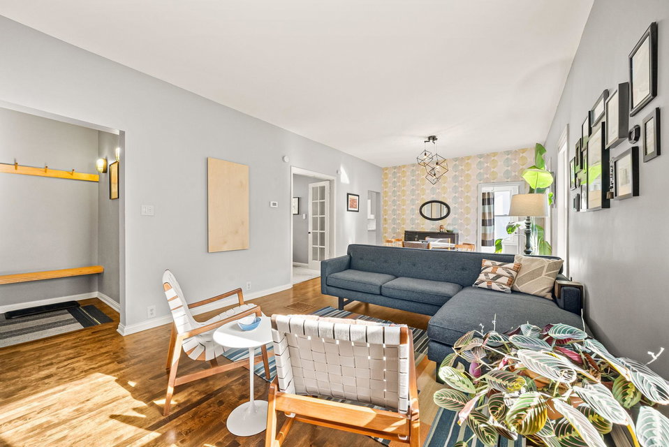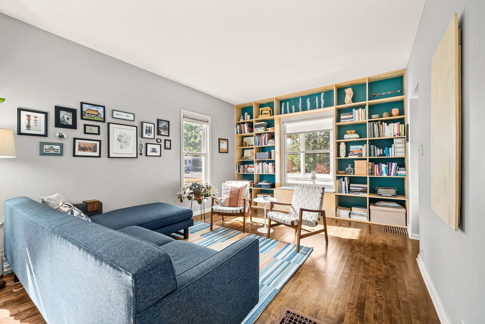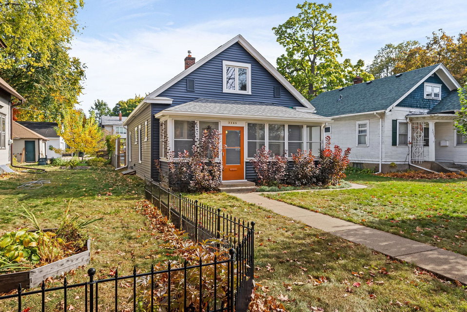 Come home to this three bedroom gem in Longfellow, lovingly cared for by a meticulous designer/maker pair (it shows throughout!!). From the welcoming front porch to the peaceful backyard this house is a charmer. Thoughtful details can be found in all corners of the property. The front foyer, a rare find in South Minneapolis, features a built-in bench and coat hooks. The main room with its custom-built, floor-to-ceiling bookshelf is a statement piece. Off the living/dining room is a bonus space featuring french doors, which can be used dynamically as a bedroom, office, den or TV lounge. The large full bathroom is full of natural light. The kitchen, which includes main floor laundry, was updated in 2020 with quartz countertops and backsplashes, new flooring, sink/faucet and fresh paint. Don’t miss the super helpful, spacious pantry/mudroom next to the kitchen and just in from the back door. Upstairs you’ll find a nicely proportioned primary bedroom and a cute-as-can-be second bedroom. Generous storage has been incorporated in many areas of the home. The well tended yard includes a cider apple tree, deck, planter boxes, robust hardy kiwi vines for privacy, several raised beds, ornamental perennial garden and a wildflower patch. The detached, extra large one-car garage features a bonus, shop space area. New roof, siding, gutters and downspouts as of 2023 on the home and garage! COME SEE!