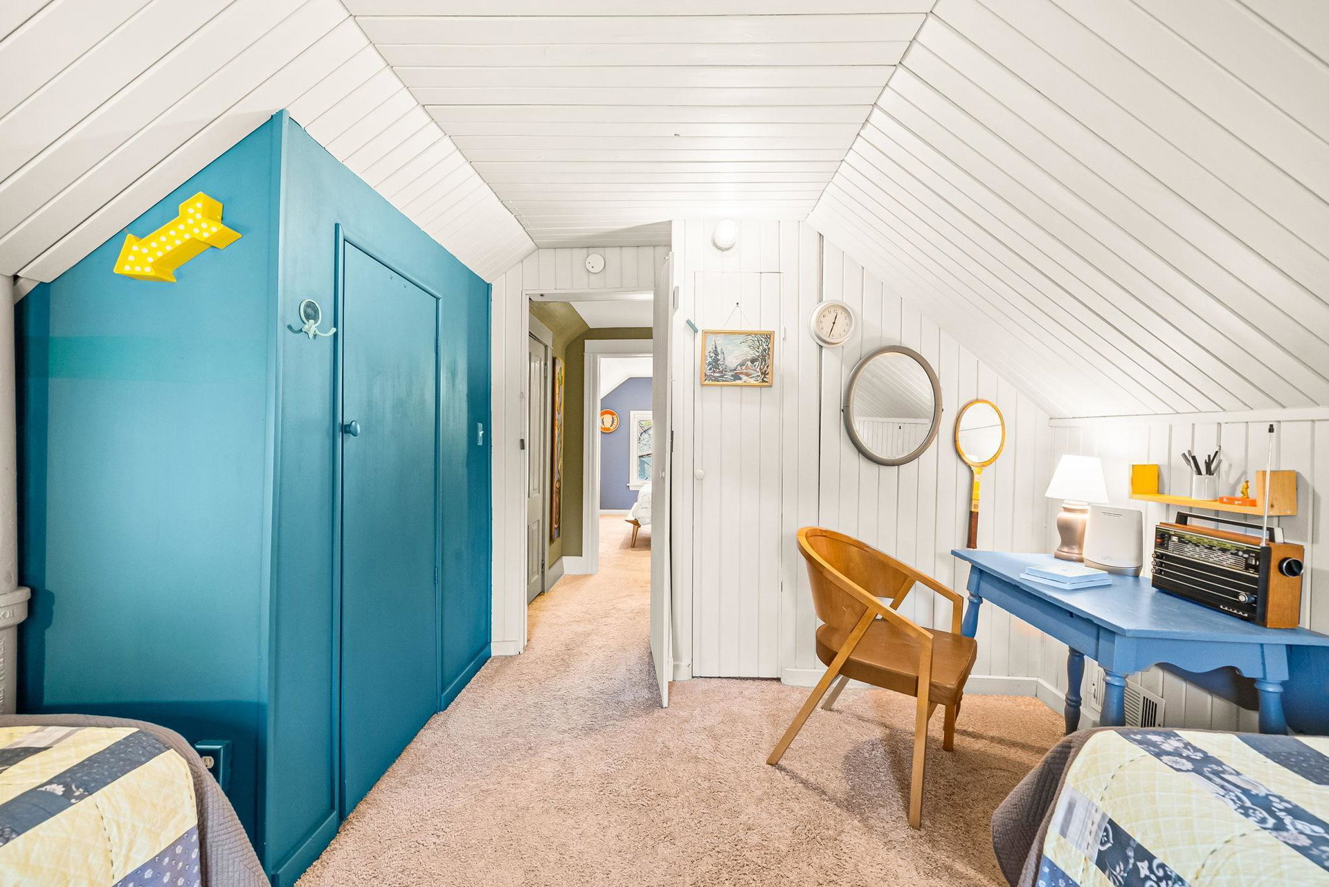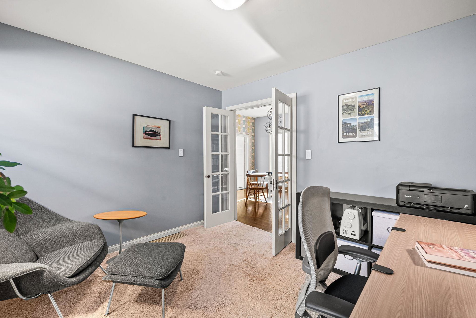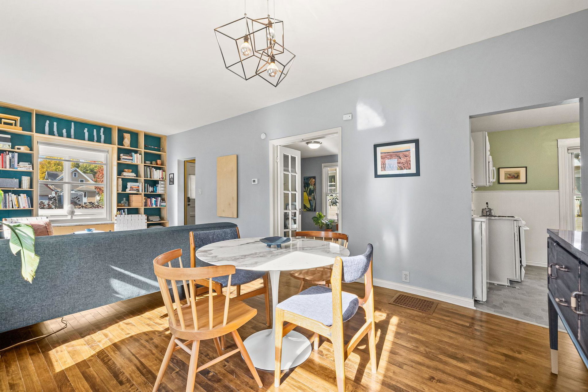 Come home to this three bedroom gem in Longfellow, lovingly cared for by a meticulous designer/maker pair (it shows throughout!!). From the welcoming front porch to the peaceful backyard this house is a charmer. Thoughtful details can be found in all corners of the property. The front foyer, a rare find in South Minneapolis, features a built-in bench and coat hooks. The main room with its custom-built, floor-to-ceiling bookshelf is a statement piece. Off the living/dining room is a bonus space featuring french doors, which can be used dynamically as a bedroom, office, den or TV lounge. The large full bathroom is full of natural light. The kitchen, which includes main floor laundry, was updated in 2020 with quartz countertops and backsplashes, new flooring, sink/faucet and fresh paint. Don’t miss the super helpful, spacious pantry/mudroom next to the kitchen and just in from the back door. Upstairs you’ll find a nicely proportioned primary bedroom and a cute-as-can-be second bedroom. Generous storage has been incorporated in many areas of the home. The well tended yard includes a cider apple tree, deck, planter boxes, robust hardy kiwi vines for privacy, several raised beds, ornamental perennial garden and a wildflower patch. The detached, extra large one-car garage features a bonus, shop space area. New roof, siding, gutters and downspouts as of 2023 on the home and garage! COME SEE!