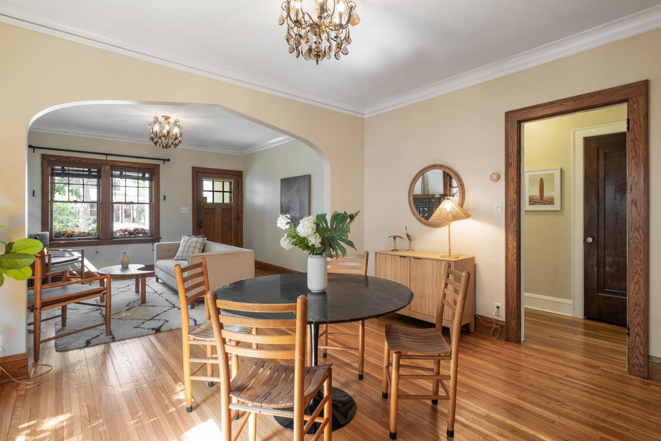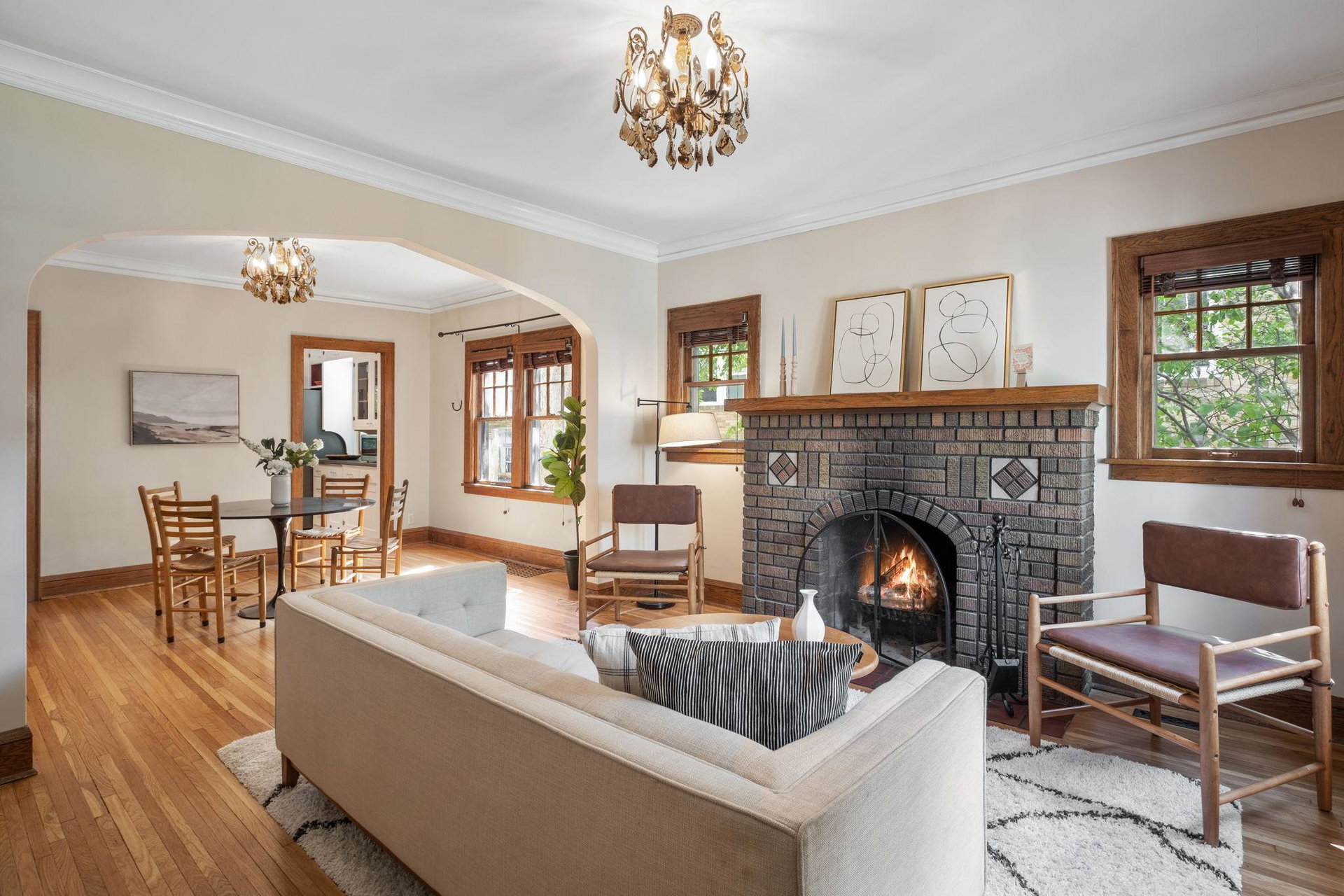 Built in 1918, this well appointed 5 bedroom, 2 bathroom home in the Lyndale neighborhood is simply charming with original character and thoughtfully done updates. The home features a great layout with abundant natural light and stunning hard wood floors throughout the home. The main floor showcases a living room with a bespoke wood burning fire place, newly updated bathroom, dining room and timeless kitchen. The 1.5 story home features bedrooms on the main floor as well as upstairs. This home captivates with gorgeous curb appeal and a private backyard. A true character home that has been preserved and celebrated.