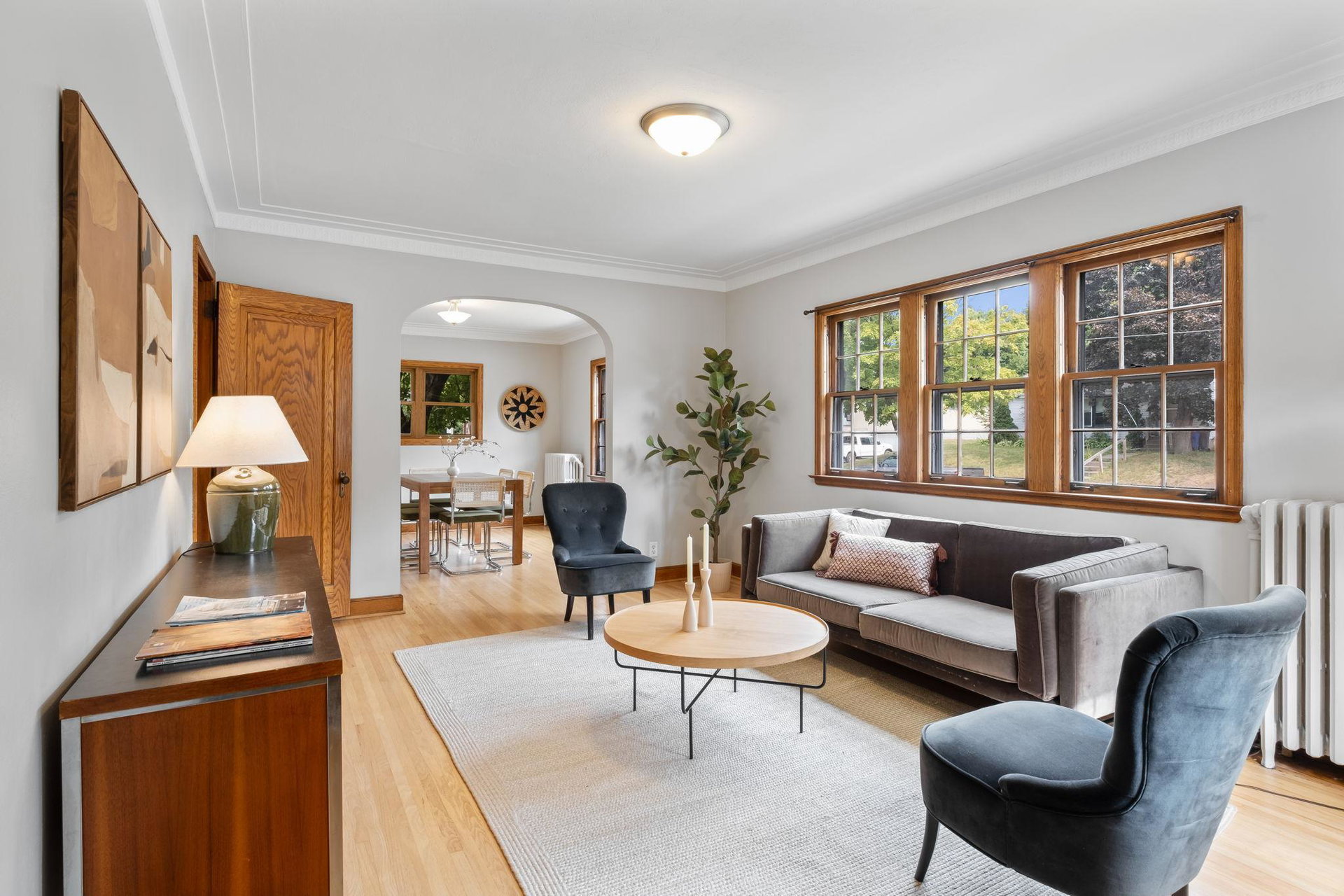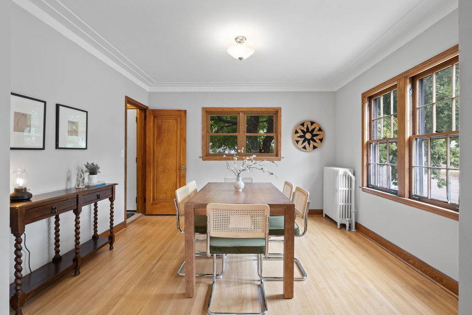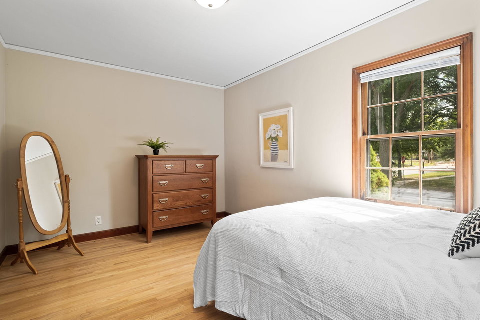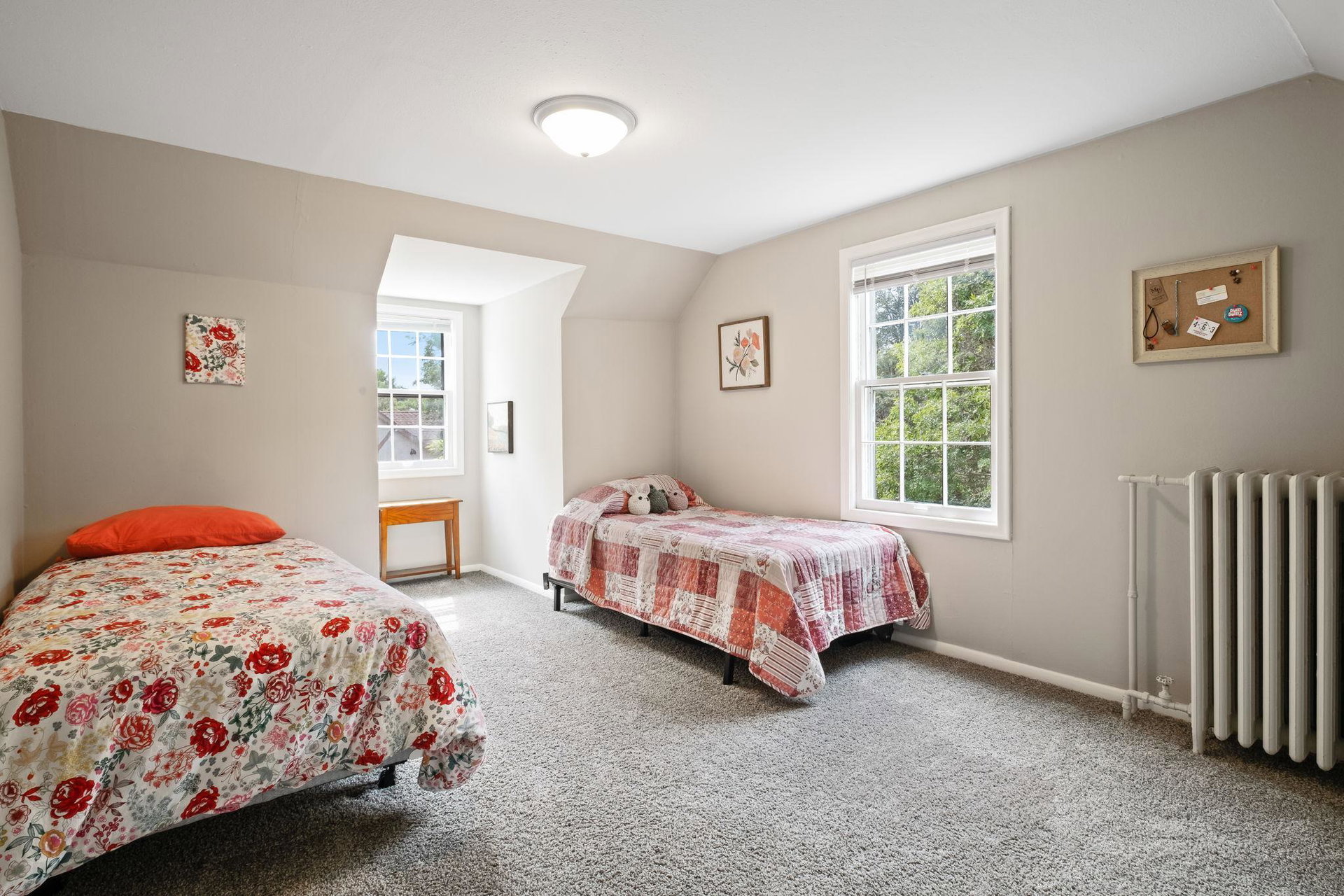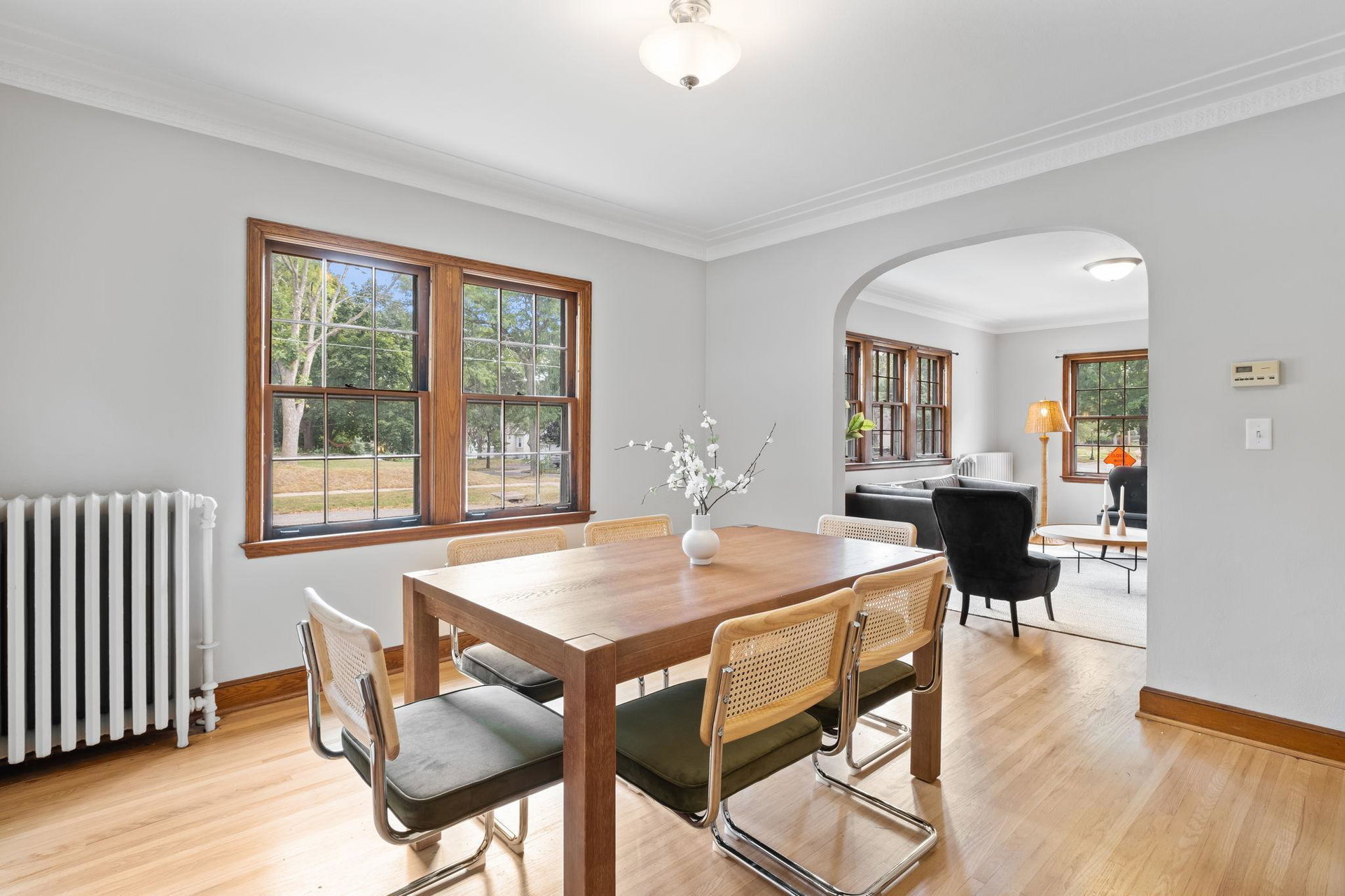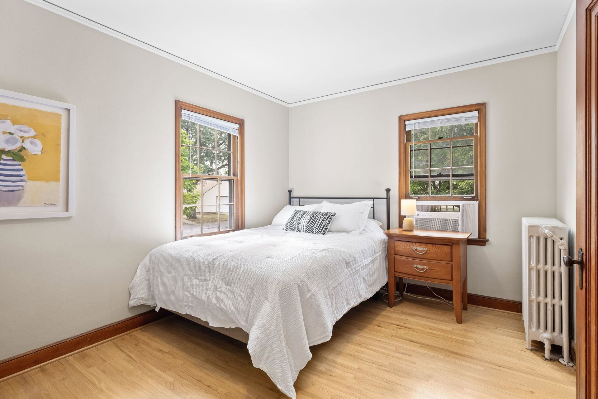 Lovely Cape Cod 1.5 story home with primary bedroom and full bath on main floor, 2 generously sized bedrooms and 1/2 bath on upper level. Stunning original elements such as hardwood floors, windows, interior doors to charm you. Enjoy a large eat-in kitchen, formal dining room, and oversized yard with basketball hoop. Lower level family room and clean storage + mechanical area. New boiler and carpet in 2020. Come see!