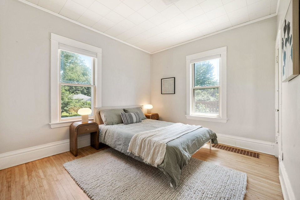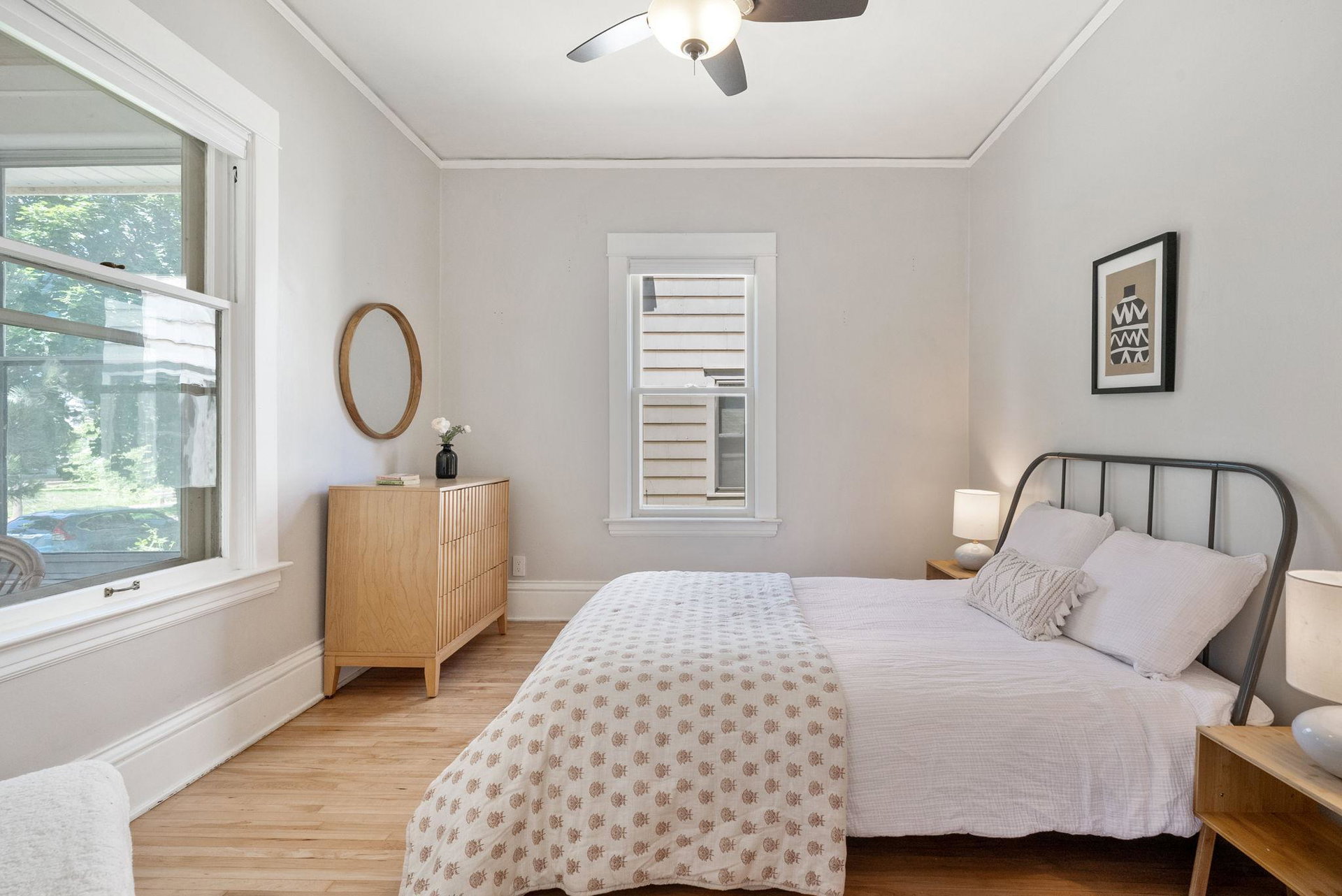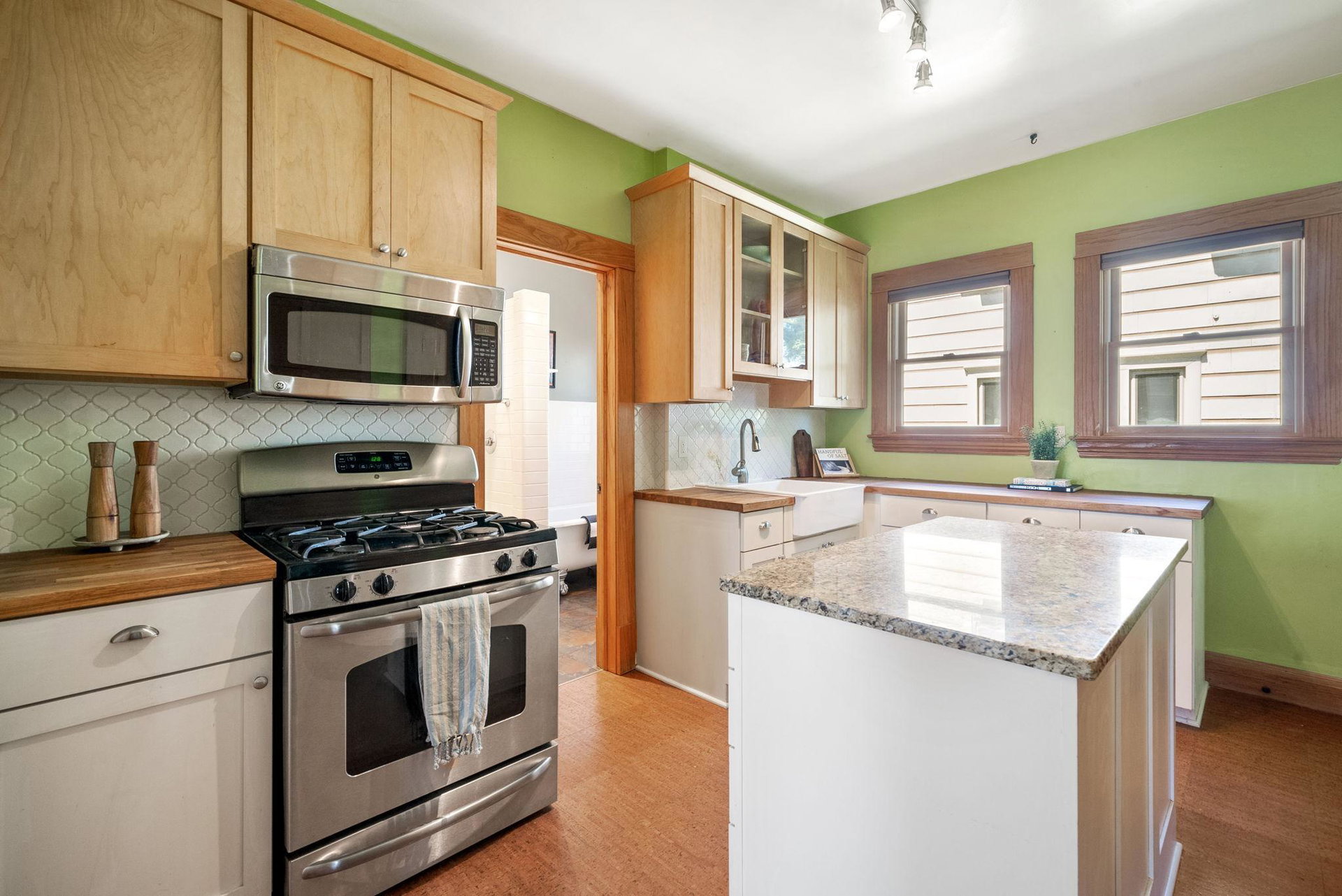 Come home to this light filled 1.5 story Bungalow in Corcoran with a welcoming front porch, primary suite upstairs, spacious backyard, and BRAND NEW ROOF + SIDING!! Beautiful natural woodwork, built in, and hardwood floors host the main floor with 2 bedrooms and a full bathroom that includes both a walk in shower and claw foot tub. Gather around the island in your spacious kitchen with plentiful storage, stainless steel appliances and butcher block counters. The upper level includes the primary suite’s own 3/4 bathroom + walk in closet. Enjoy the summer in your larger than average backyard and park comfortably in the 2 car garage. Come see!